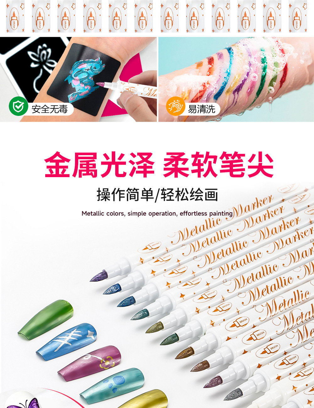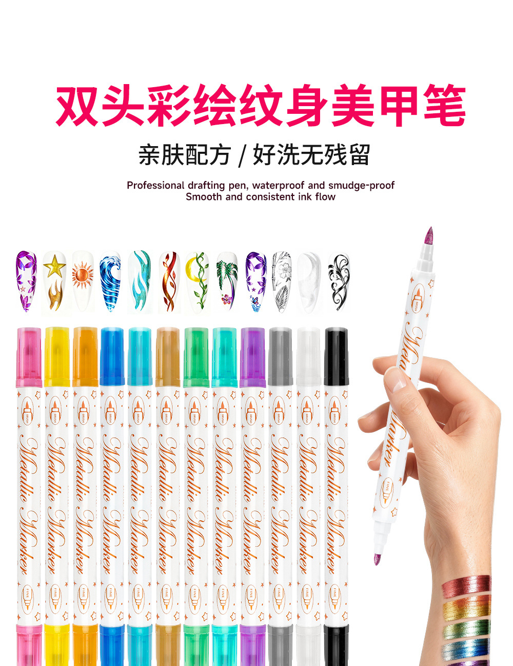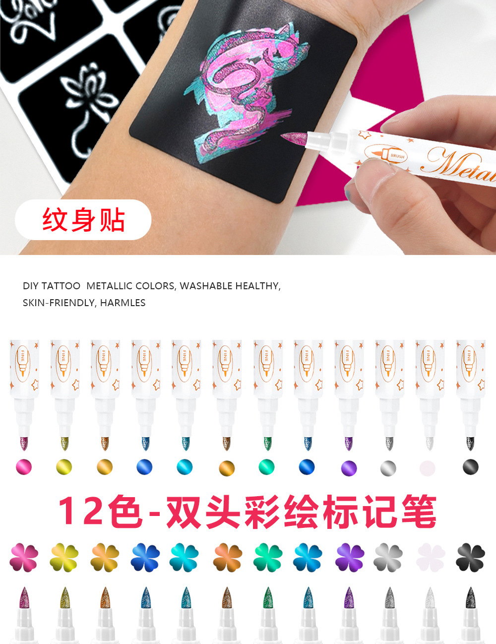 Juego de rotuladores metálicos de doble punta, suave y duro, rotulador de tatuajes colorido, rotulador de caligrafía, rotulador de firma, rotulador para manualidades con tarjetas de felicitación y decoración de uñas