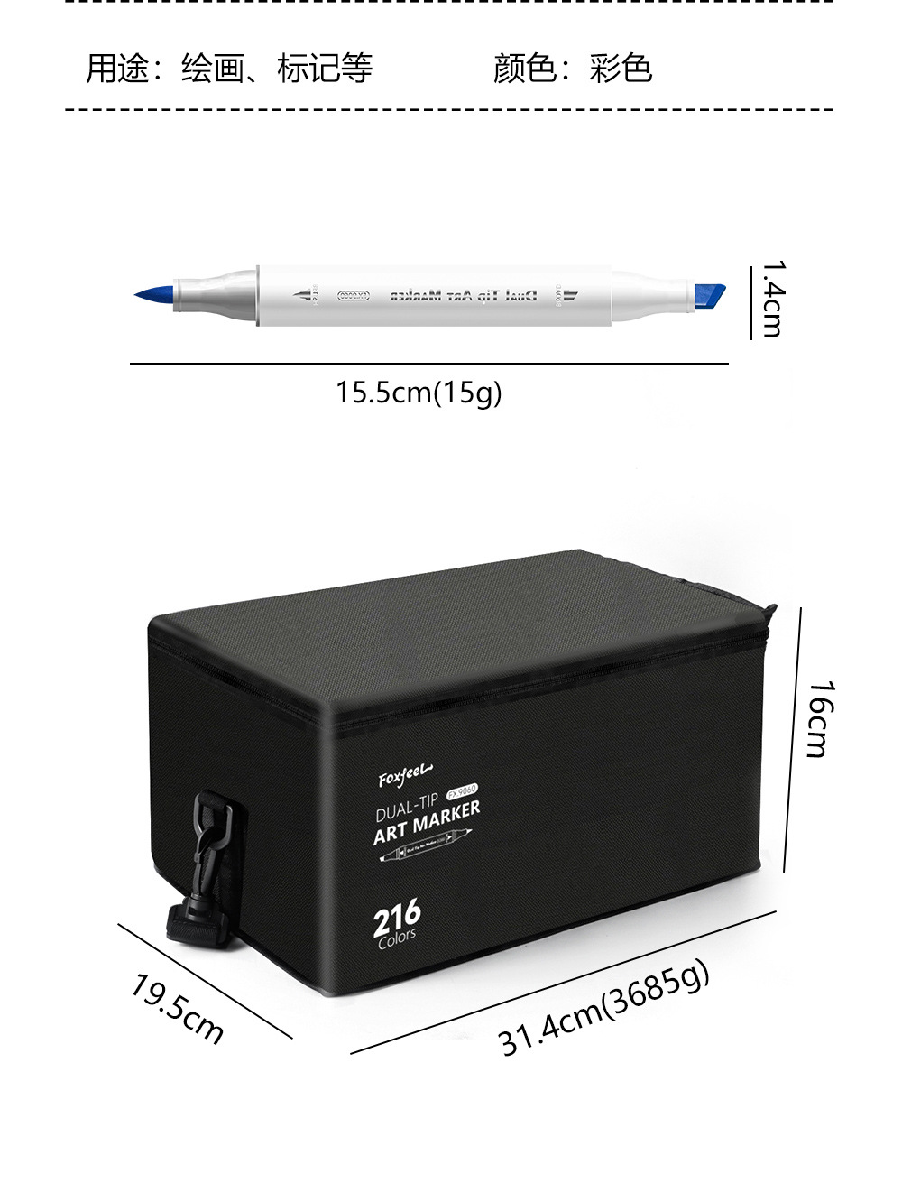 Amazon venta caliente de doble cabeza alcohol marcador bolígrafo conjunto 216 colores bolígrafo de estudiantes de alcohol blando pincel de examen de arte