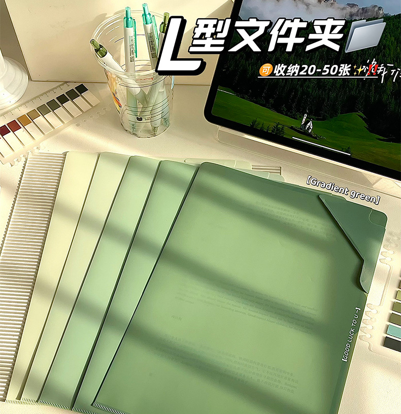 Nuevas carpetas en forma de L de gradiente carpeta de almacenamiento de materiales de oficina carpeta de almacenamiento de papel de examen de estudiantes grueso de gran capacidad