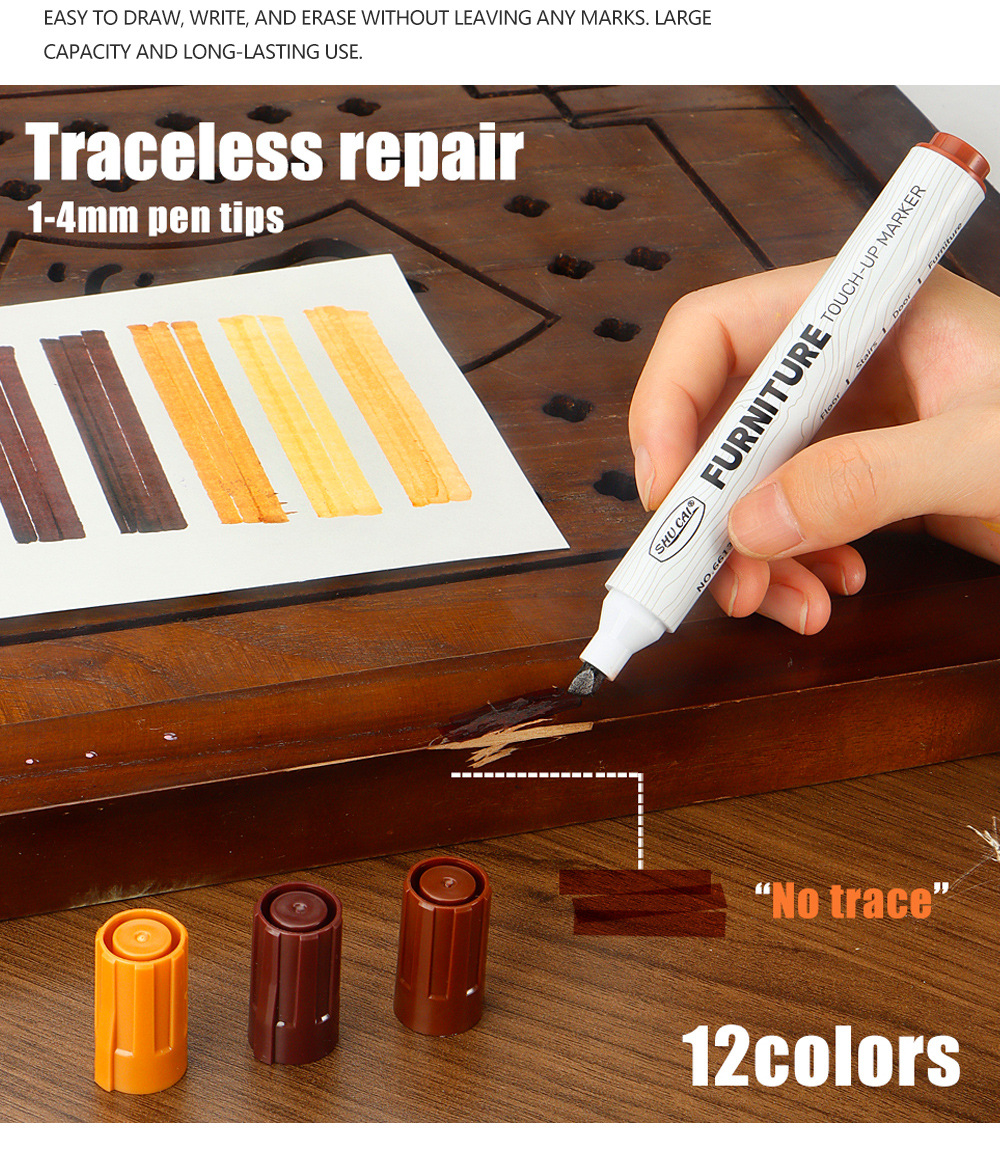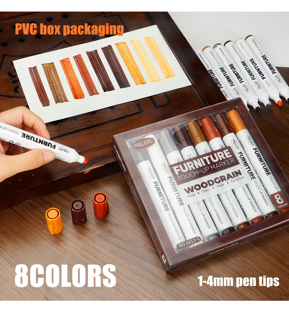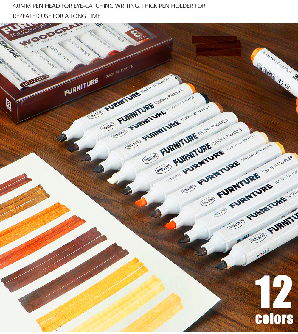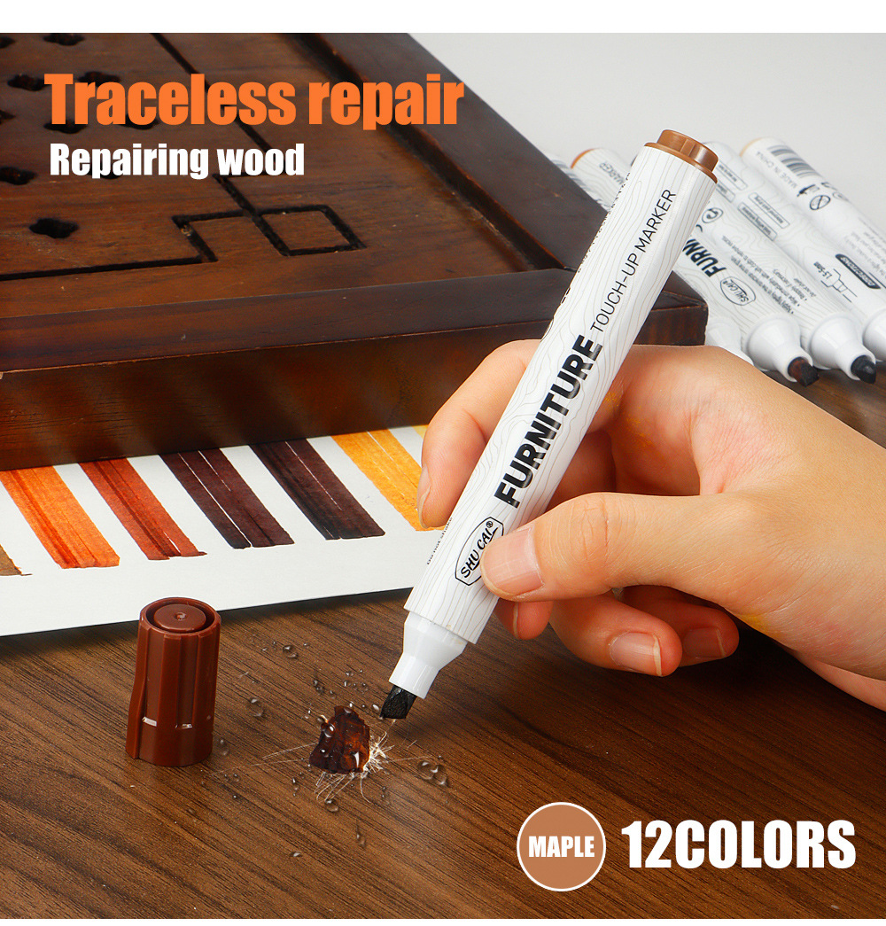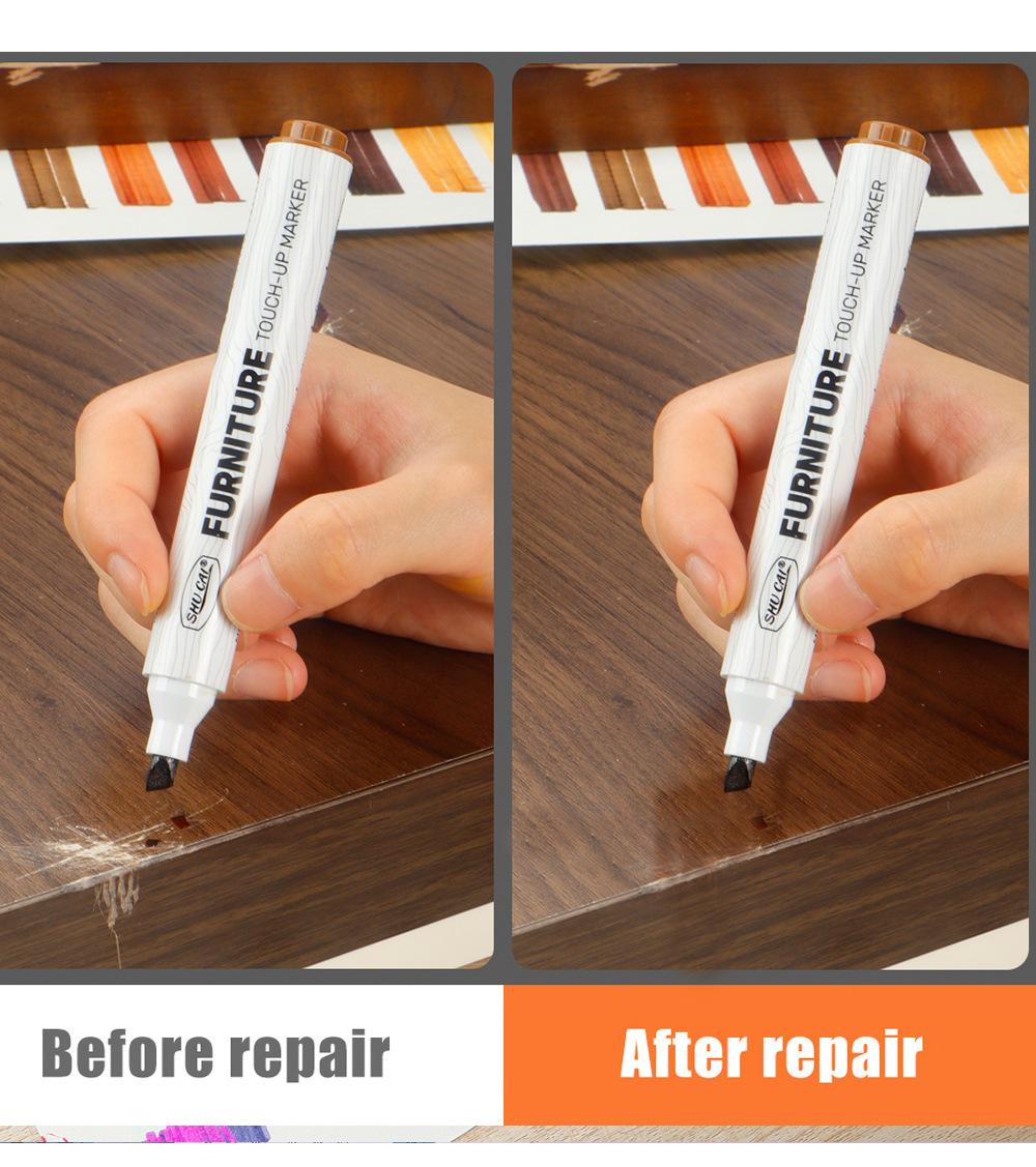 Muebles, vetas de madera, bolígrafos de retoque, arañazos, bordes blancos, reparación, reparación de bolígrafos de reparación de colores, reparación de madera, sofá de retoque de café