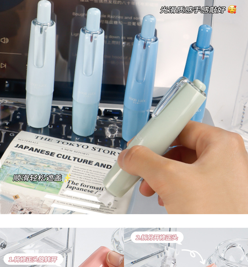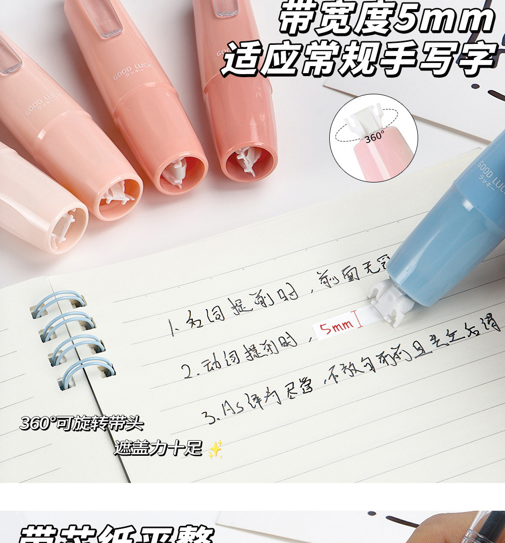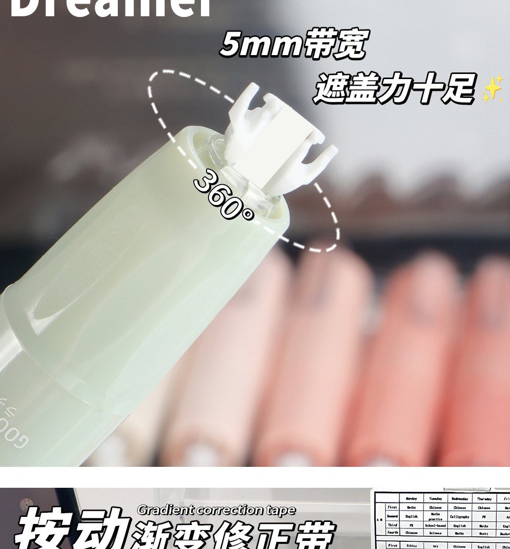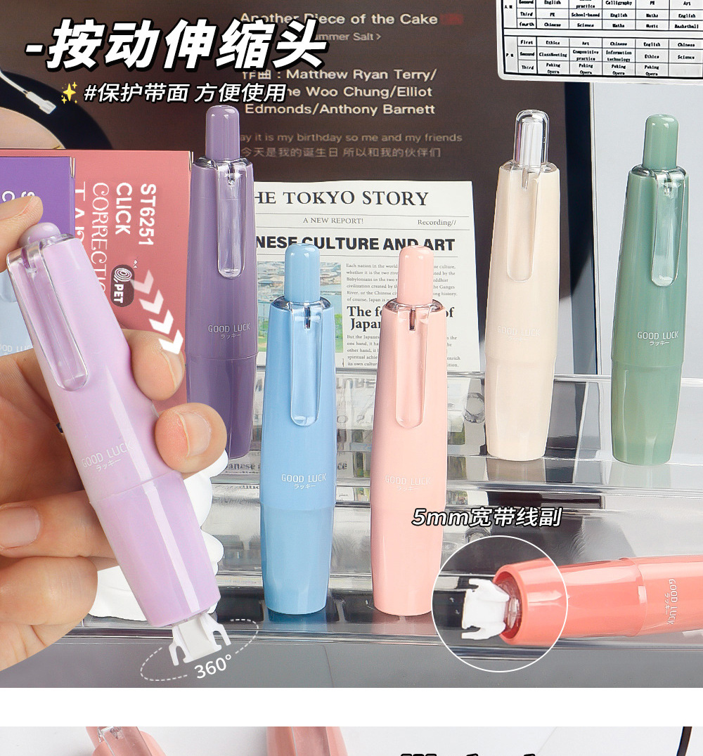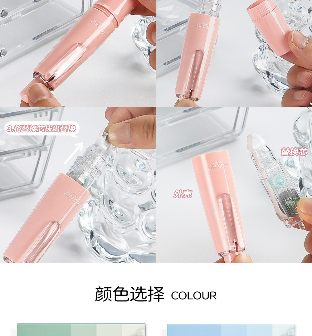 Presione el traje de cinta correctora de lápiz de liderazgo giratorio, cinta correctora de color degradado de alto valor para estudiantes, cinta correctora de núcleo intercambiable
