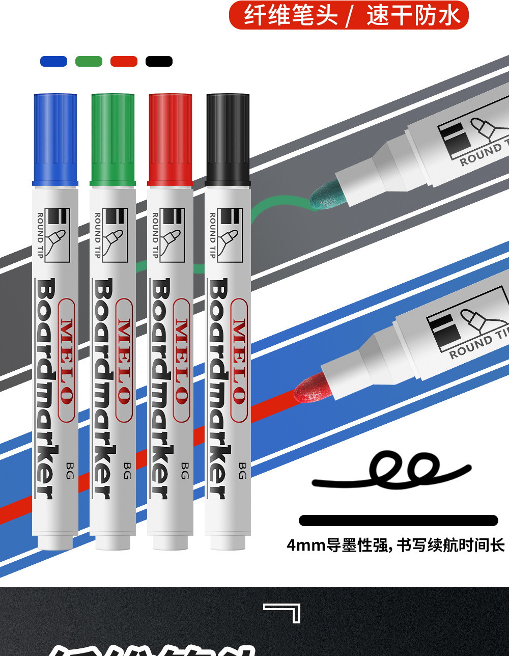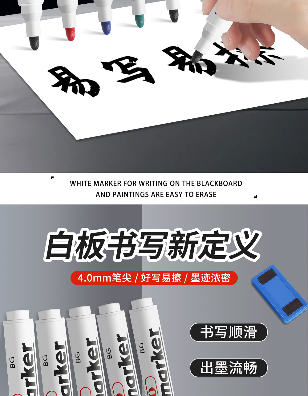 lápiz de pizarra borrable de gran capacidad enseñar lápiz de pizarra fácil de escribir lápiz de pizarra grueso rojo, azul y negro lápiz de pizarra