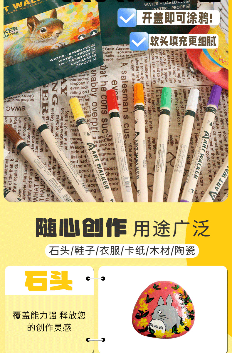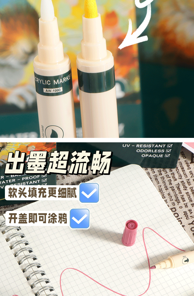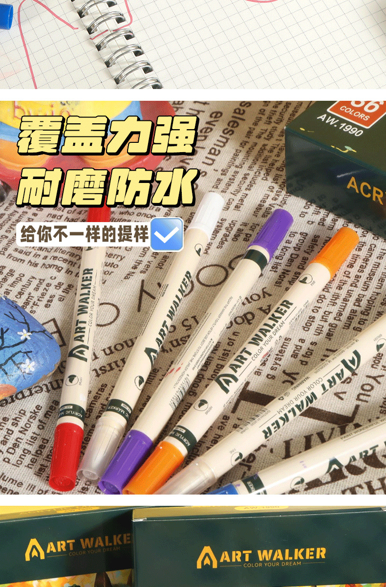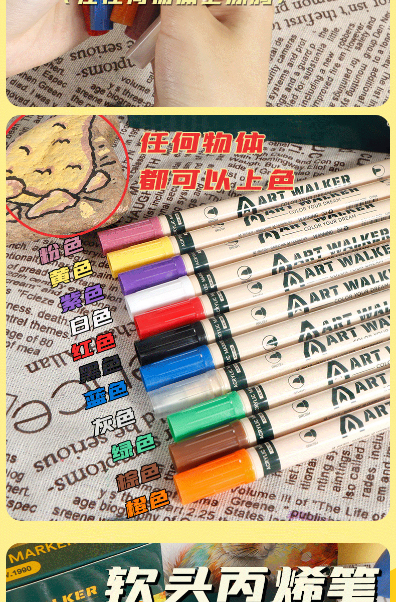 Bolígrafo de acrílico blando mayorista impermeable a secar rápido para niños bolígrafo de graffiti de color para estudiantes de escuela primaria se puede lavar con agua bolígrafo de doble cabeza