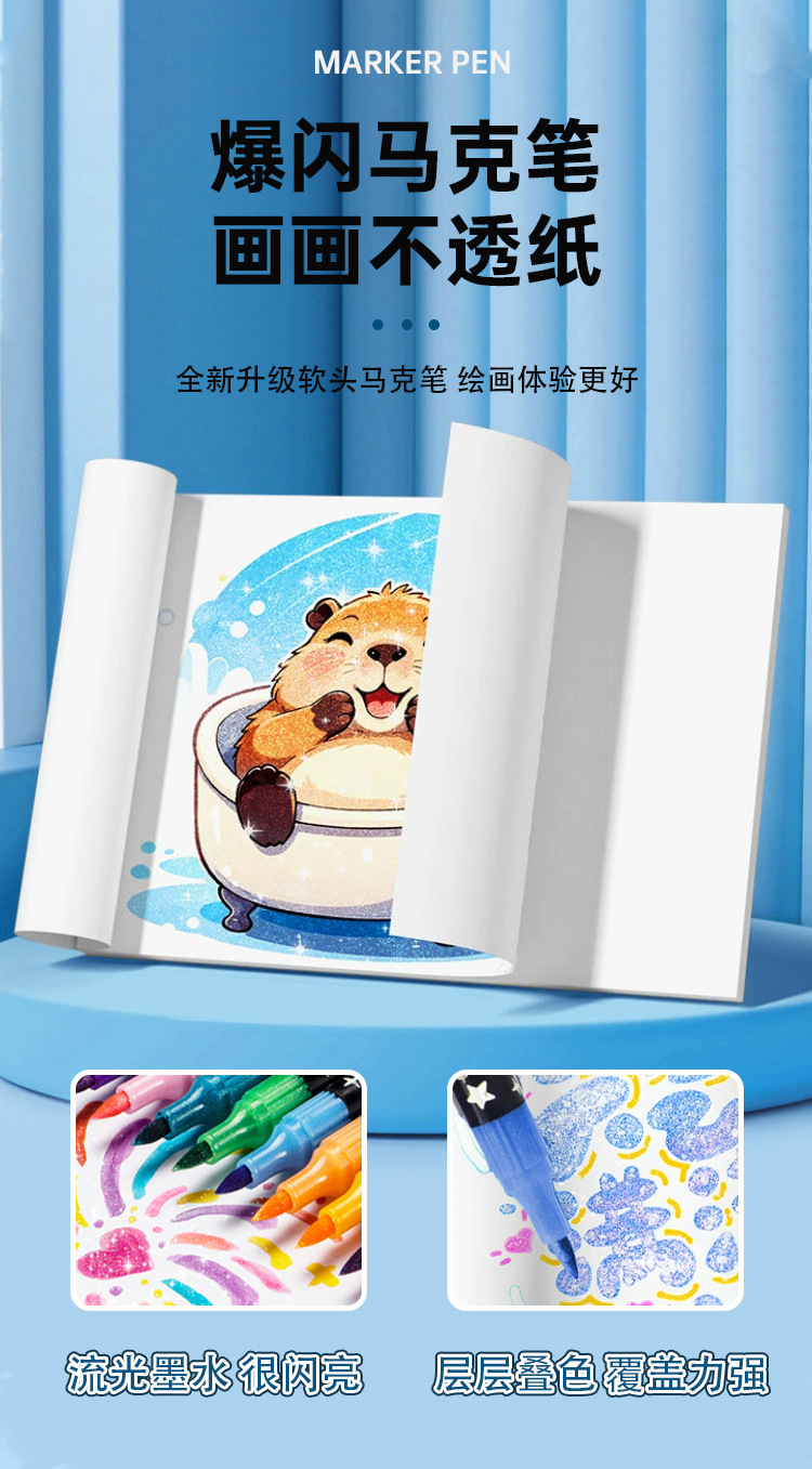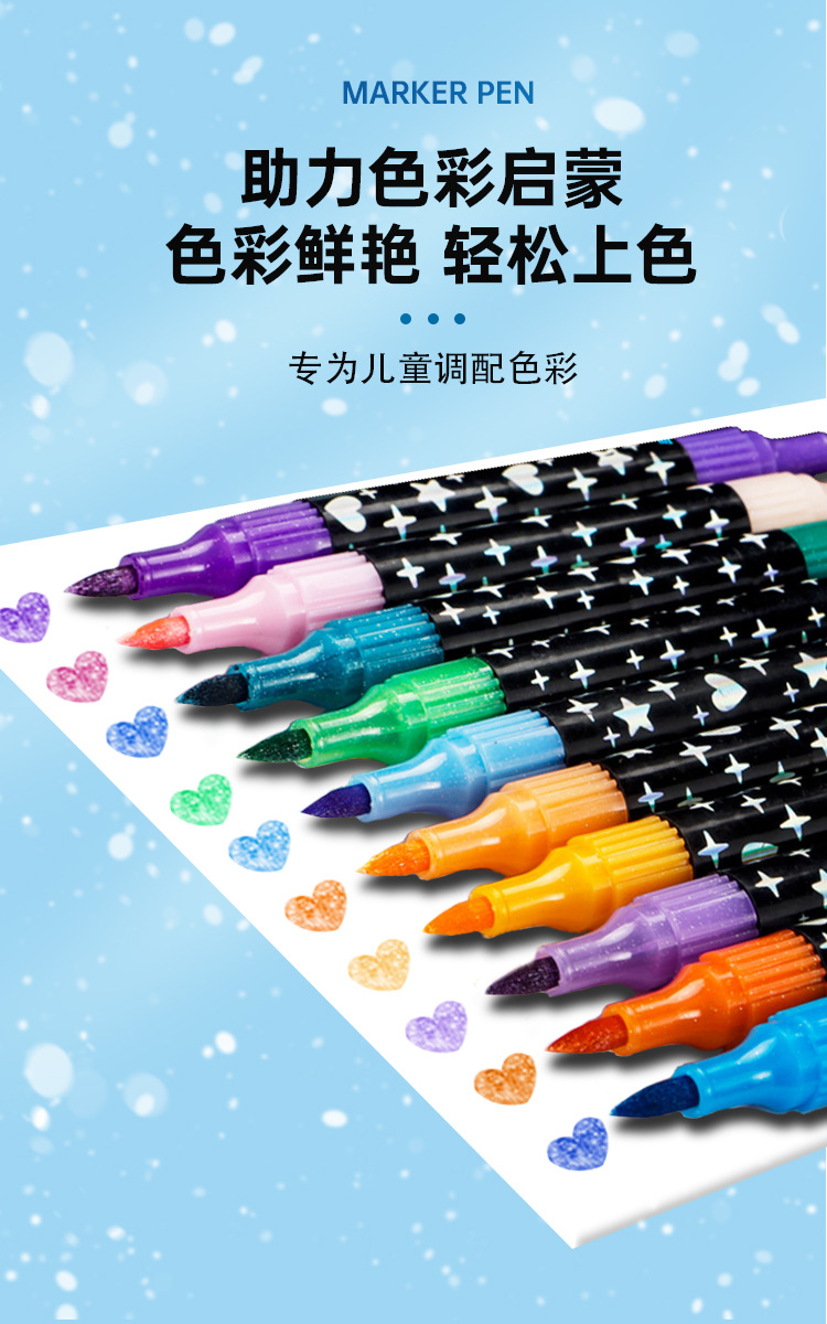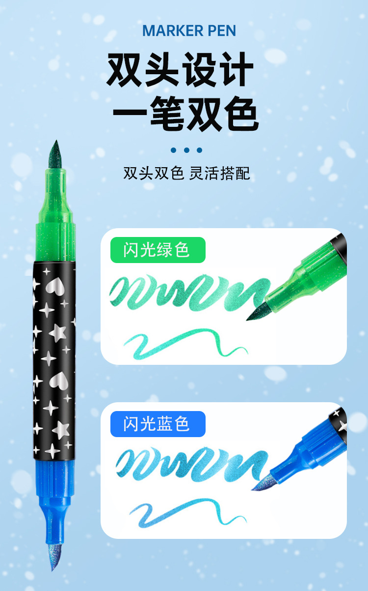 Ventas transfronterizas calientes de doble cabeza de doble color flash marcador de bolígrafo de bolígrafo blando para estudiantes de pintura graffiti bolígrafo DIY
