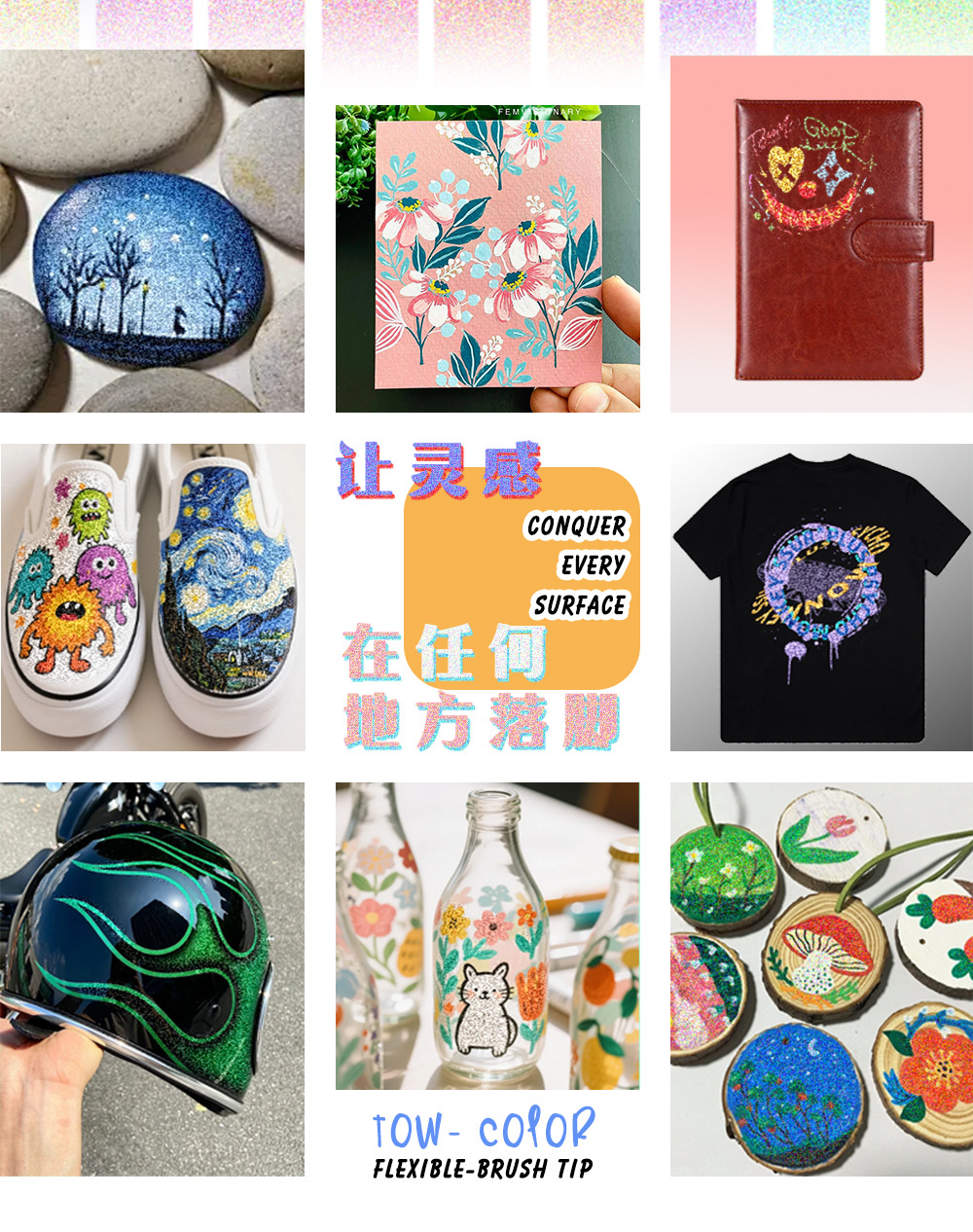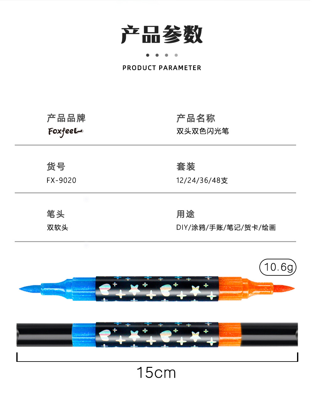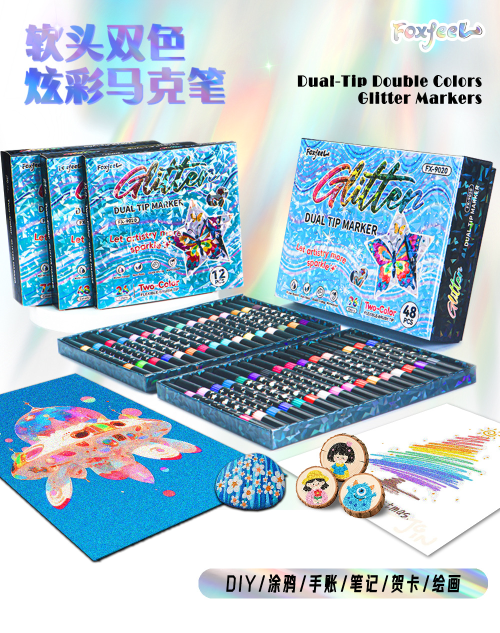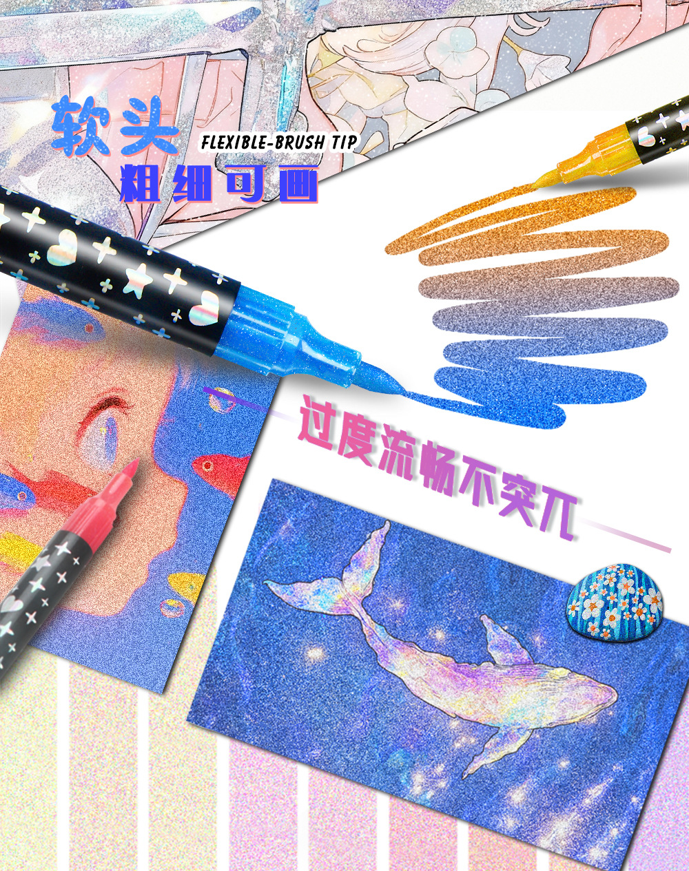 Bolígrafo de doble color de doble cabeza de explosión transfronteriza conjunto de bolígrafo de marca de cabeza suave para pintura con polvo de brillo de perlas