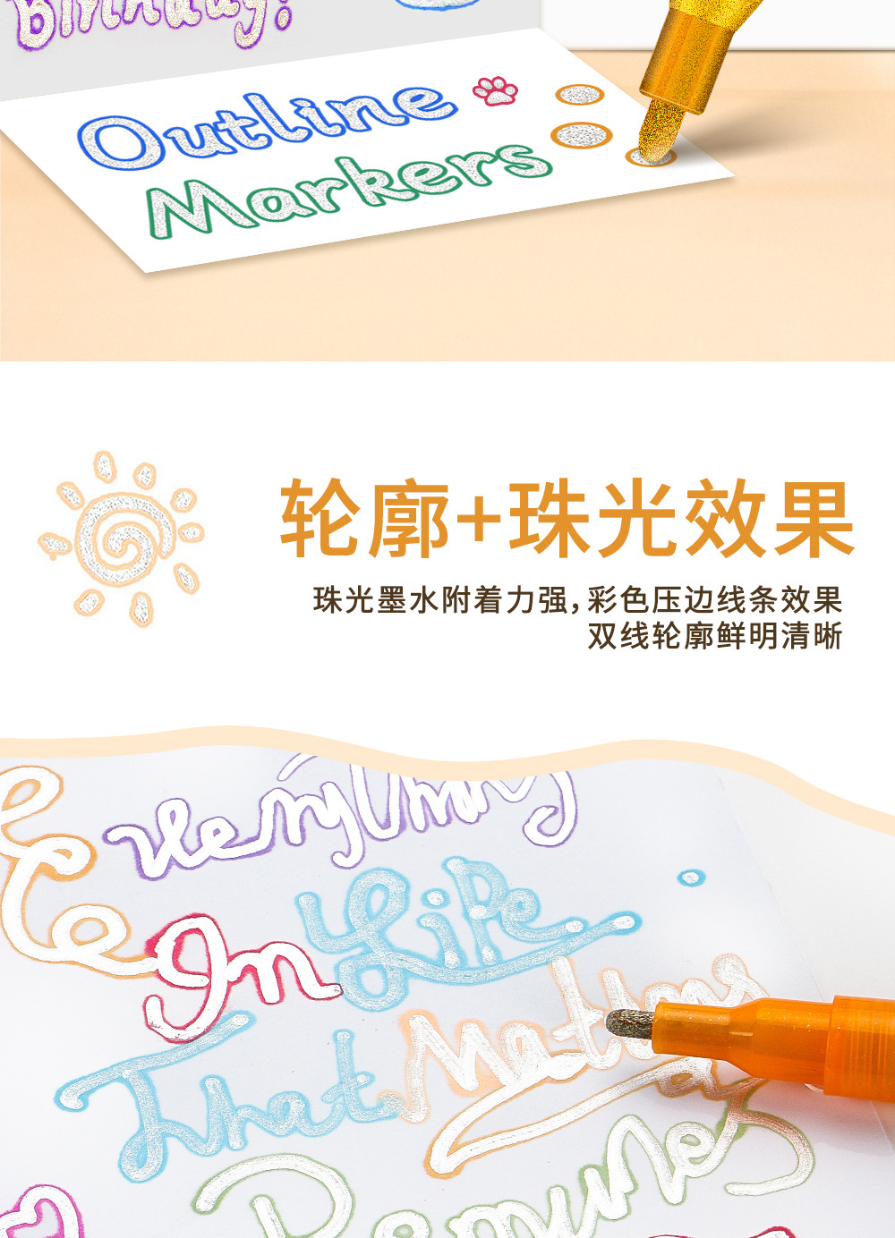 48 colores de doble línea de contorno bolígrafo DIY creativo bolígrafo de marcado flash bolígrafo de marcado de Navidad bolígrafo de marcado en stock mayorista