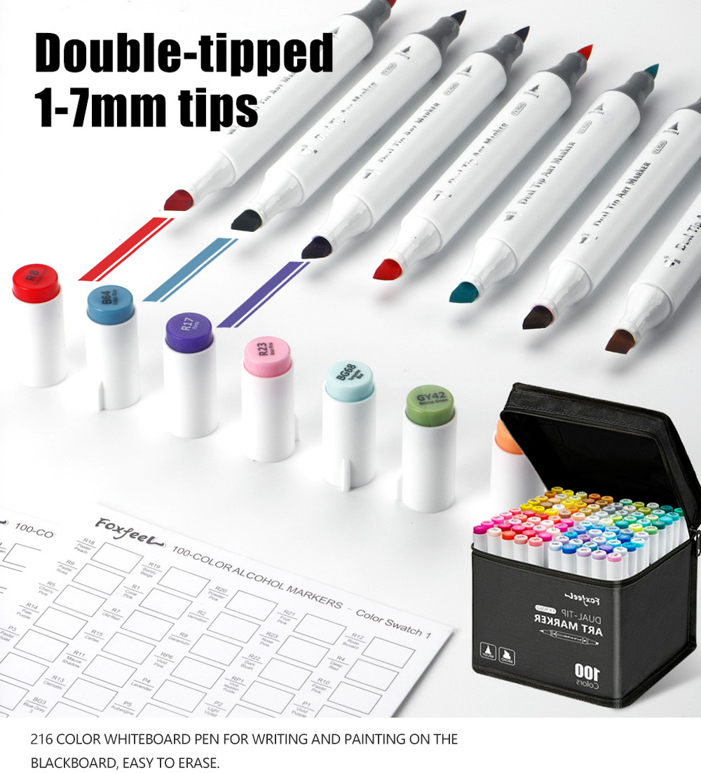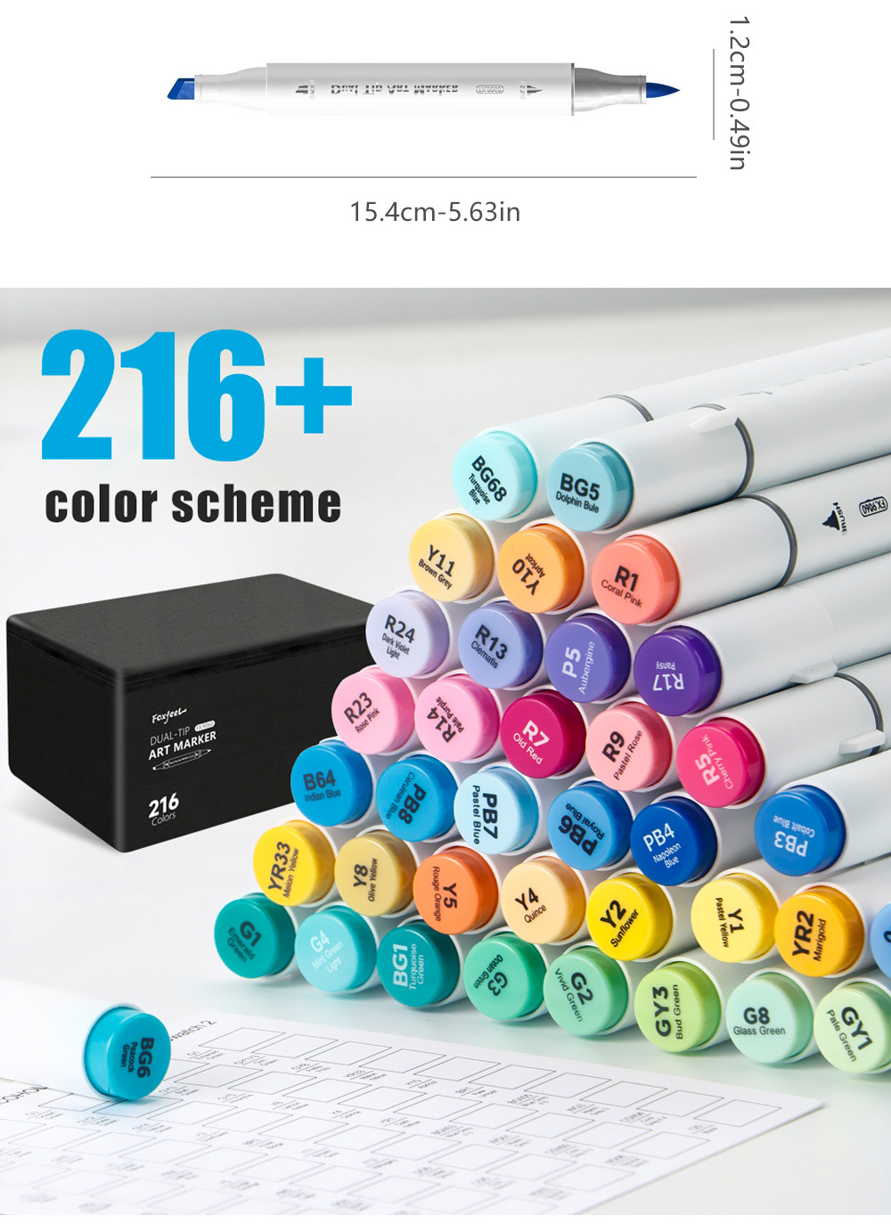 | Especificaciones | Marcador de alcohol de doble cabeza de 48 colores, marcador de alcohol de doble cabeza de 80 colores, marcador de alcohol de doble cabeza de 100 colores, marcador de alcohol de doble cabeza de 120 colores, marcador de alcohol de doble cabeza de 168 colores, marcador de alcohol de doble cabeza de 216 colores |