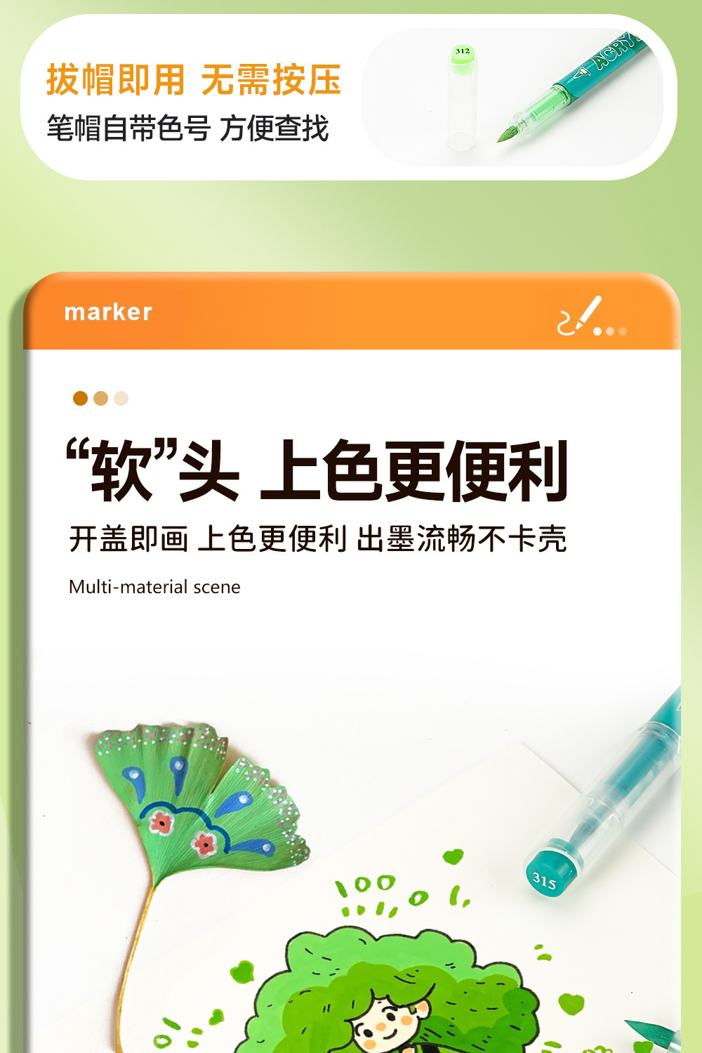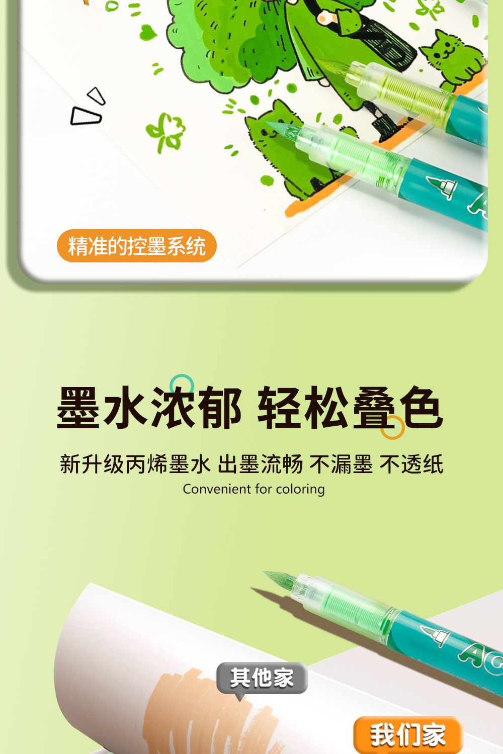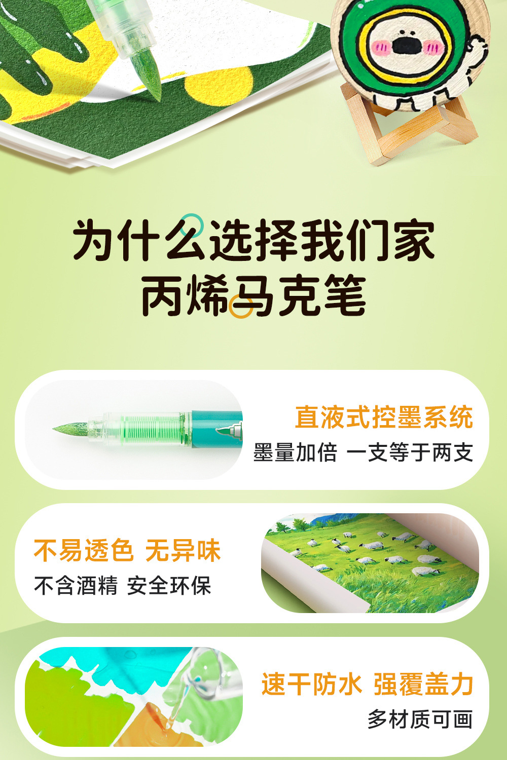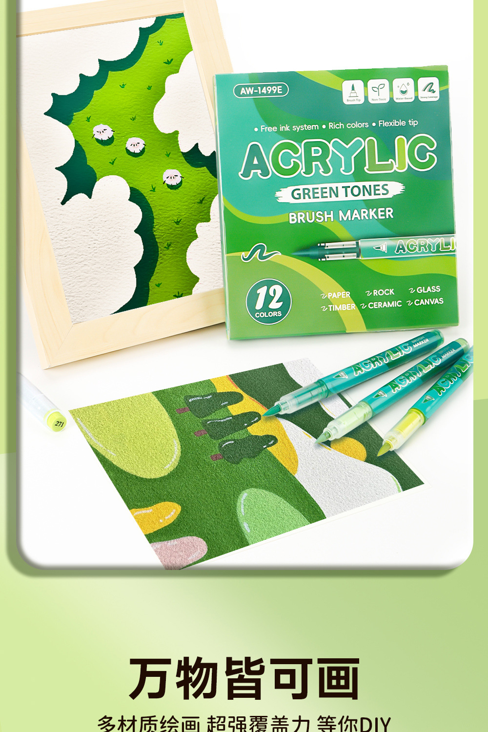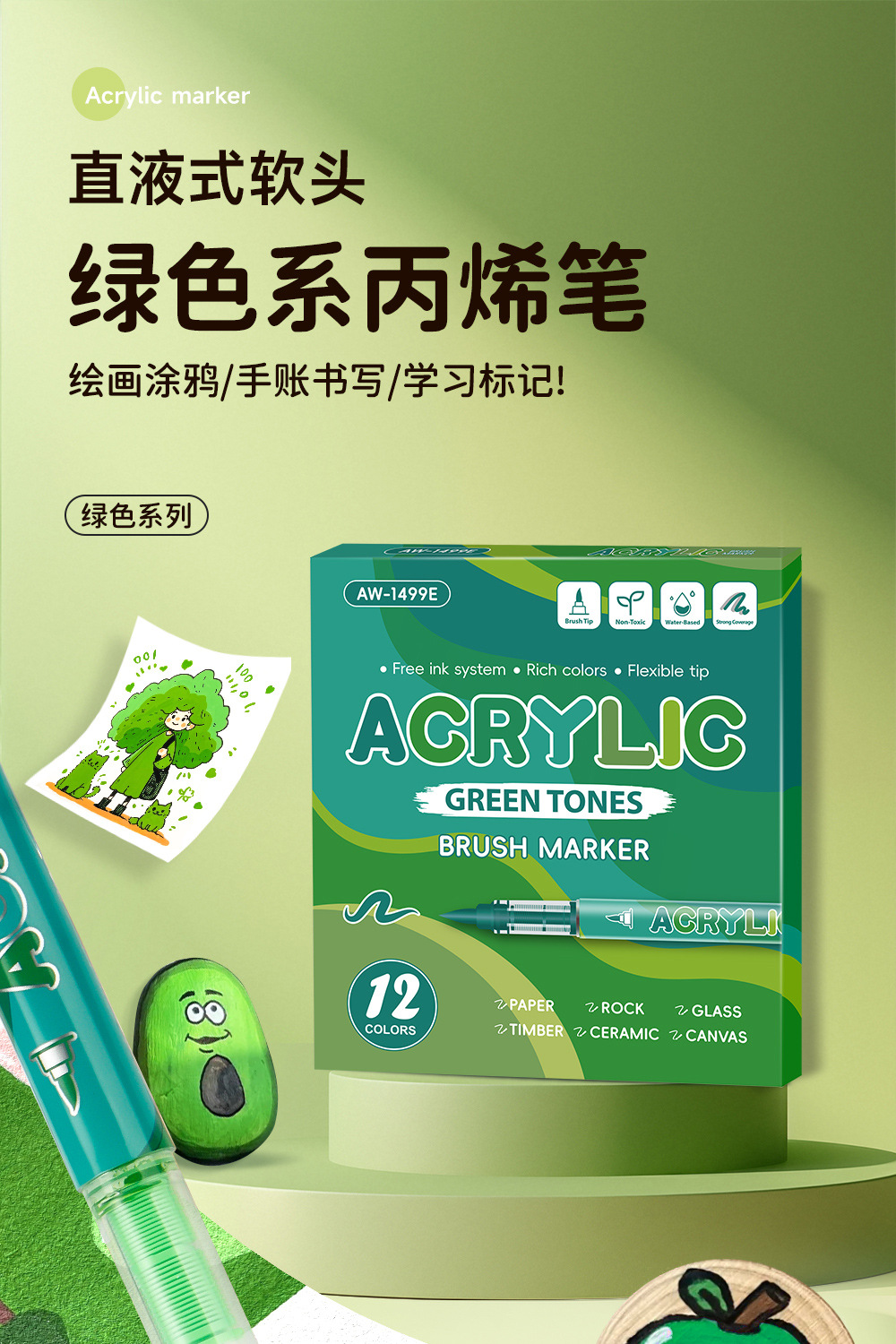 Serie de bosque verde líquido directo acrílico marcador de pluma para estudiantes de pintura especial gradiente acrílico verde pluma mayorista