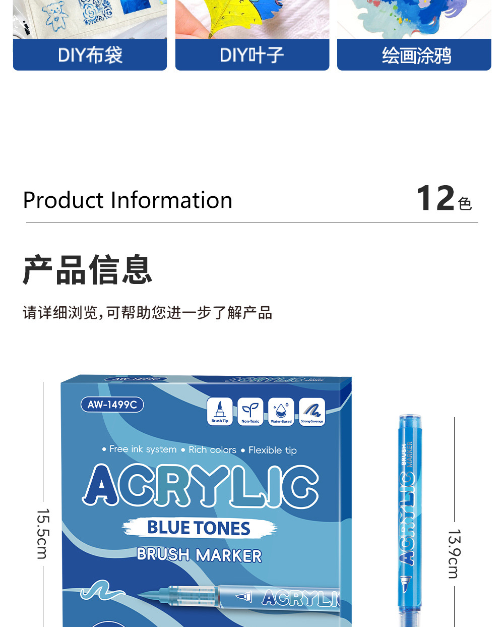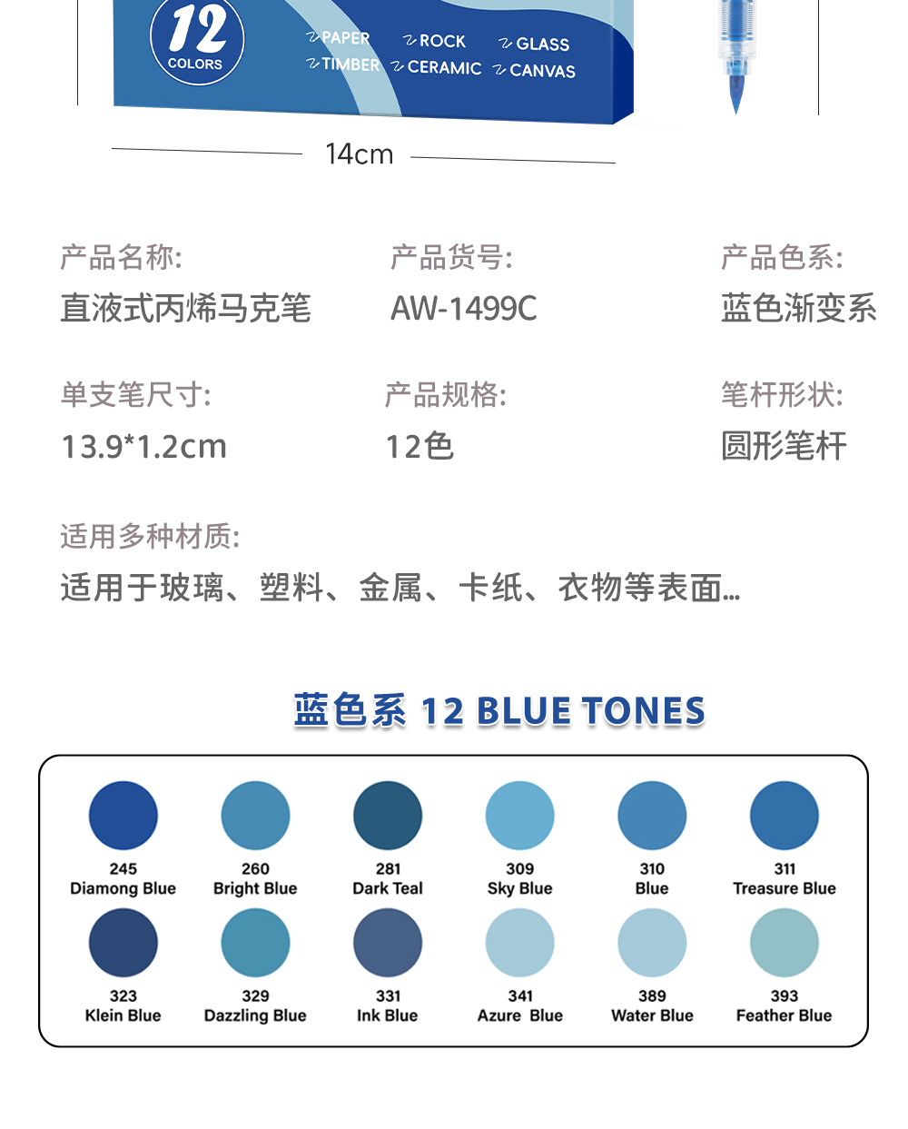 | Especificaciones | 12 colores (conjunto de gradiente azul) |
