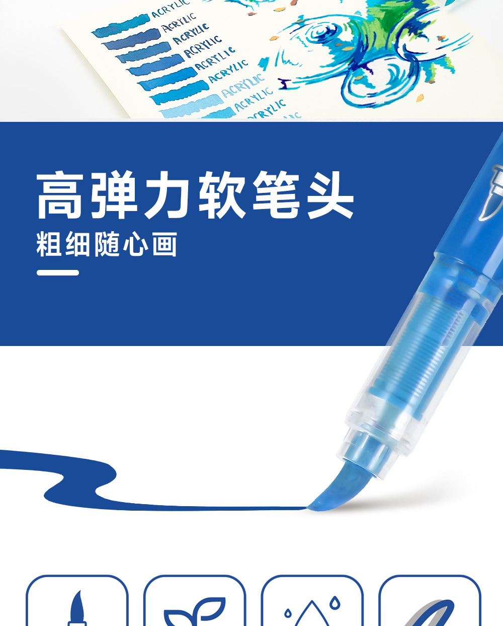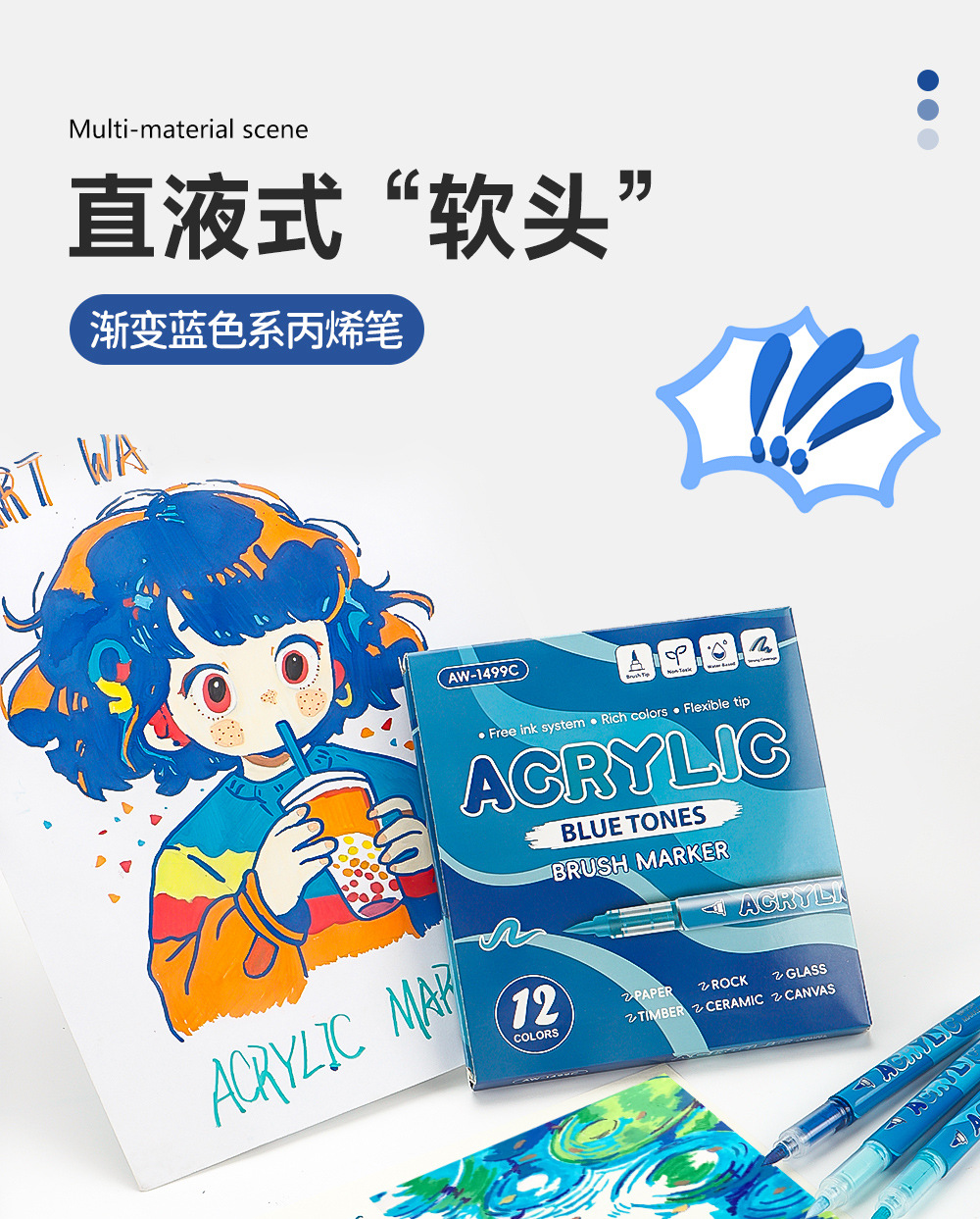 Líquido directo de acrílico marcador de papel impermeable de color plegable de cabeza suave marcador de agua de color profesional de arte en stock