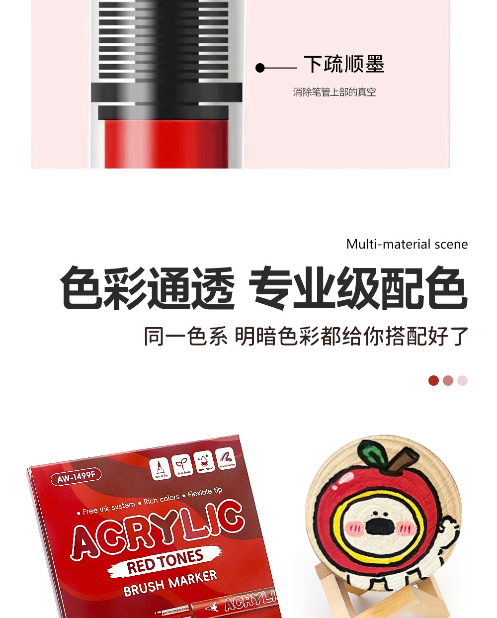 | Especificaciones | Serie de degradados rojos "bolígrafo de acrílico líquido directo" |