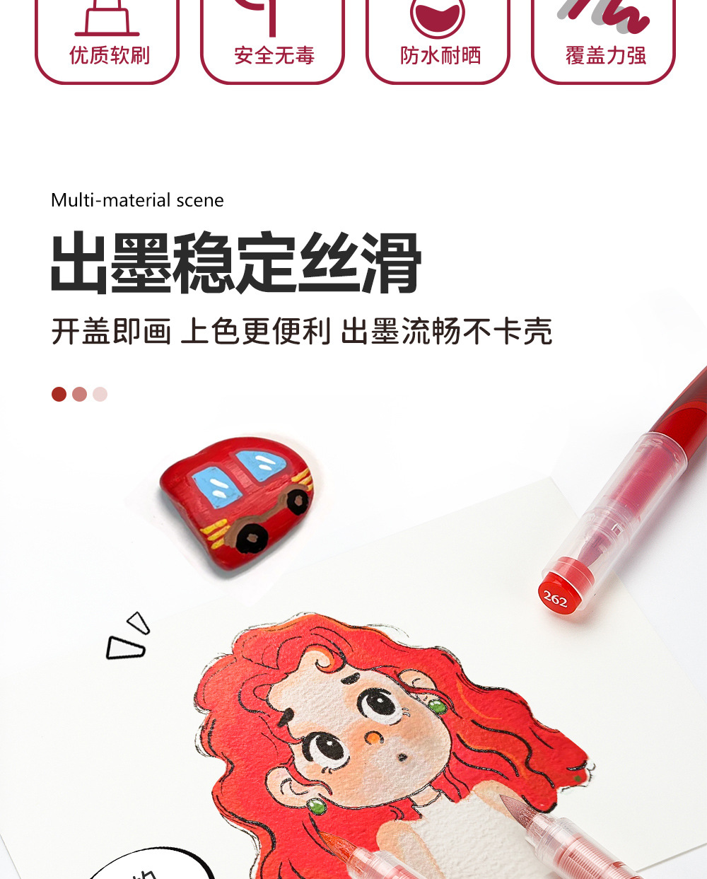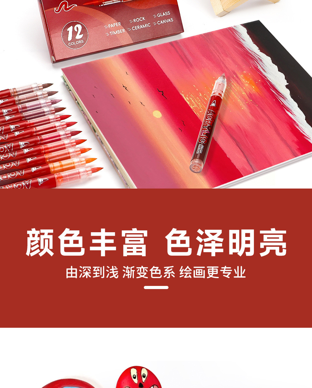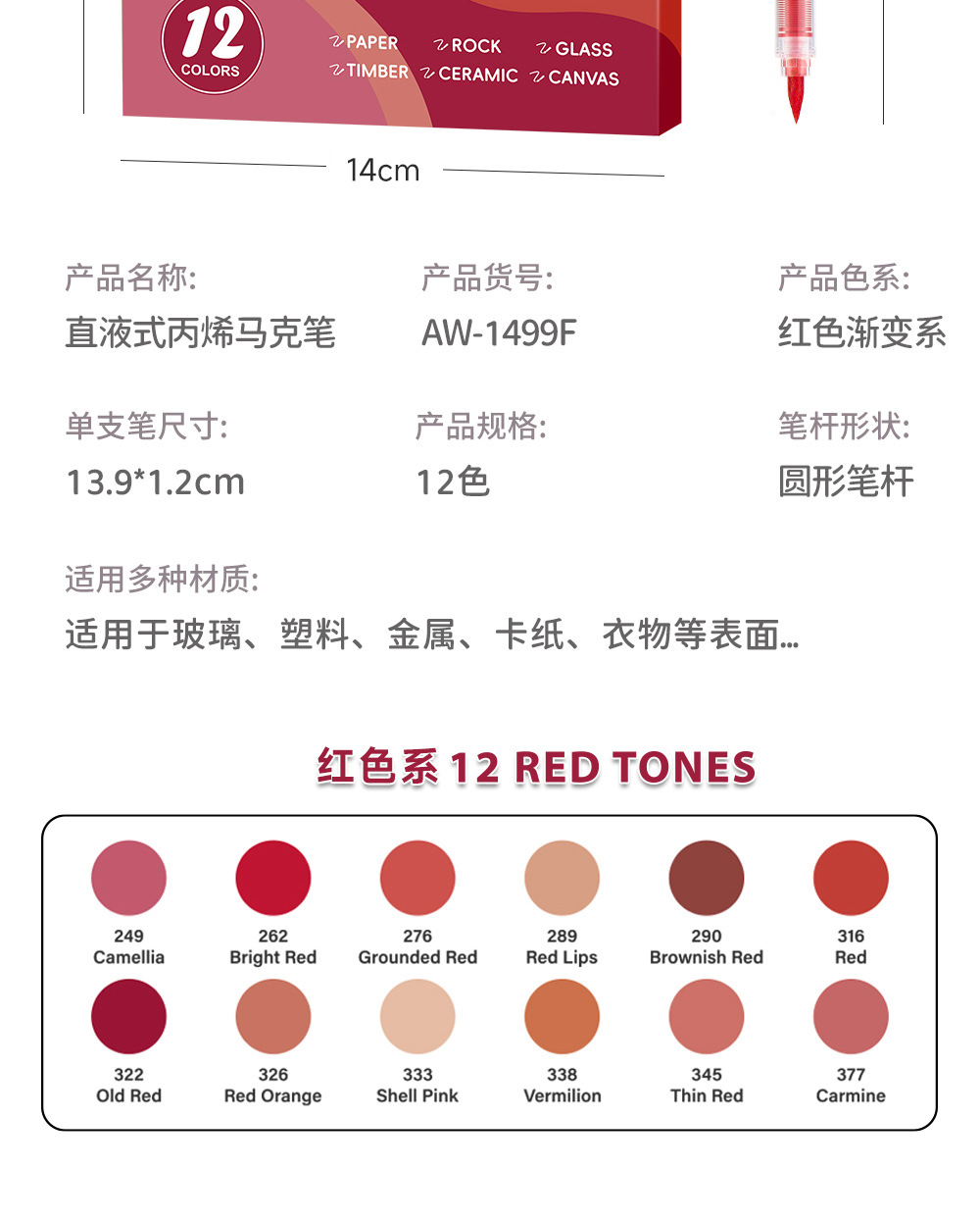 Líquido directo acrílico marcador conjunto de serie de color rojo gradiente de pintura de niños marcador de acuarela de arte en stock