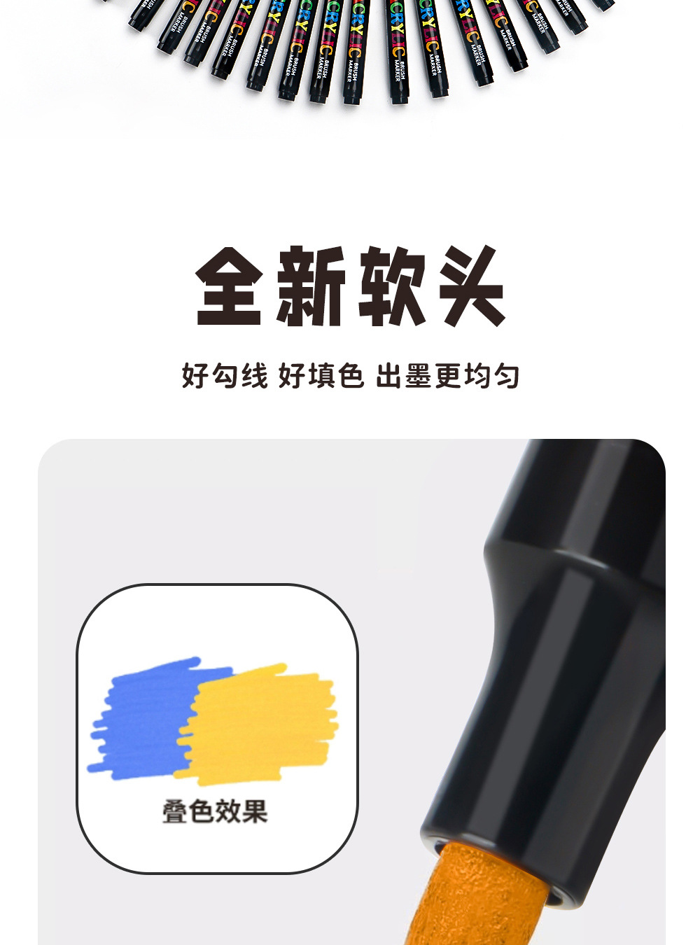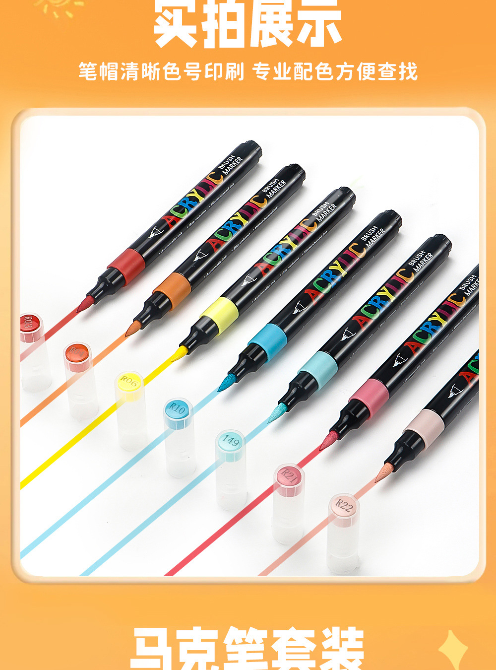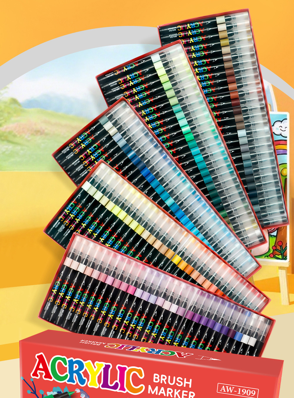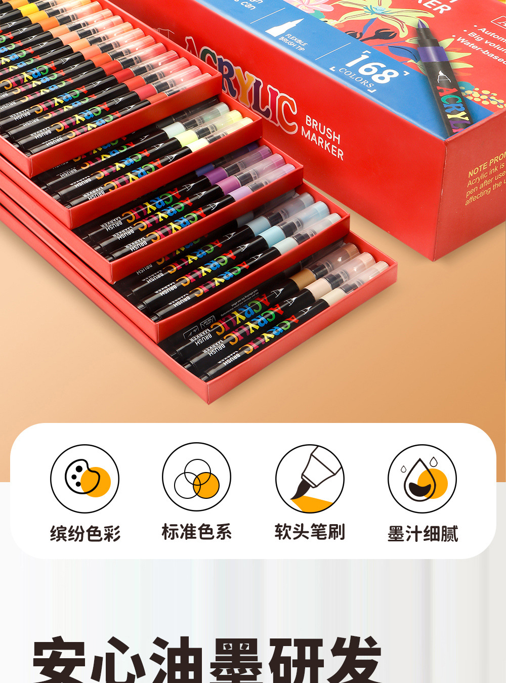 Marcador de acrílico de cabeza blanda profesional de pintura de arte marcador de pintura de tinta de acrílico marcador de venta transfronteriza