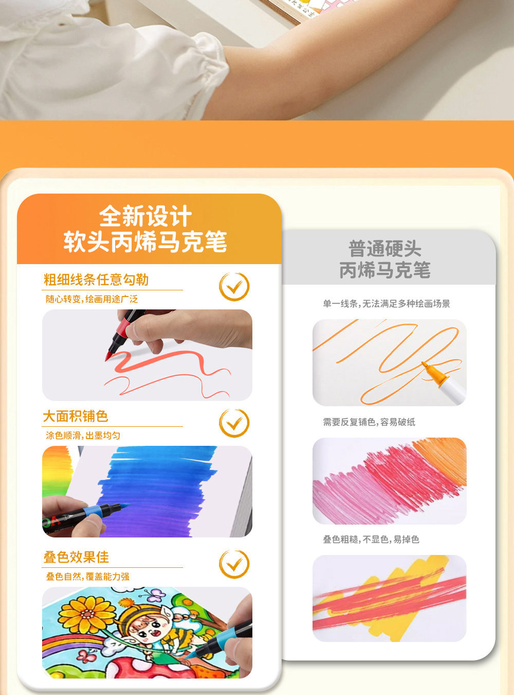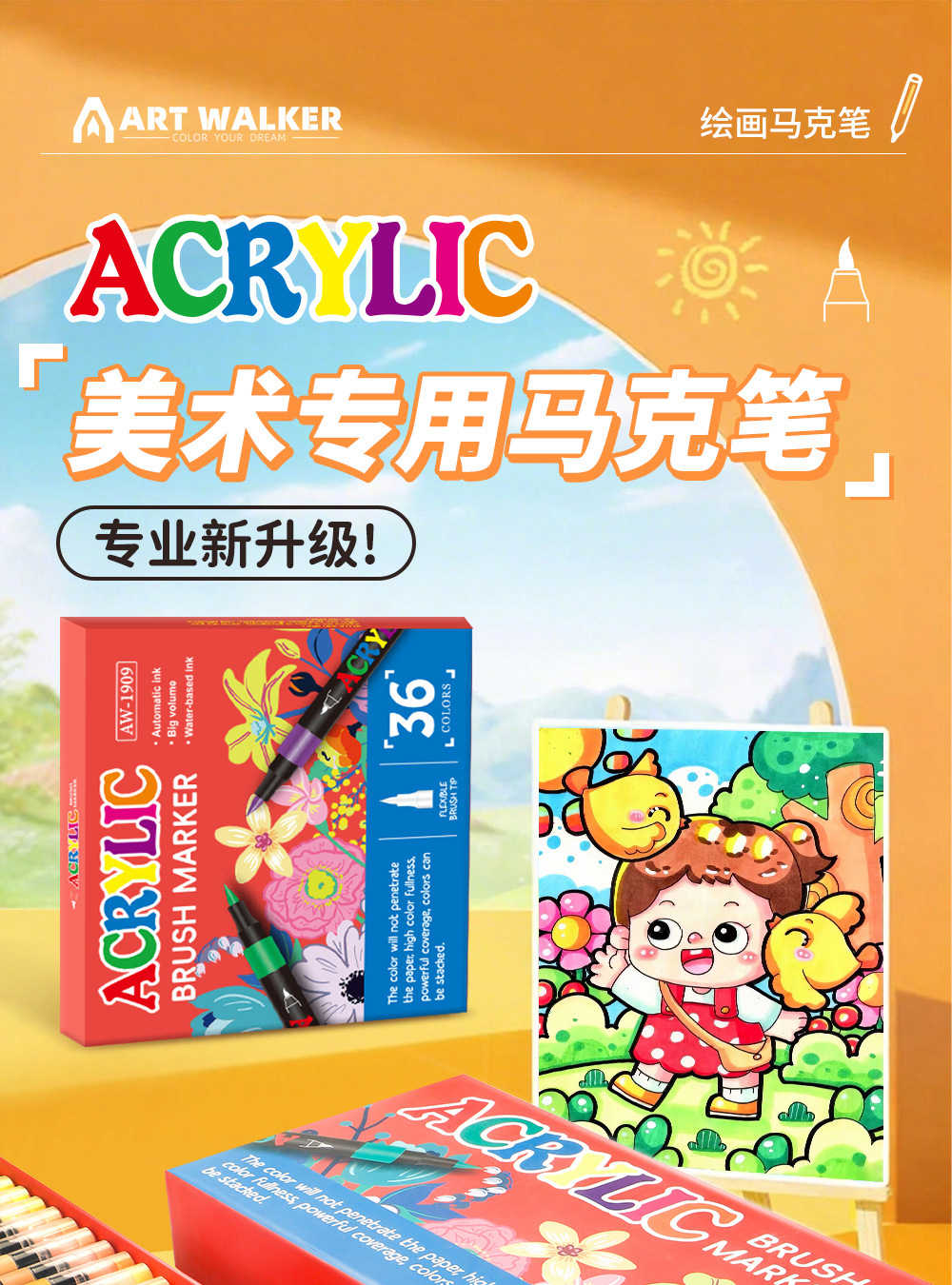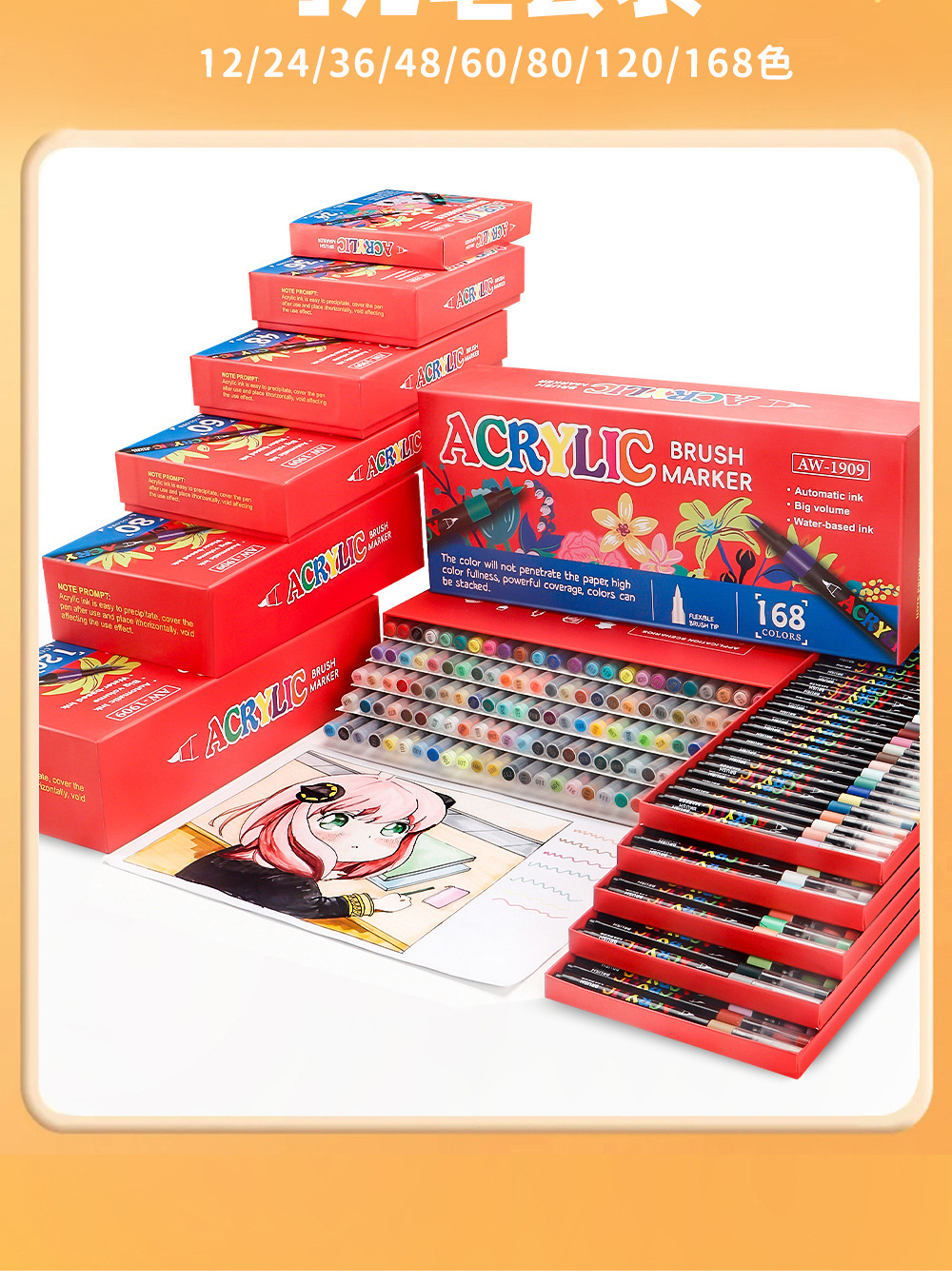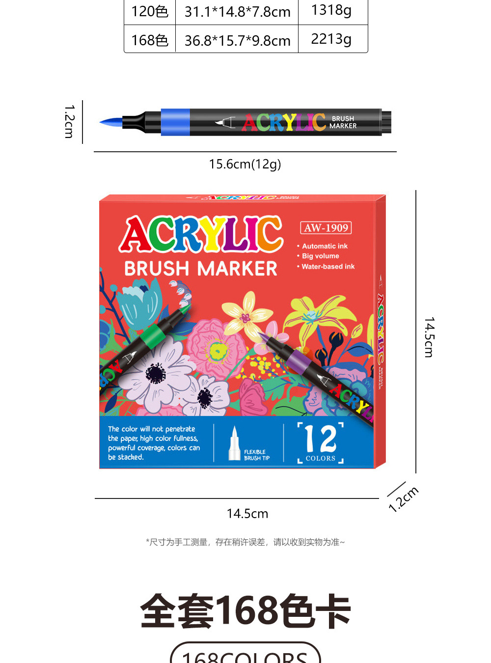 Marcador de acrílico de cabeza blanda profesional de pintura de arte marcador de pintura de tinta de acrílico marcador de venta transfronteriza