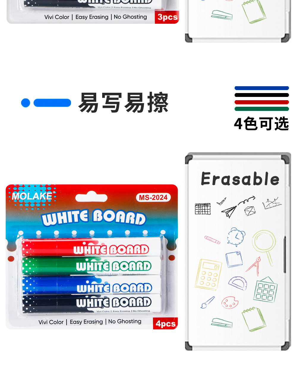 | Color de la pluma | 2 + 1 (con borracha de pizarra), 3 + 1 (con borracha de pizarra), 3 paquetes, 4 + 1 (con borracha de pizarra), 4 paquetes |