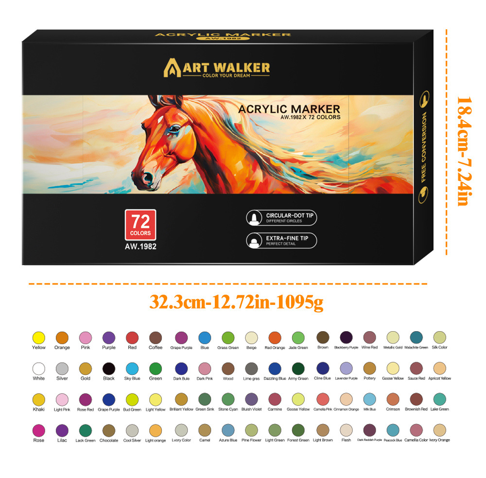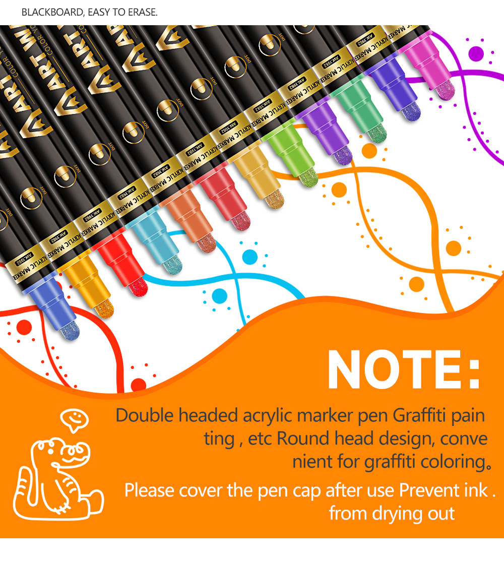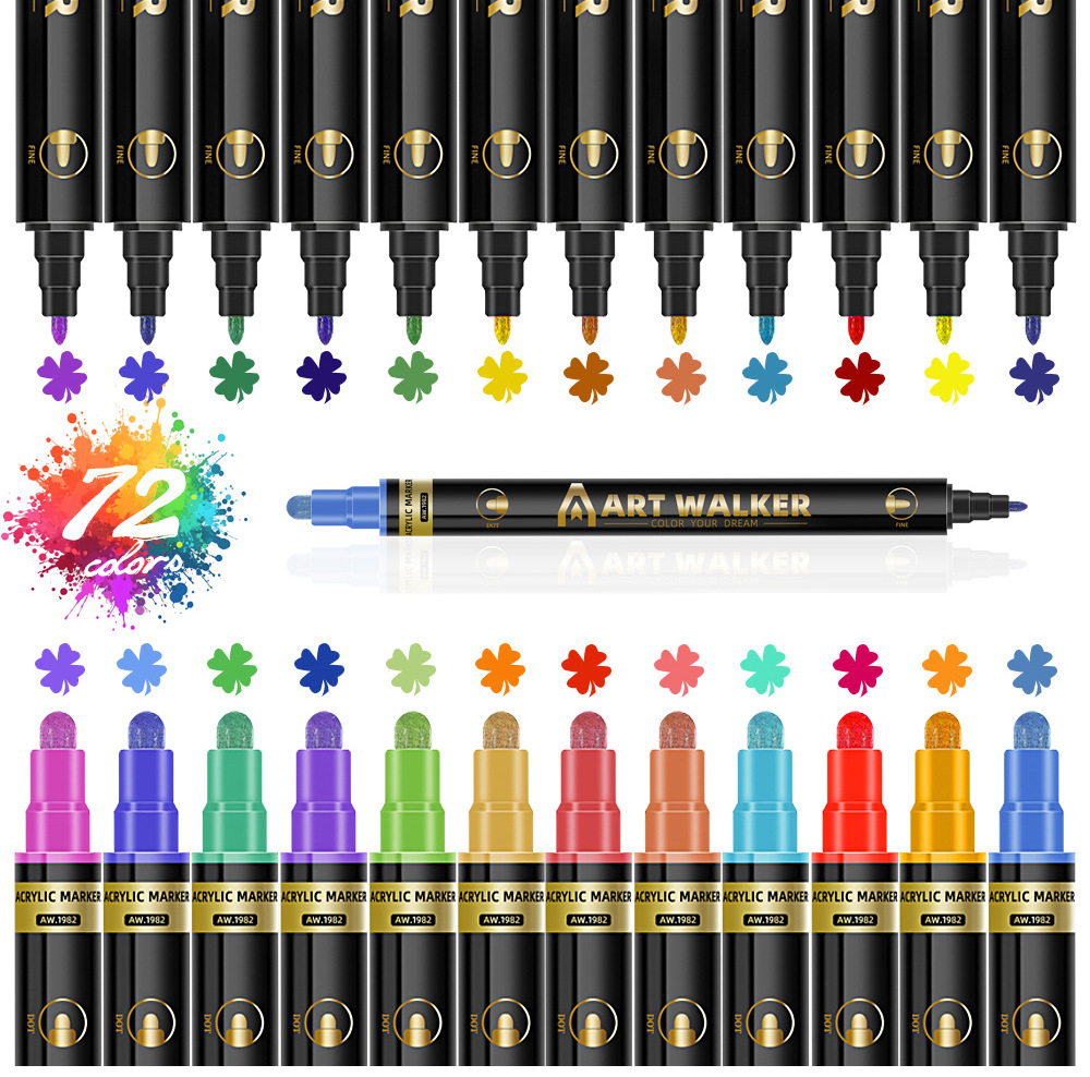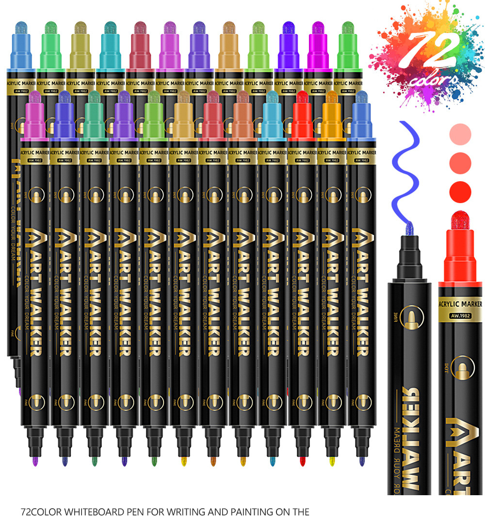 Explosiones transfronterizas 72 color pluma de acrílico de doble cabeza para estudiantes pintando graffiti lavable pluma de acrílico pintada