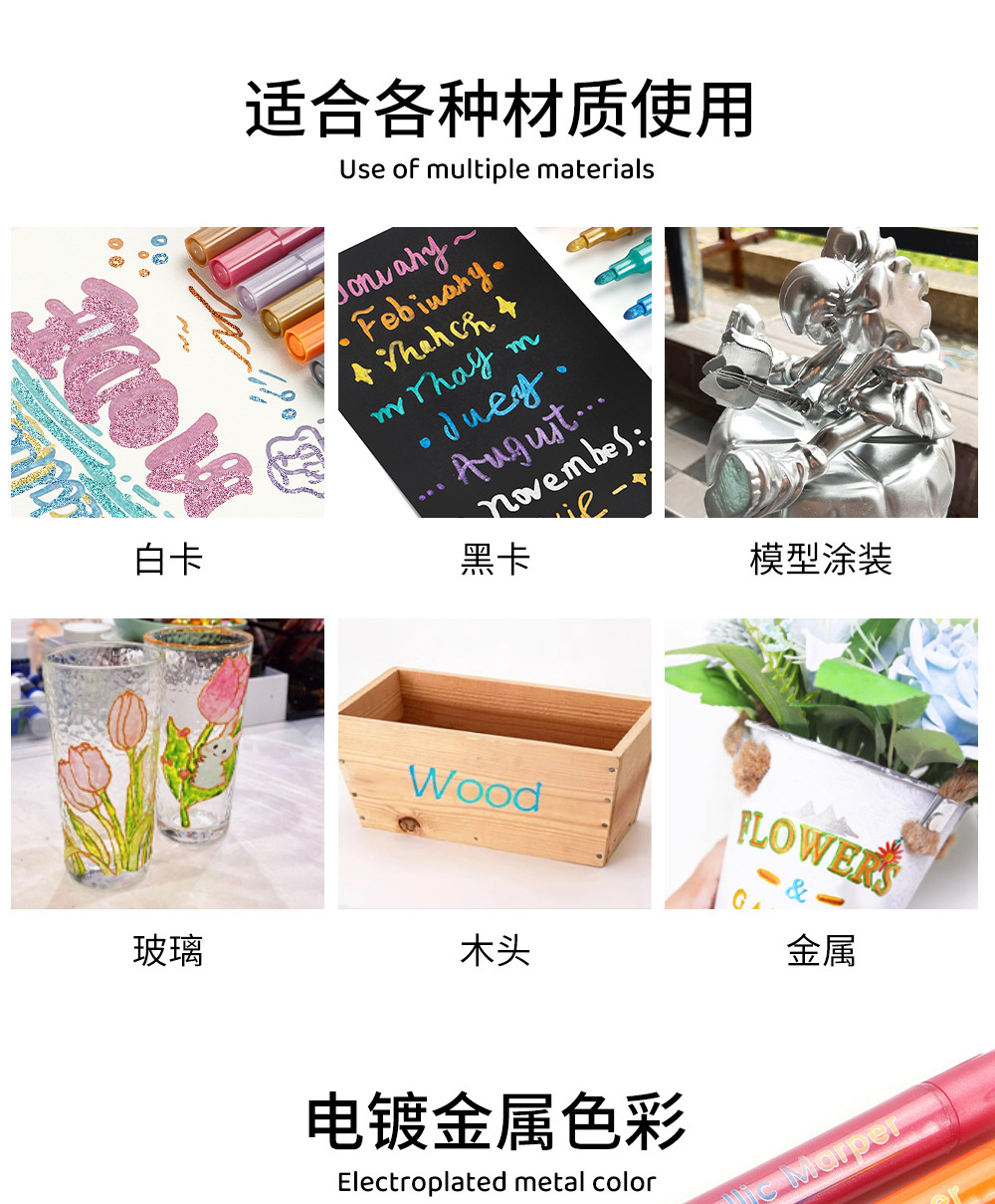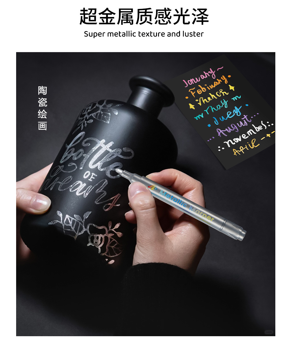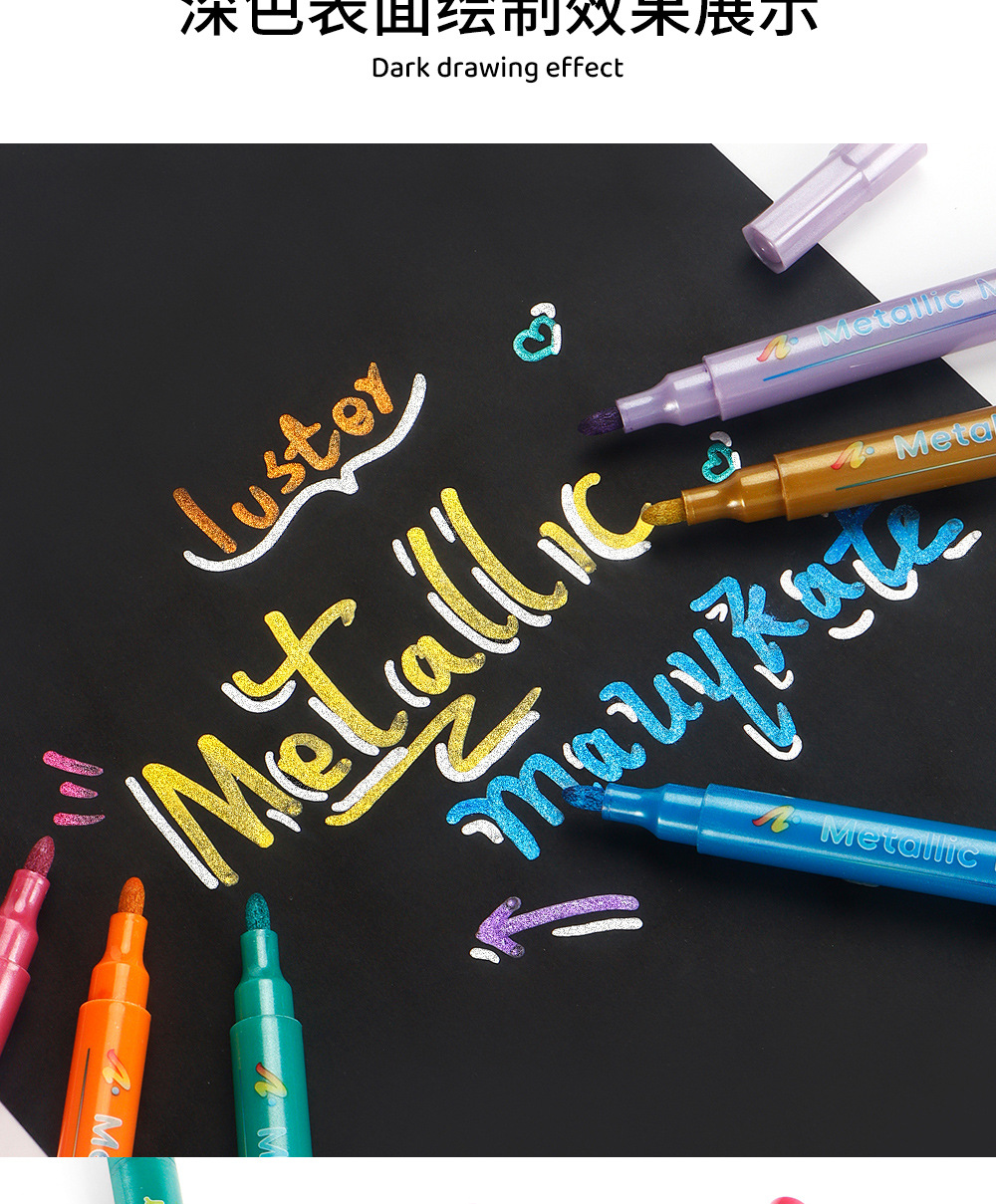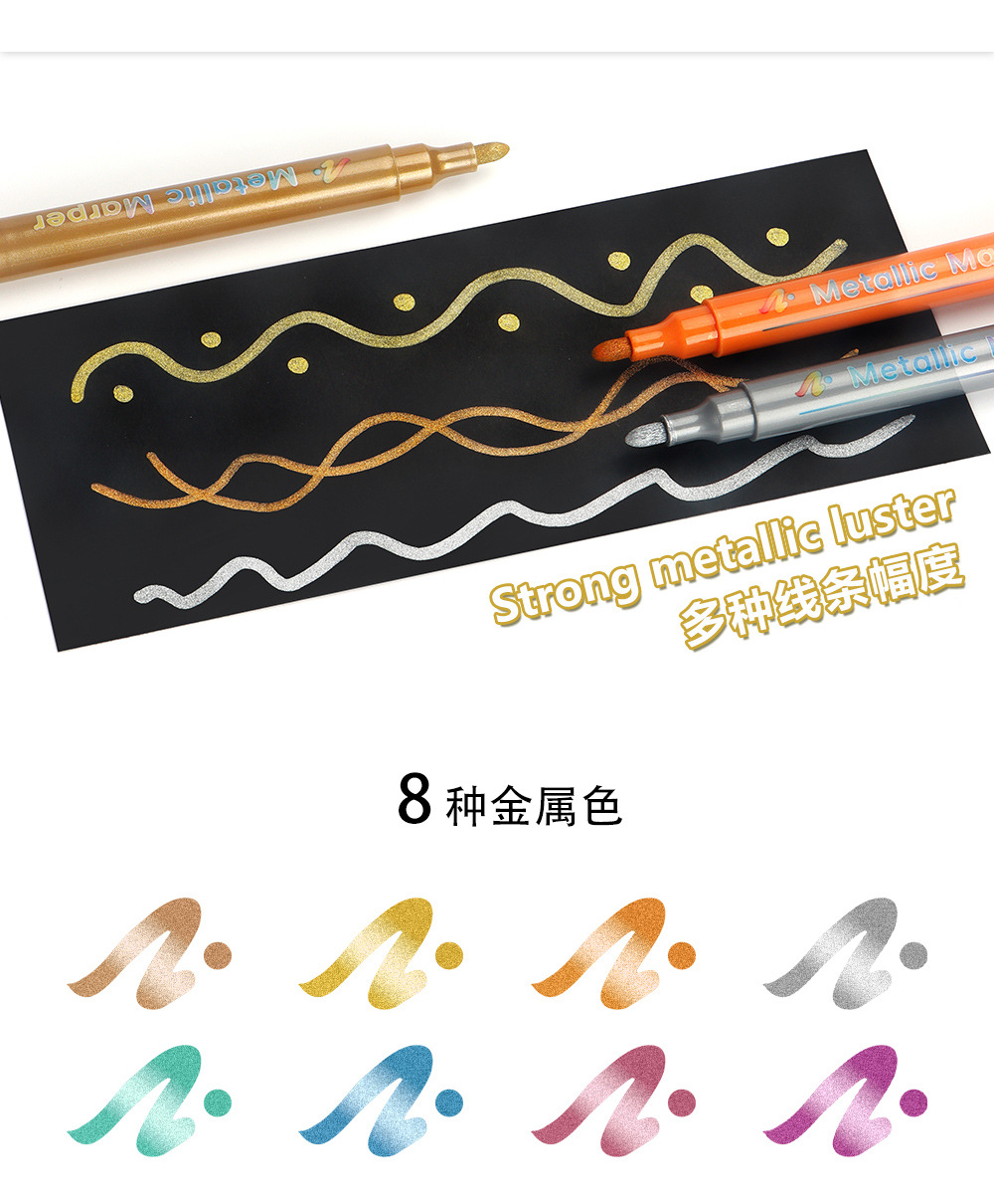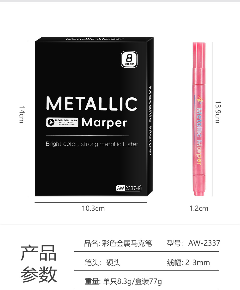 | Especificaciones | 8 colores / caja, naranja, rosa, oro, plata, cobre, verde, azul, púrpura |