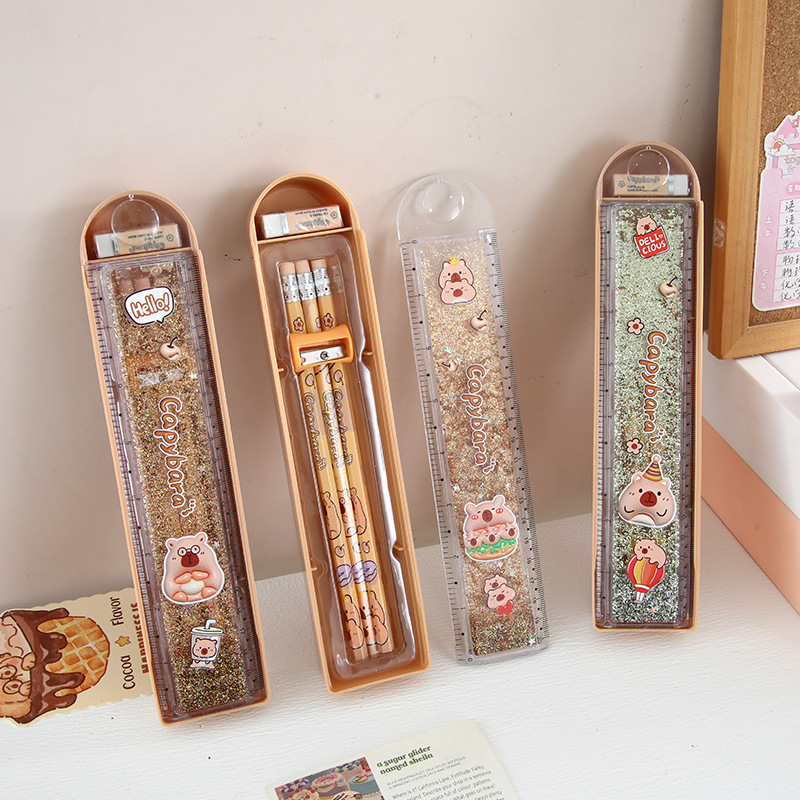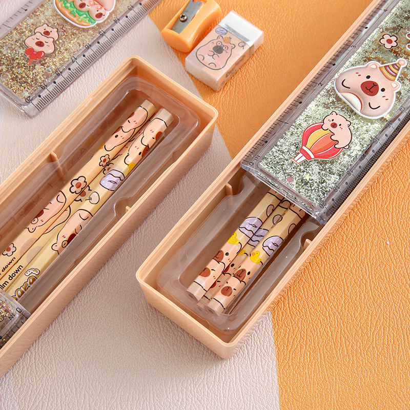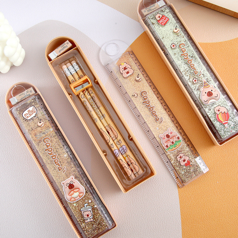 Capibara arena movente juego de lápiz 20cm juego de papelería con cuchillo de lápiz juego de goma de lápiz