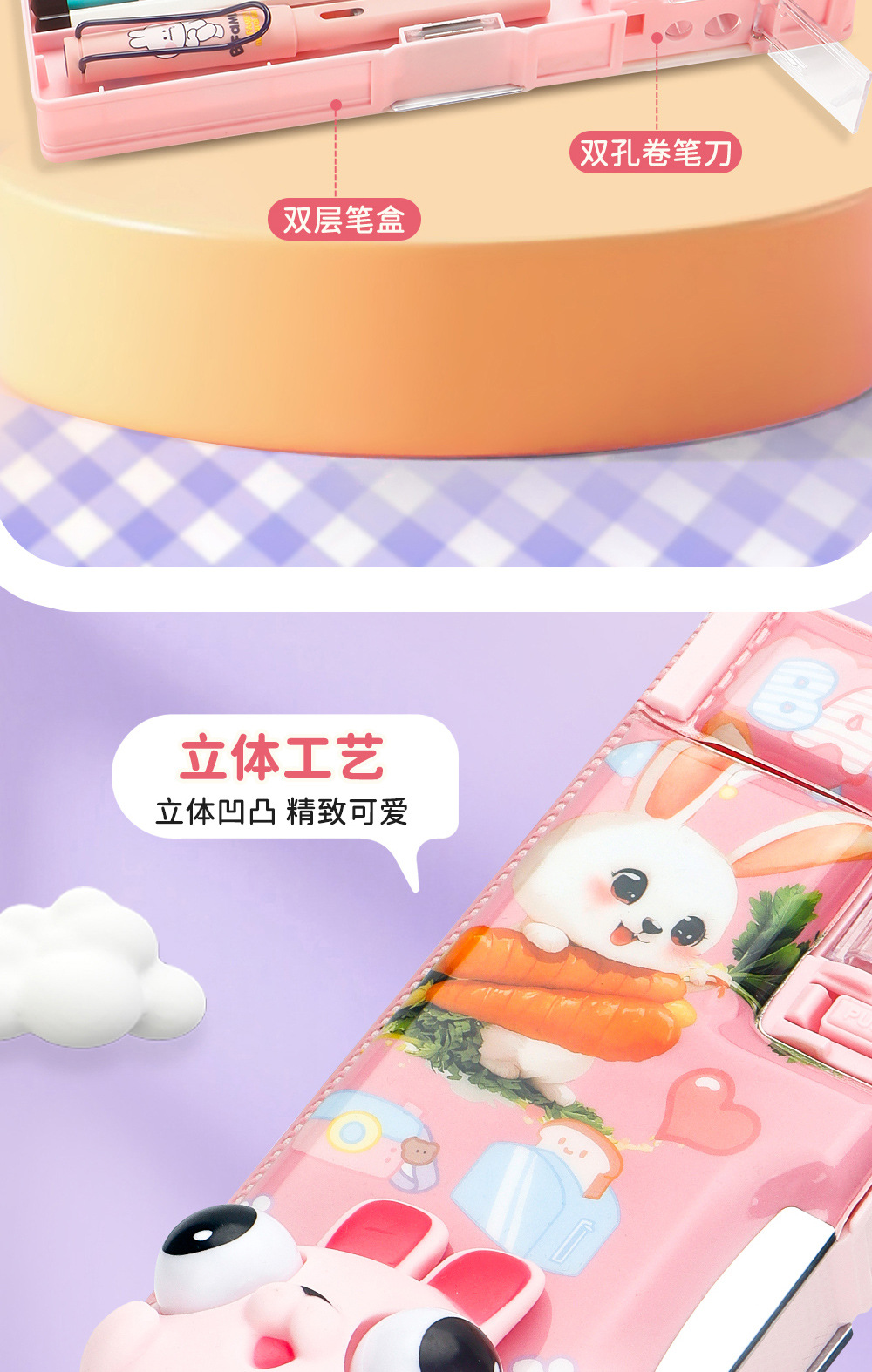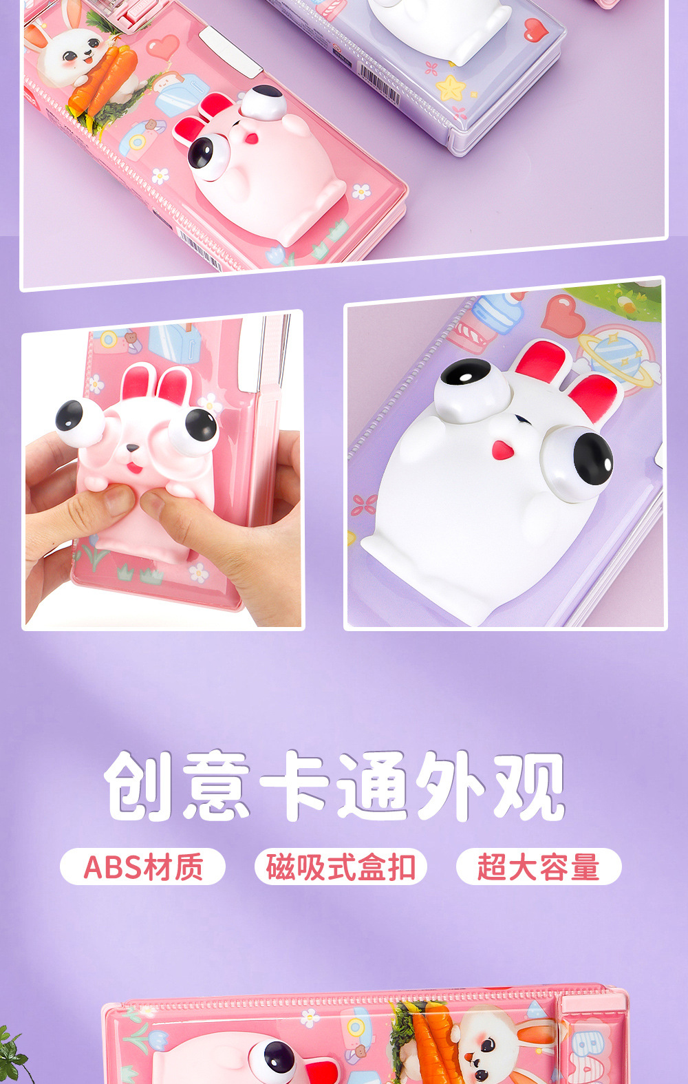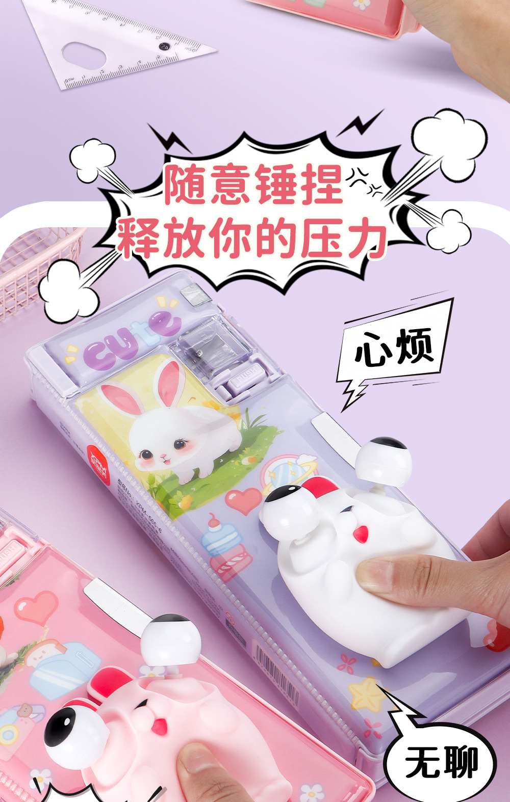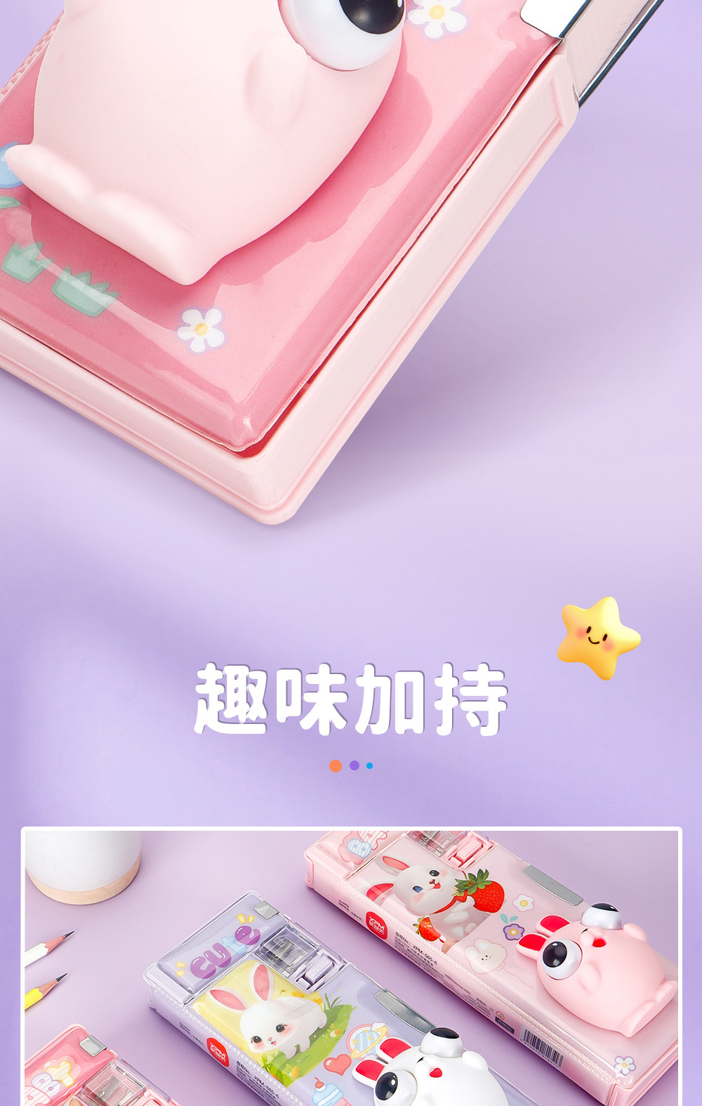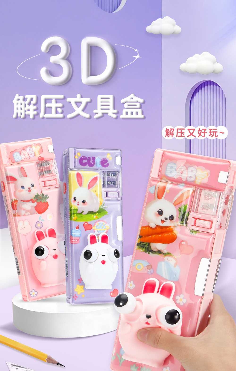 Caja de papelería de descompresión tridimensional 3D de dibujos animados para estudiantes Caja de lápices de plástico multifuncional Juguetes creativos Caja de lápices de papelería