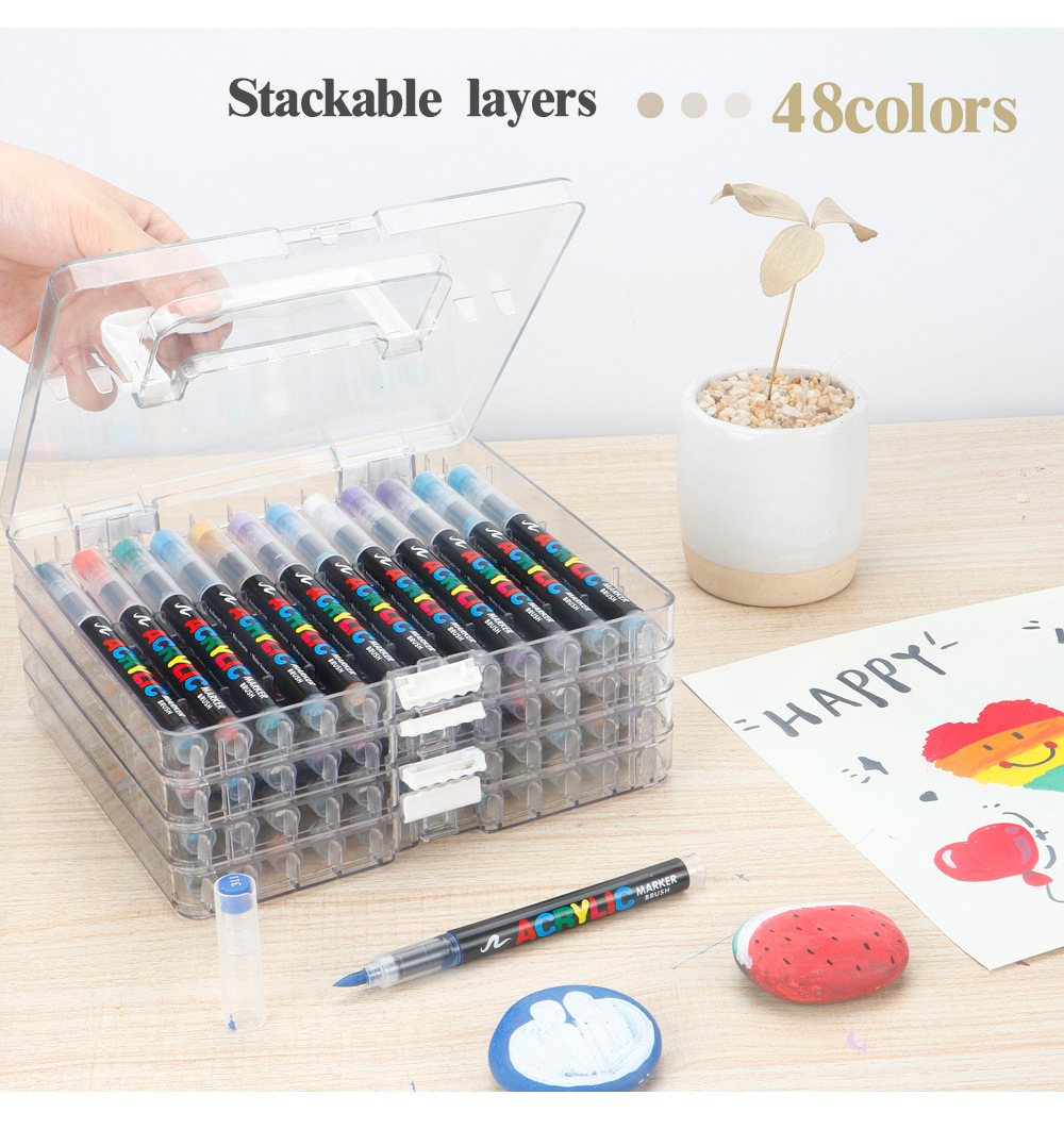 Bolígrafo acrílico de líquido directo, caja de almacenamiento transparente, caja de compartimento, caja de exhibición de rotuladores, lugar