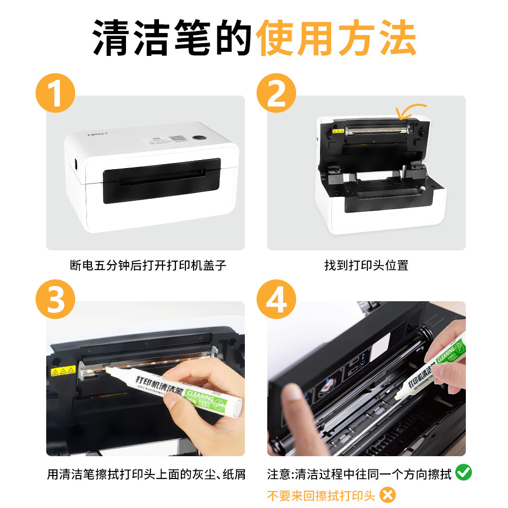 Bolígrafo de limpieza de impresora única cara express Bolígrafo de limpieza de impresora de etiquetas de papel térmico Bolígrafo de limpieza de impresora de códigos de barras