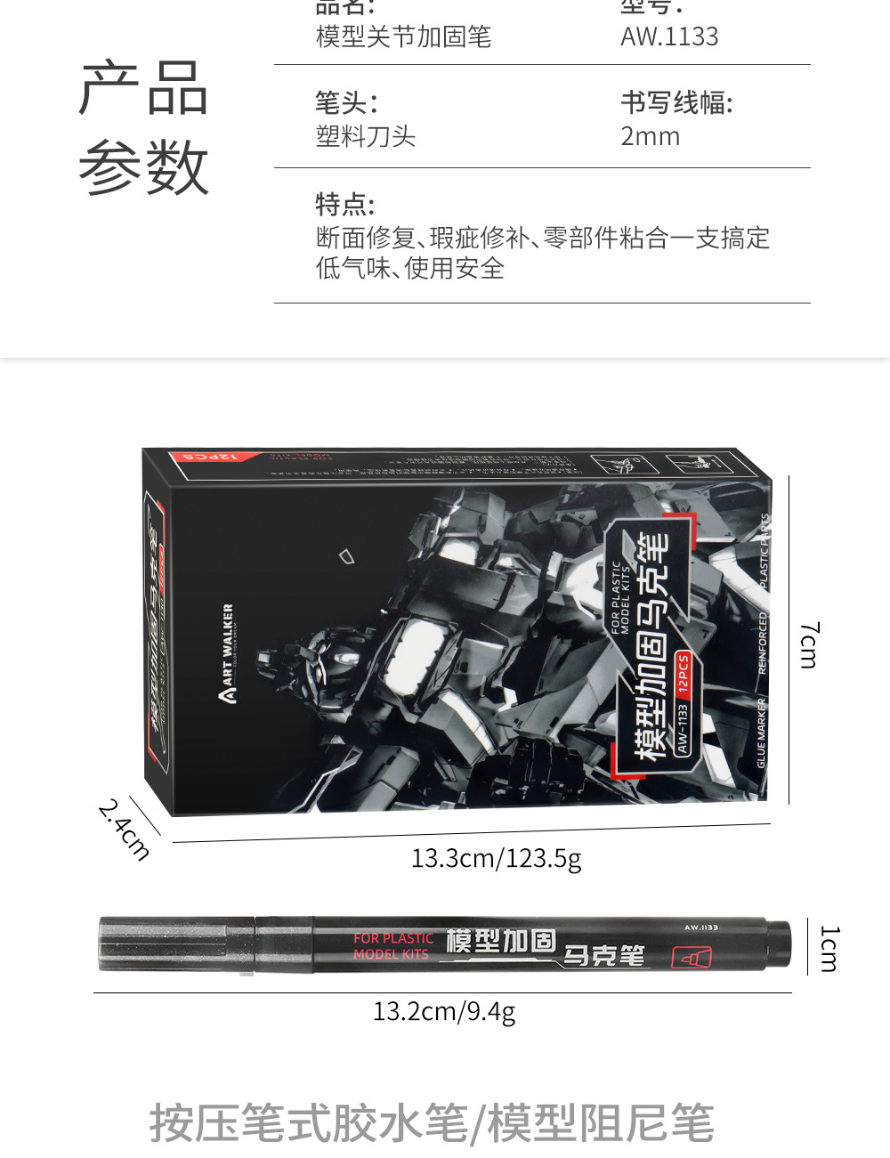 Modelo de pluma de refuerzo de articulación Gundam modelo militar mech combinado ensamblado reparación de pluma de pegamento de alta viscosidad dañada