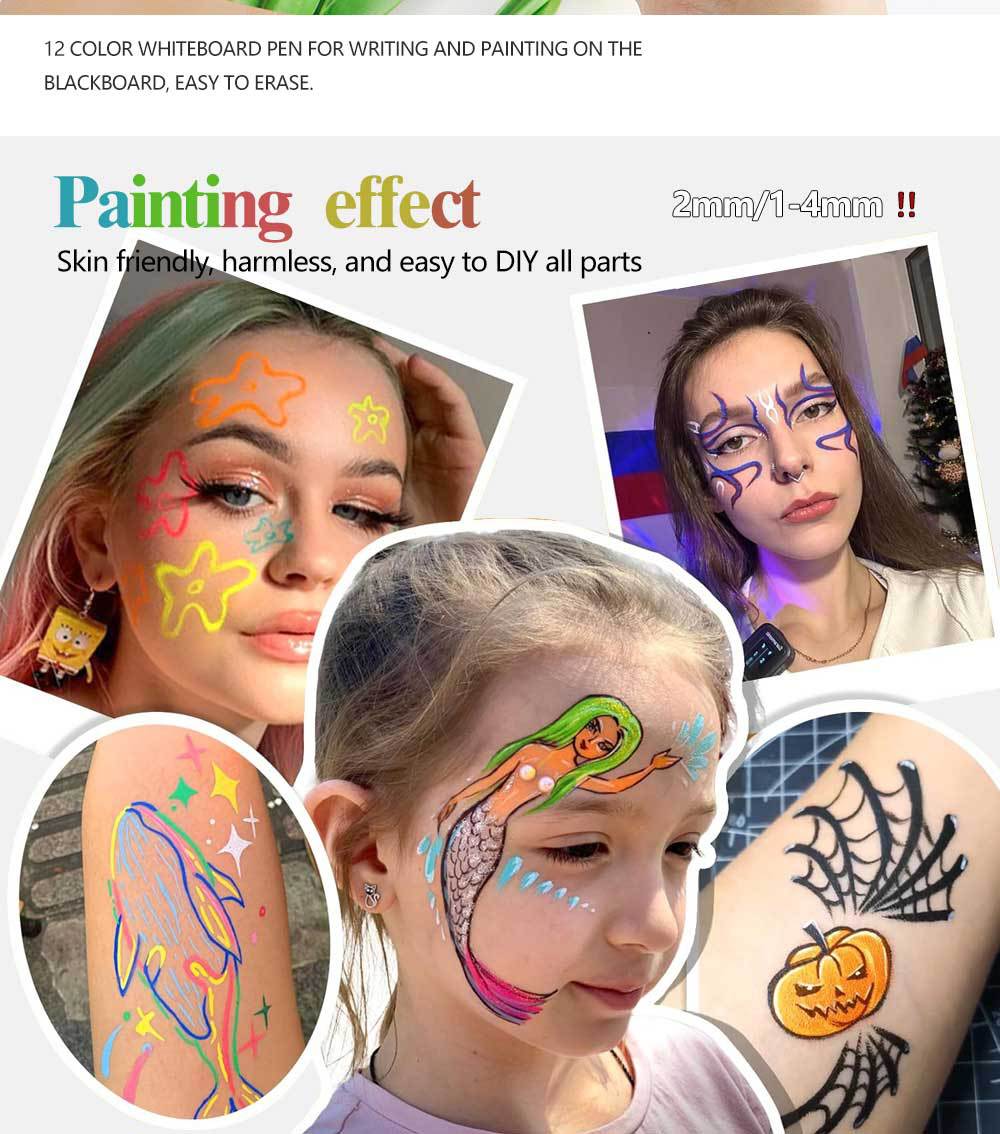 Lápiz de pintura del cuerpo humano lavable con agua para tatuajes festivos escenario facial maquillaje lápiz de acuarela lápiz de acrílico suave y duro