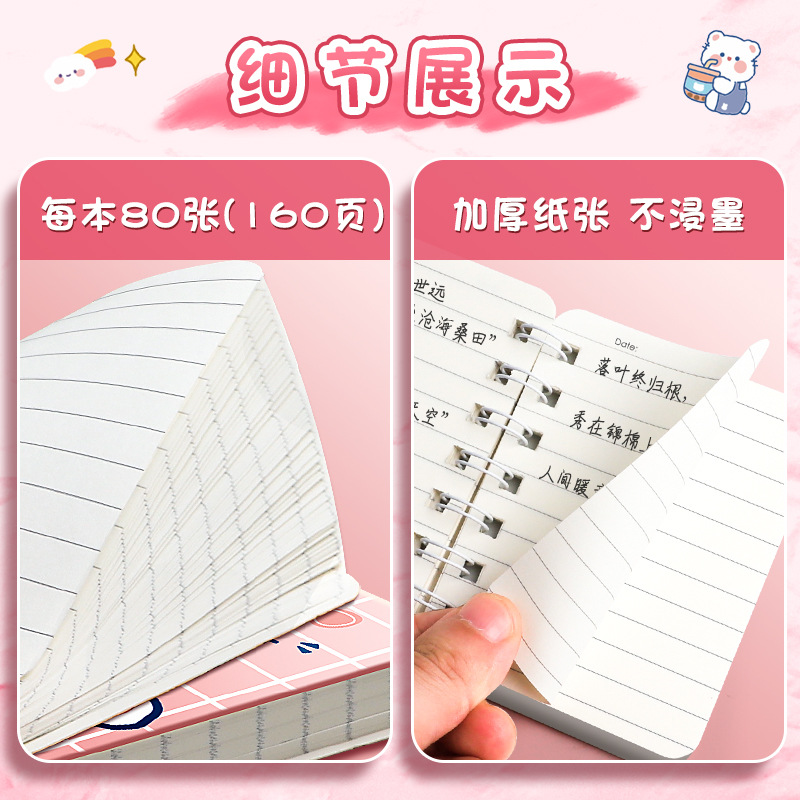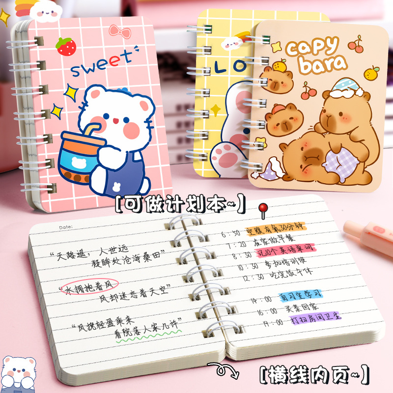 Cuaderno de dibujos animados de bobina pequeña lindo super lindo mini bolsillo portátil cuaderno de notas regalo para estudiantes de escuela primaria