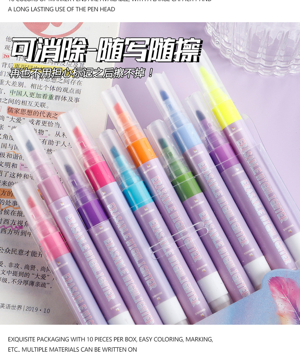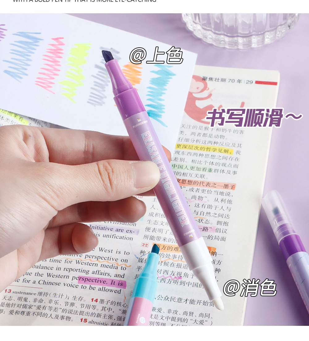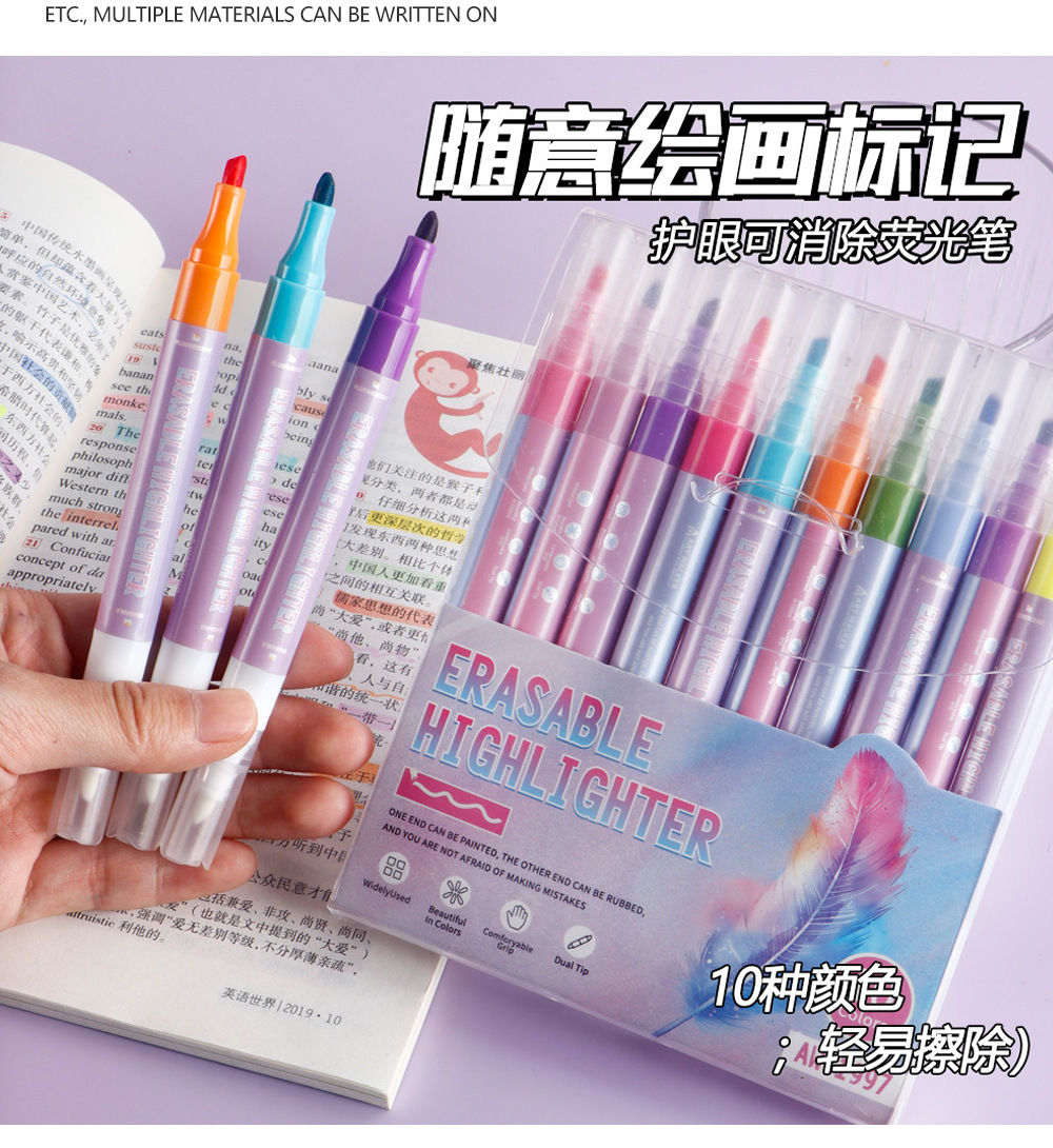 Doble cabeza borrable conjunto de resaltador multicolor eliminación de pinceles de dibujo clave marca de color pinceles al por mayor