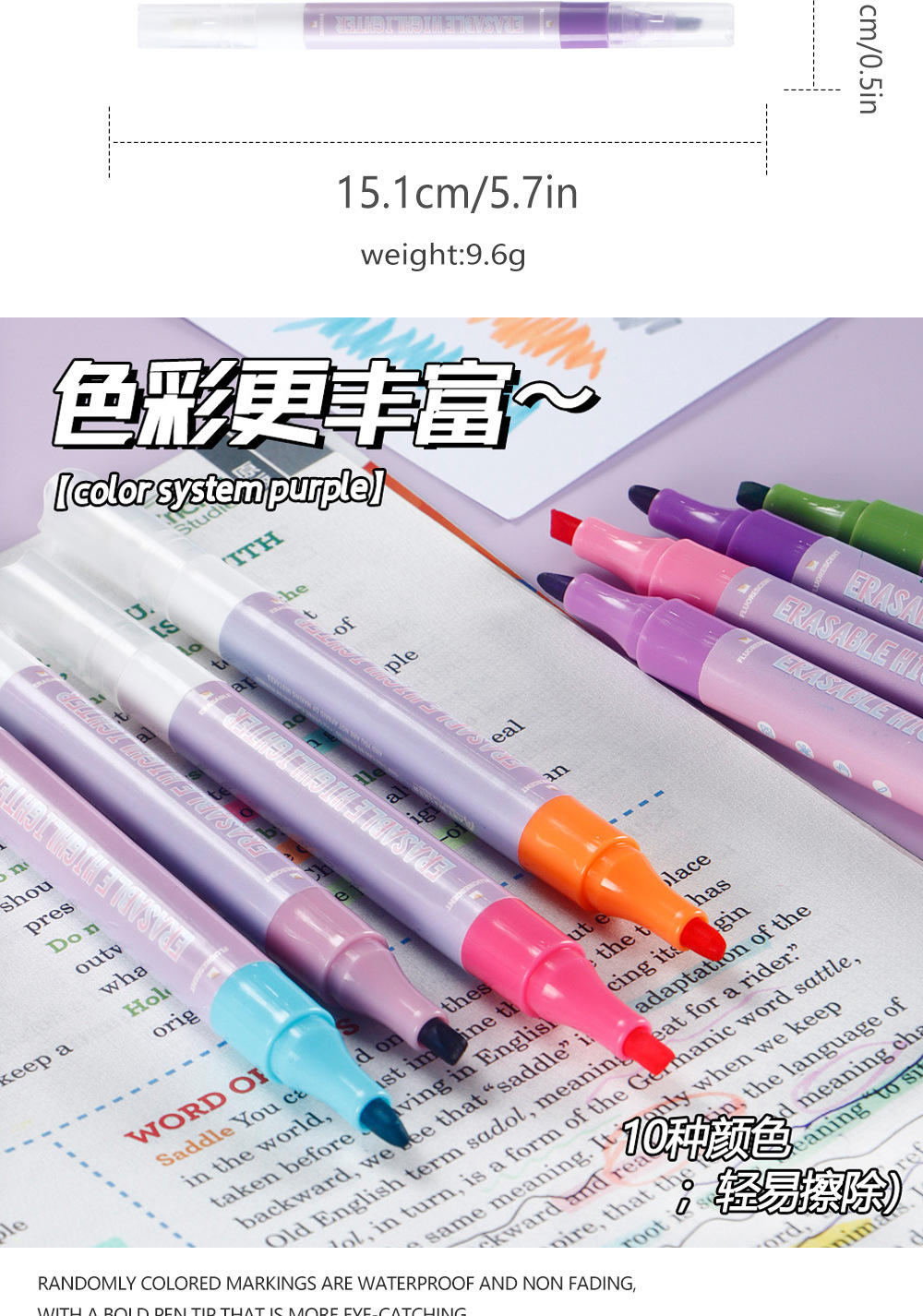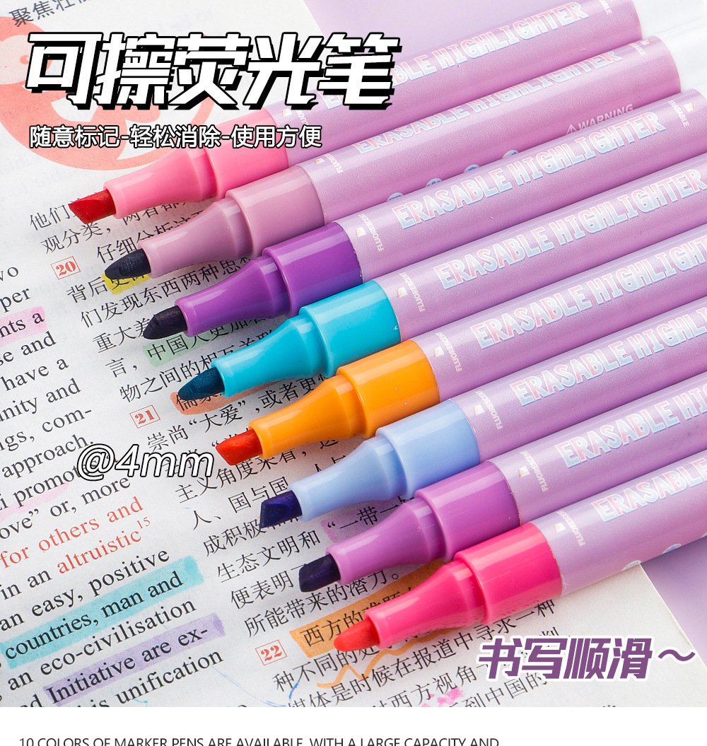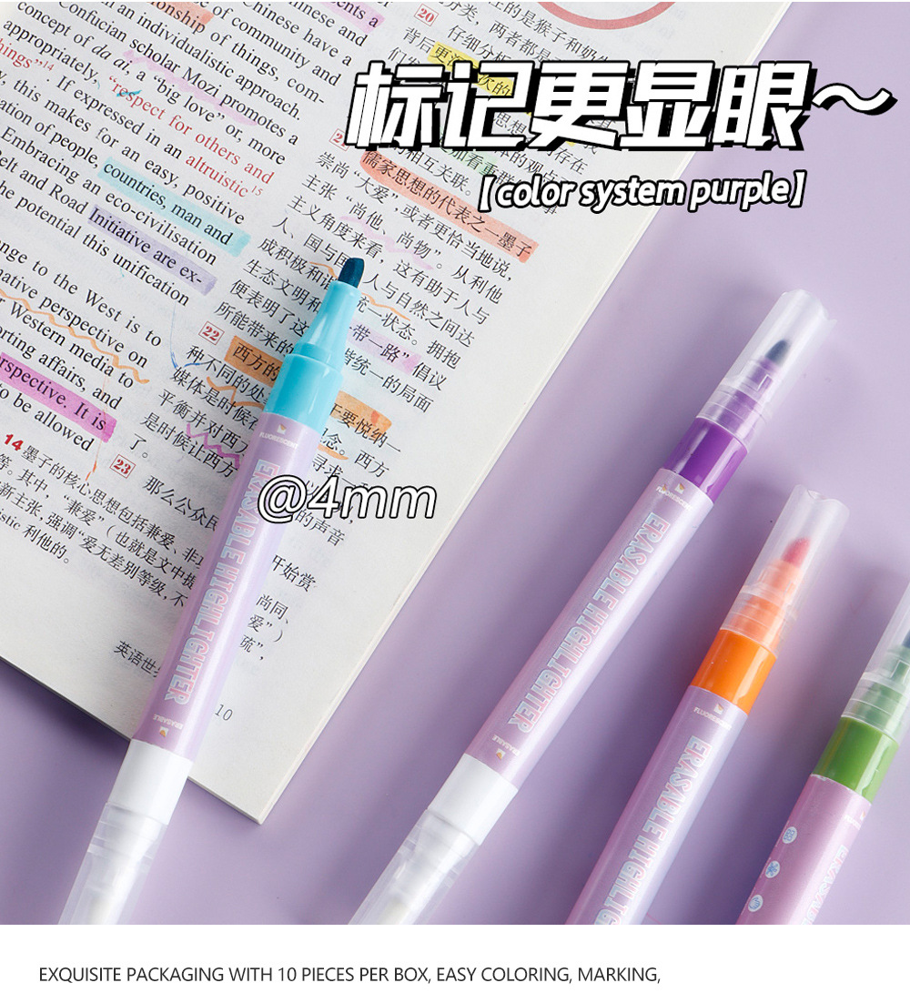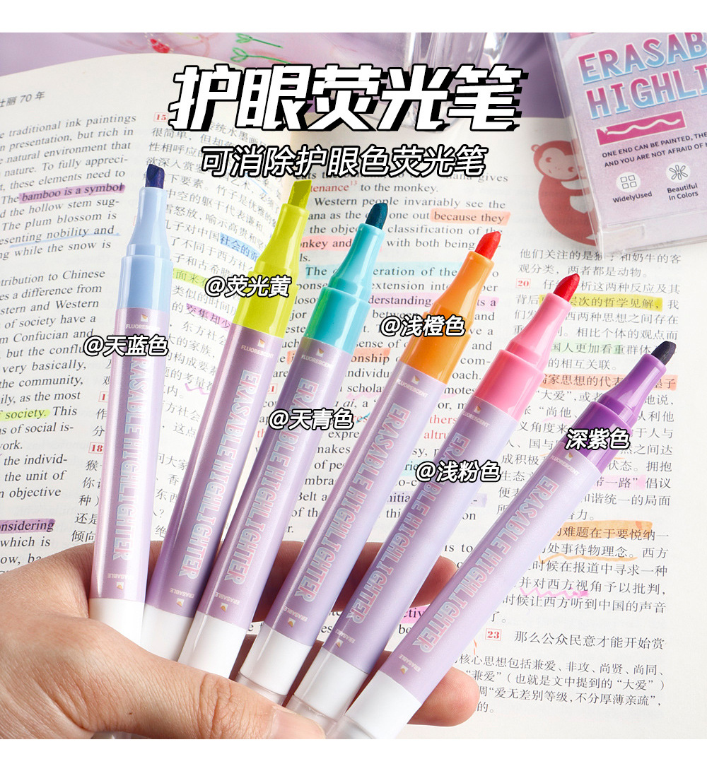 Doble cabeza borrable conjunto de resaltador multicolor eliminación de pinceles de dibujo clave marca de color pinceles al por mayor