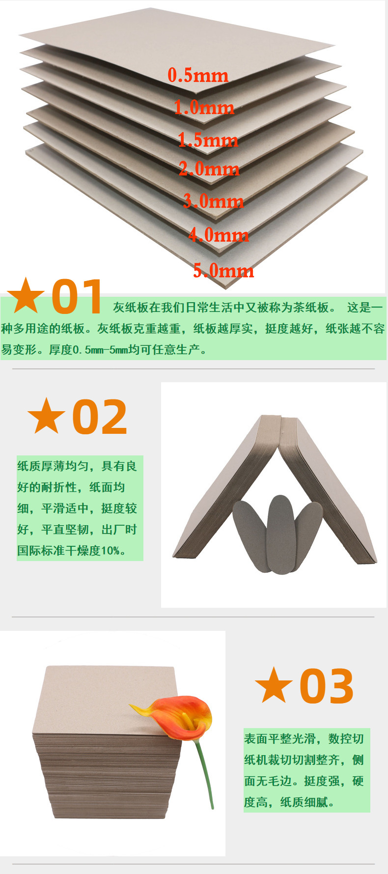 1.5mm950g cartón gris a4 cartón duro carpeta portátil portada dura álbum de fotos personalizado papel de papel gris