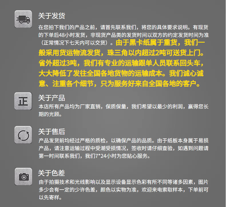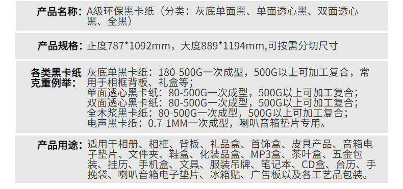 | Peso del gramo | 0,14mm de espesor 120g negro Tarjeta,0,24mm espesor 200g tarjeta negra,0,3mm de espesor 250g tarjeta negra,0,48mm de espesor 400g tarjeta negra,0,54mm espesor 450g tarjeta negra,0,6mm espesor 500g tarjeta negra |