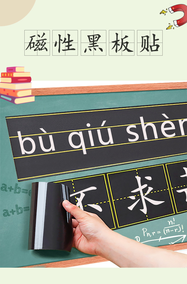 Etiqueta de pizarra magnética suave pinyin Tian carácter rejilla cuatro líneas tres rejillas Inglés Rejilla de caracteres de arroz etiqueta magnética imán magnético rejilla magnética