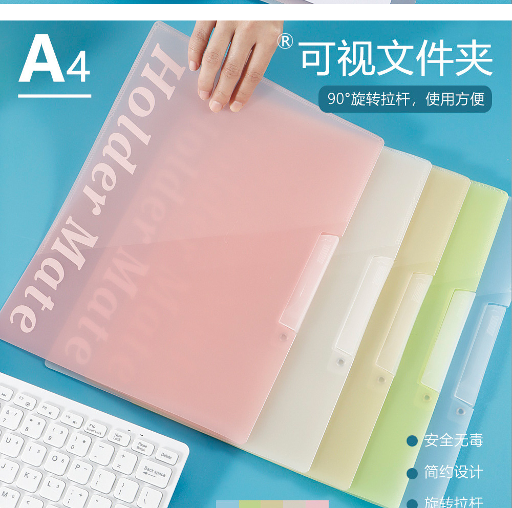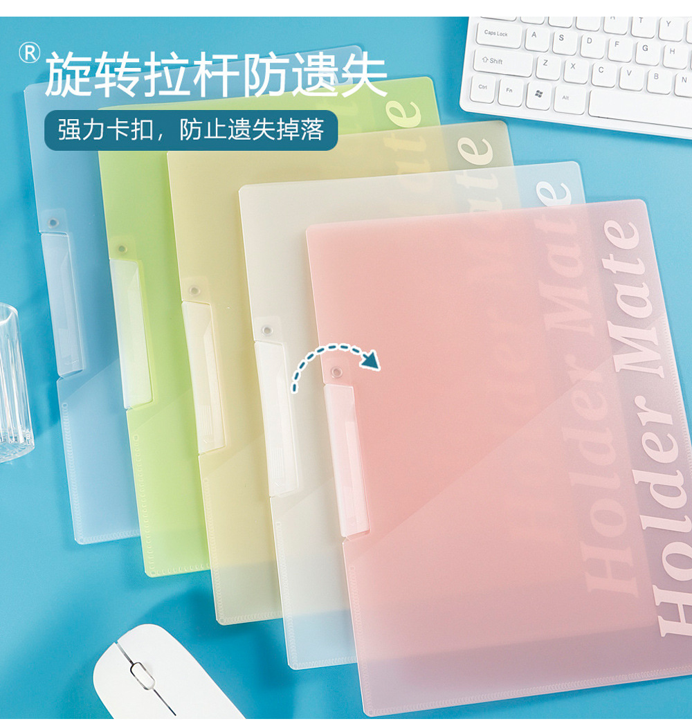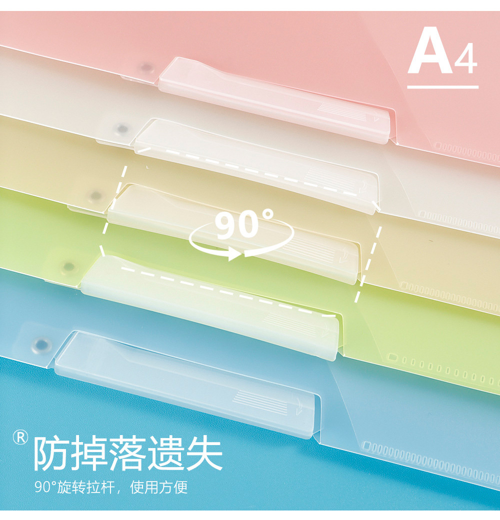 Carpeta de varilla de tracción giratoria a4 Clip de papel Clip de varilla de tracción Clip de acabado Clip de inserción transparente