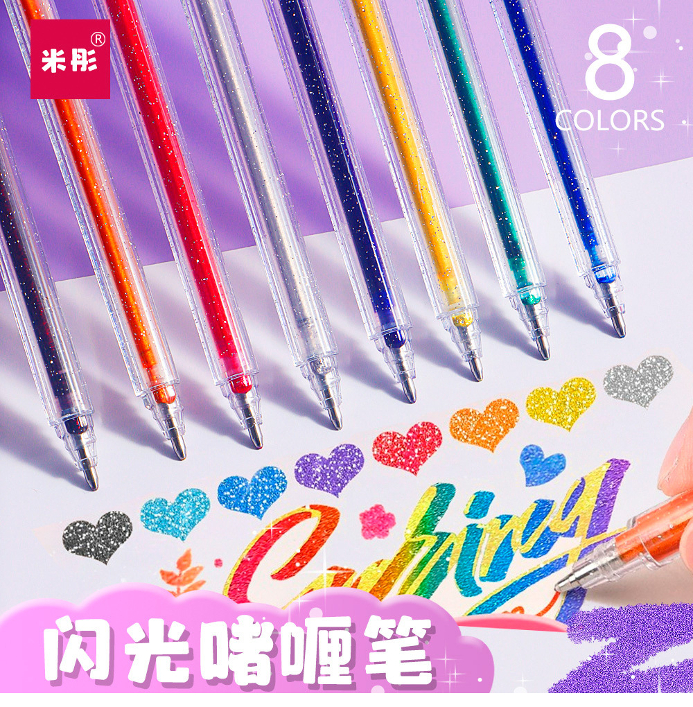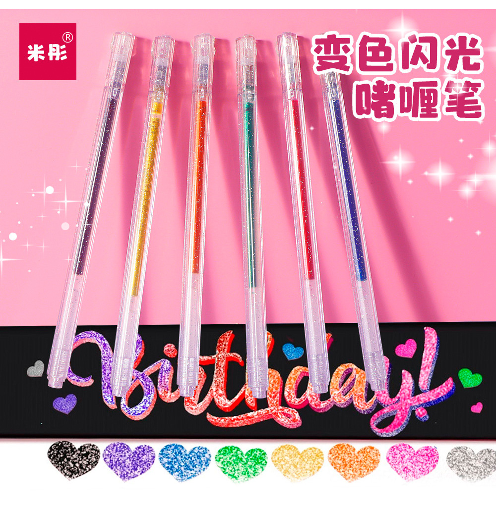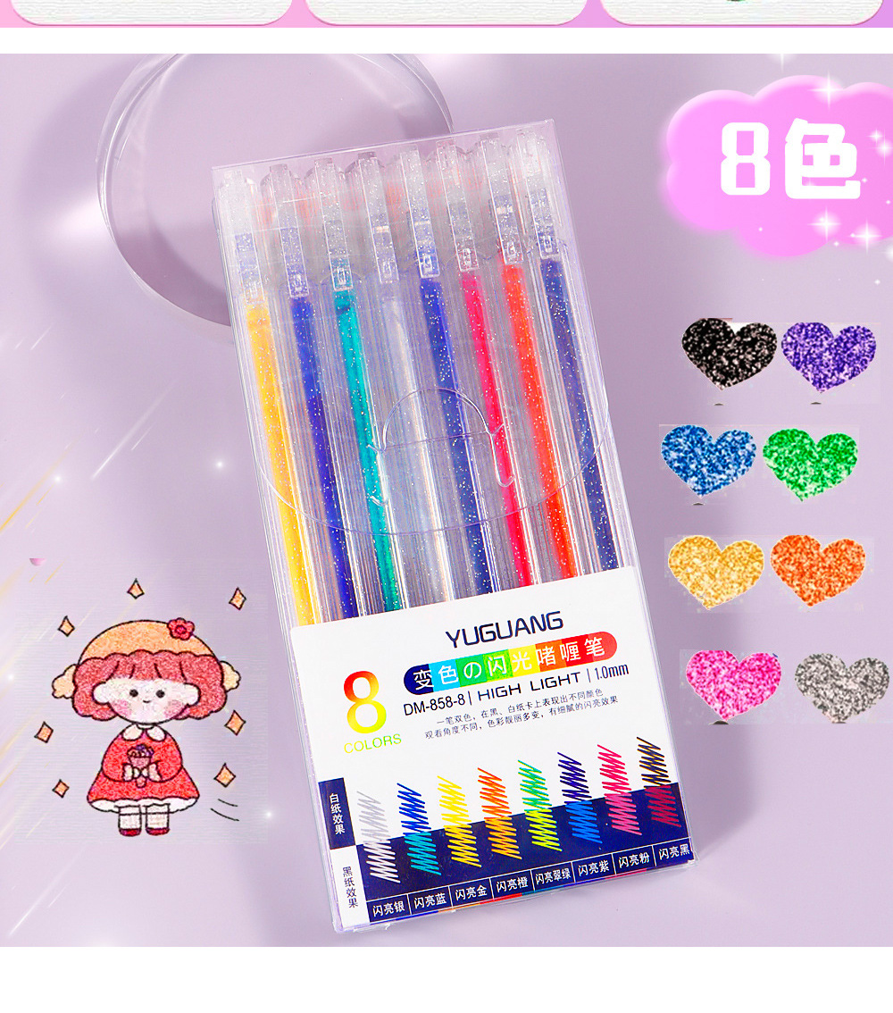 Cambio de color flash gel lápiz 8 color ultra flash lápiz neutro lápiz de resaltador estudiantes niños lápiz de color cuentas de mano lápiz de resaltador