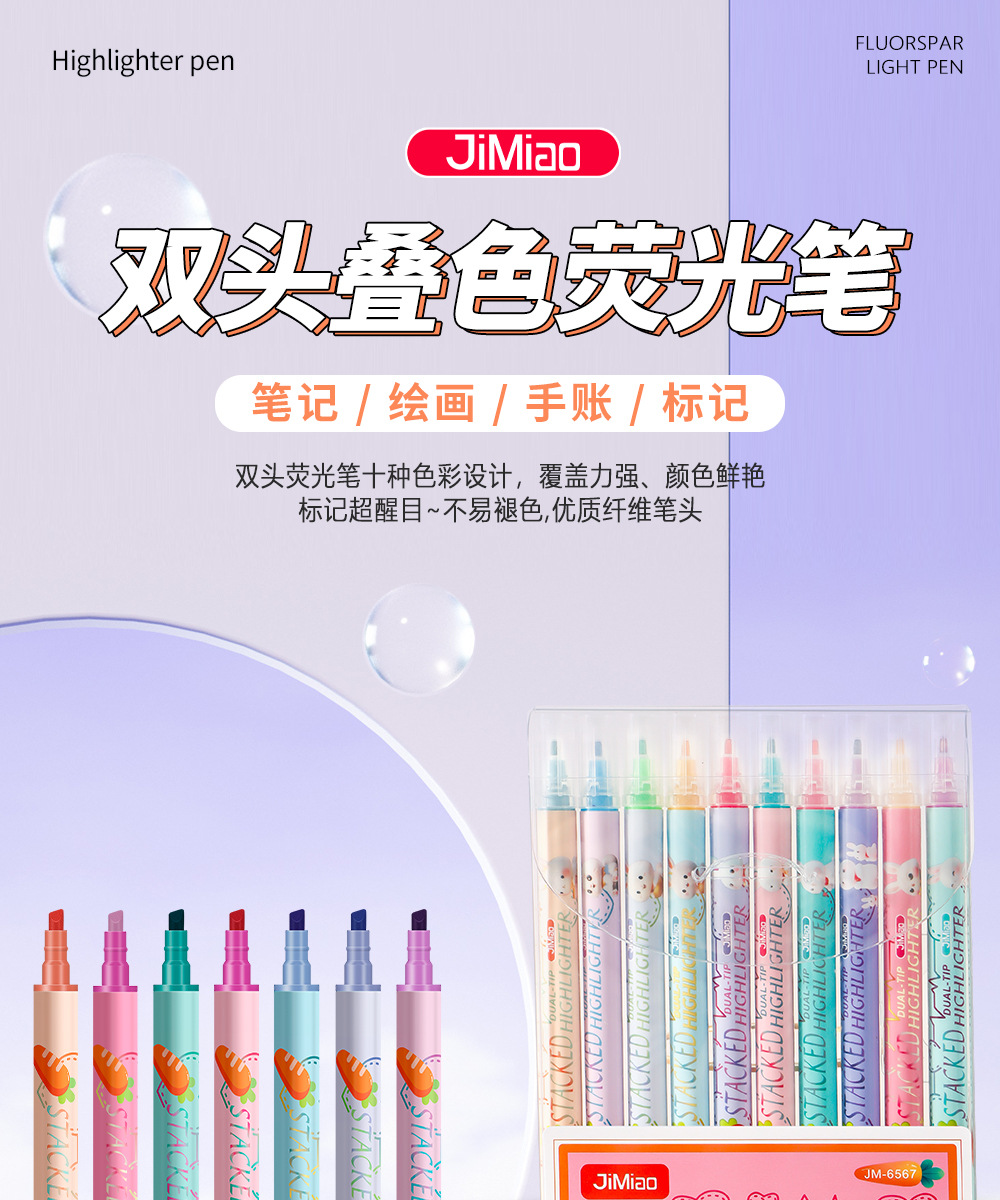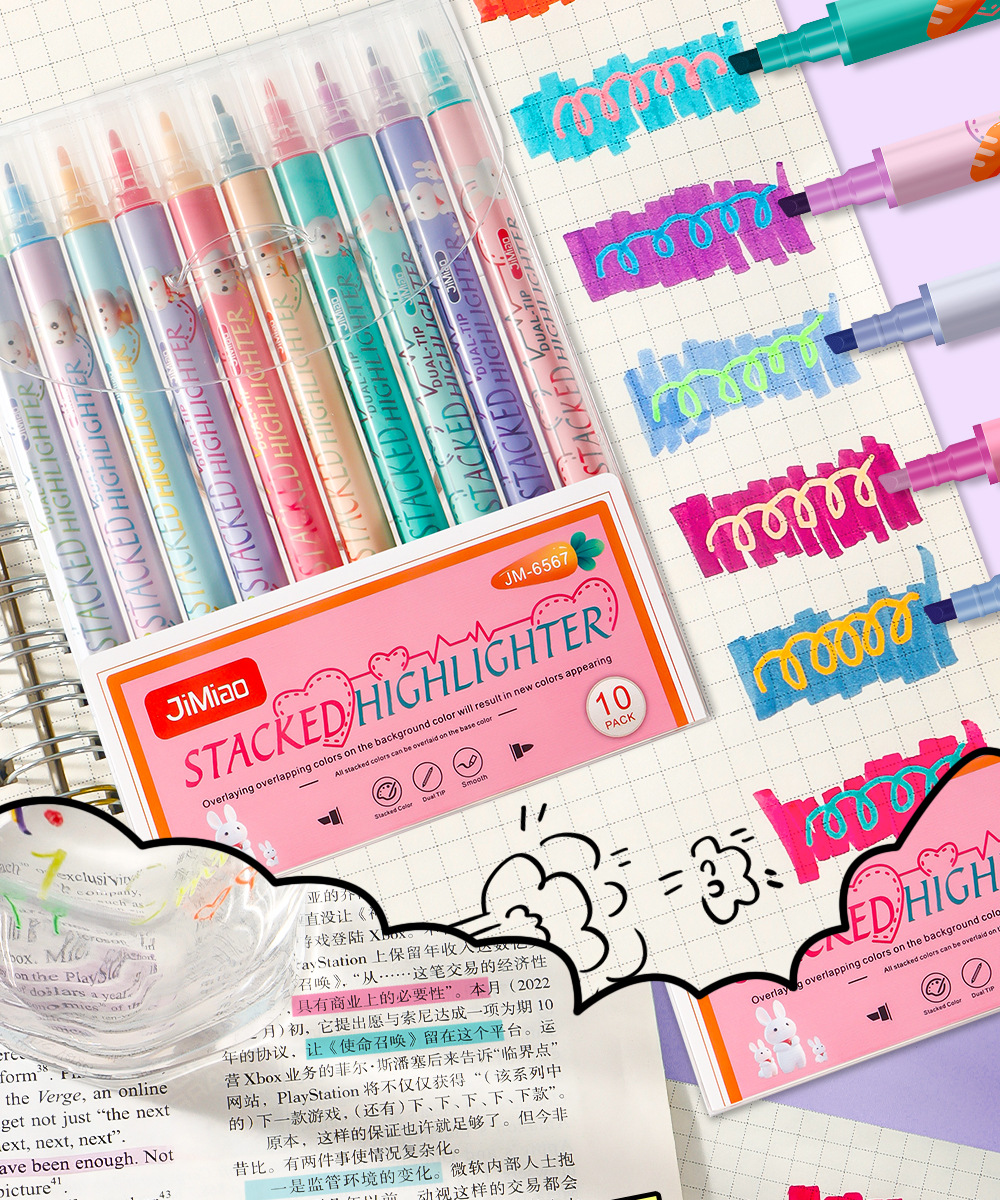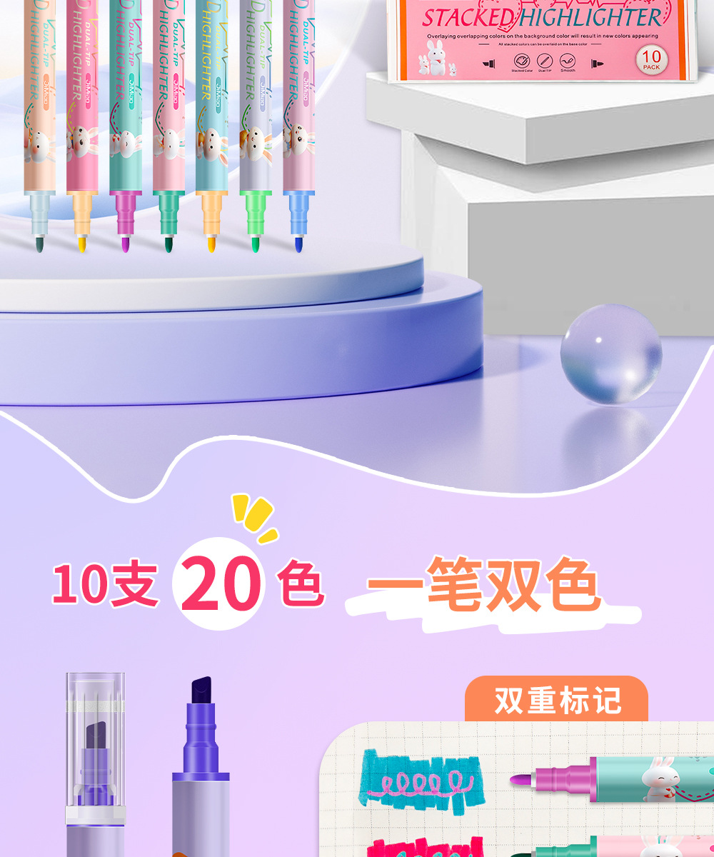 Nuevo marcador de resaltador de color superpuesto para estudiantes marcador de resaltador de color macaron doble cabeza mágica de cambio de color al por mayor