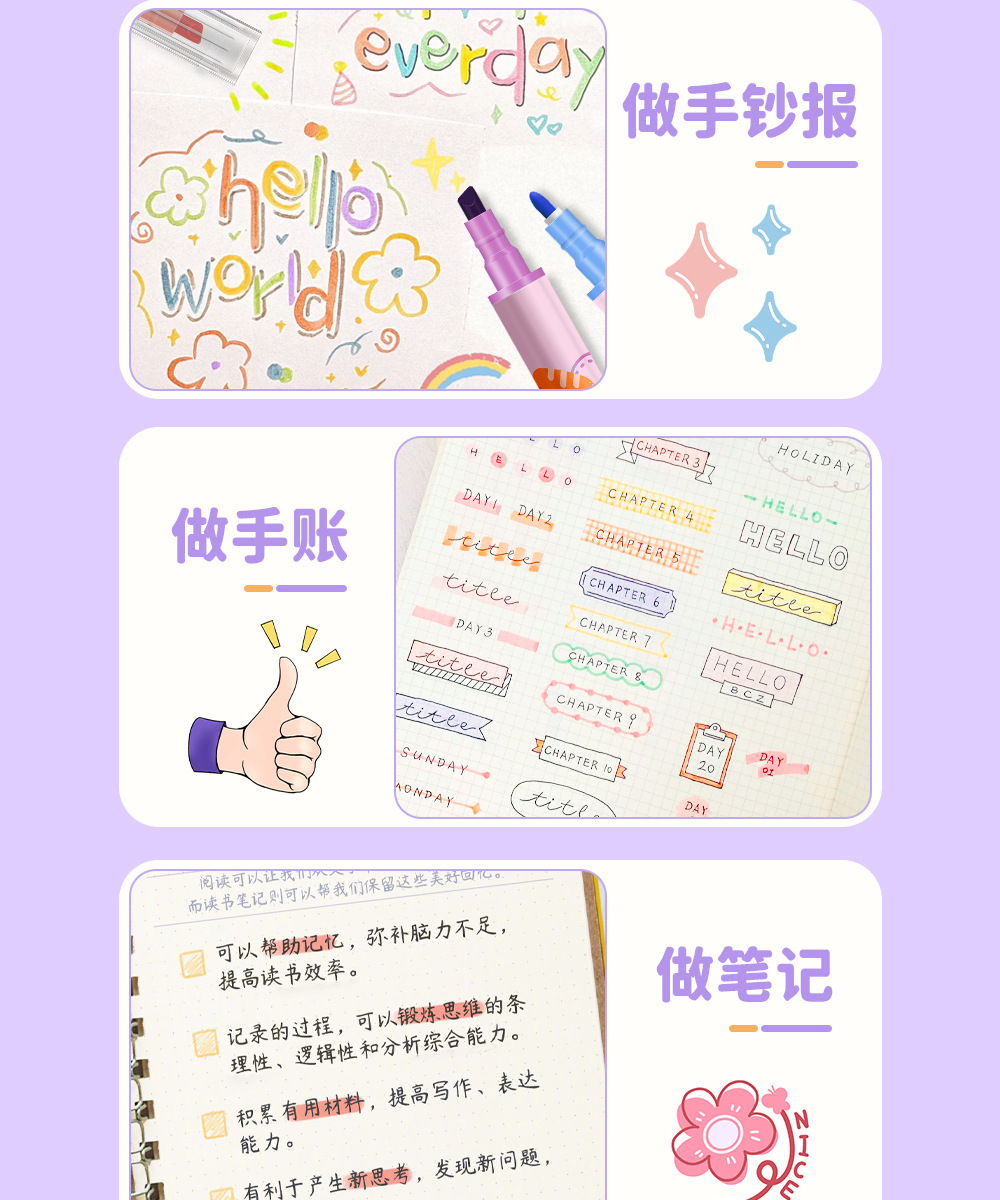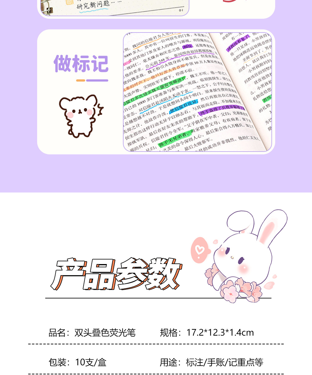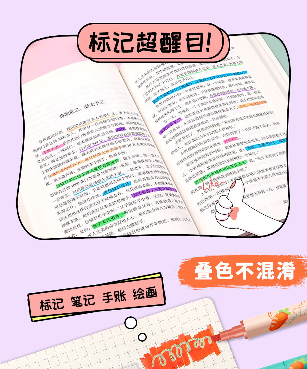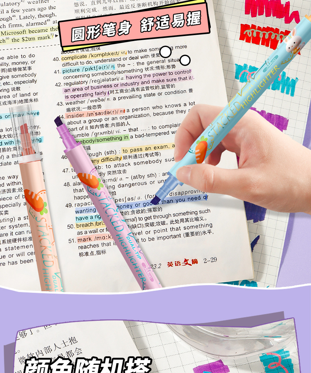Nuevo marcador de resaltador de color superpuesto para estudiantes marcador de resaltador de color macaron doble cabeza mágica de cambio de color al por mayor