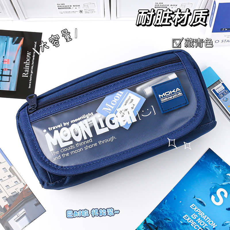 Caja de lápiz de gran capacidad de luz de luna tibetana, buena calidad, bolsas de lápiz sucias, suministros para estudiantes de primaria, caja de lápiz simple de alto valor facial