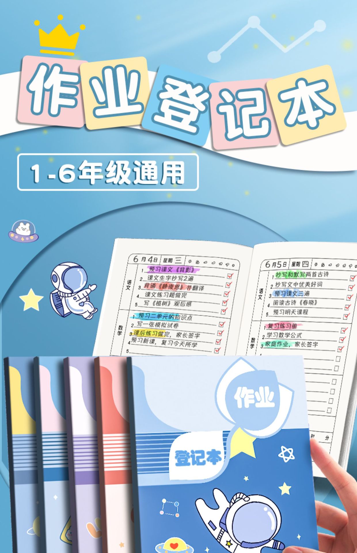 | Colores | Astronauta 1 libro/60 páginas cada uno (estándar escolar A5) |
