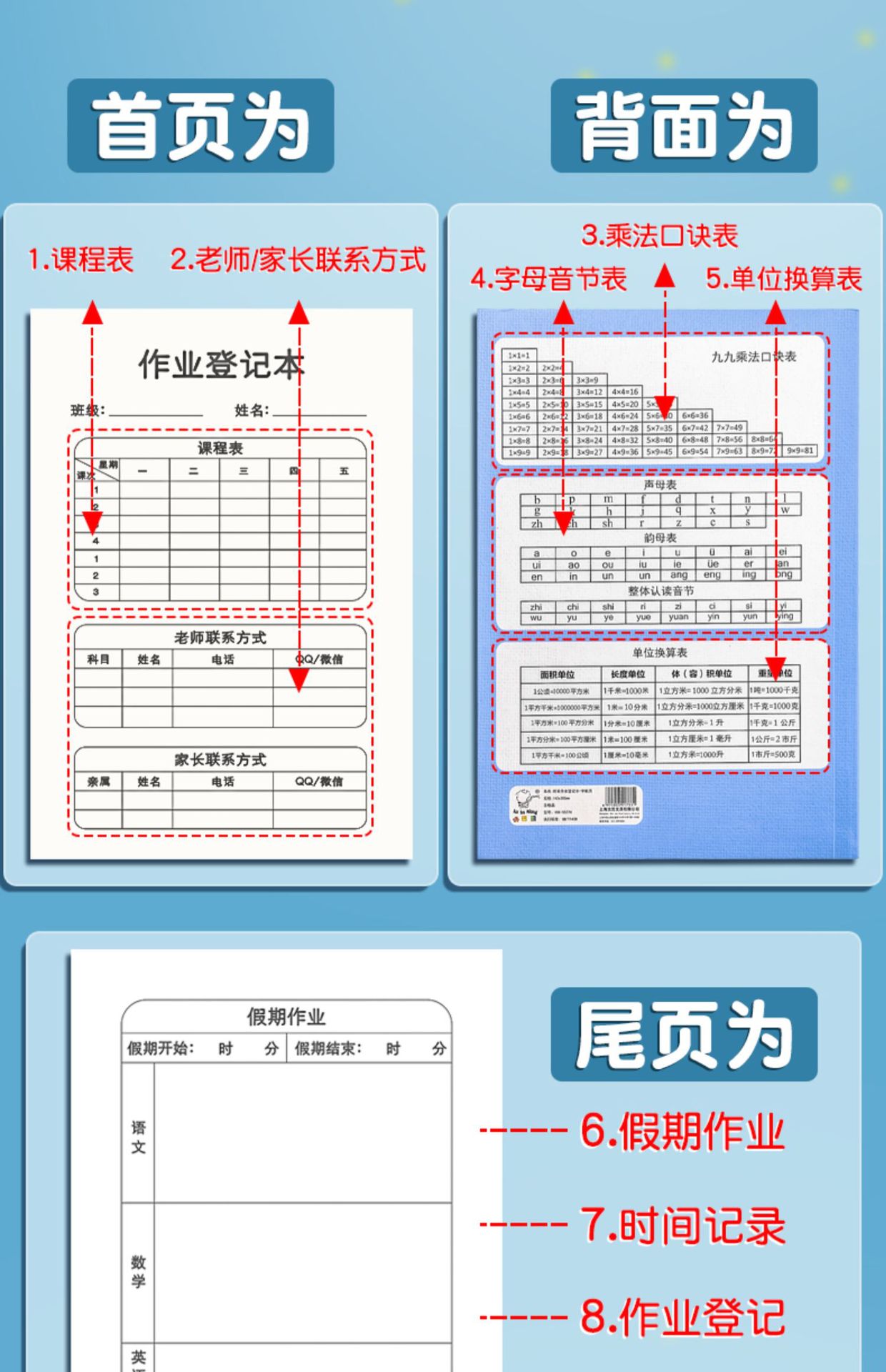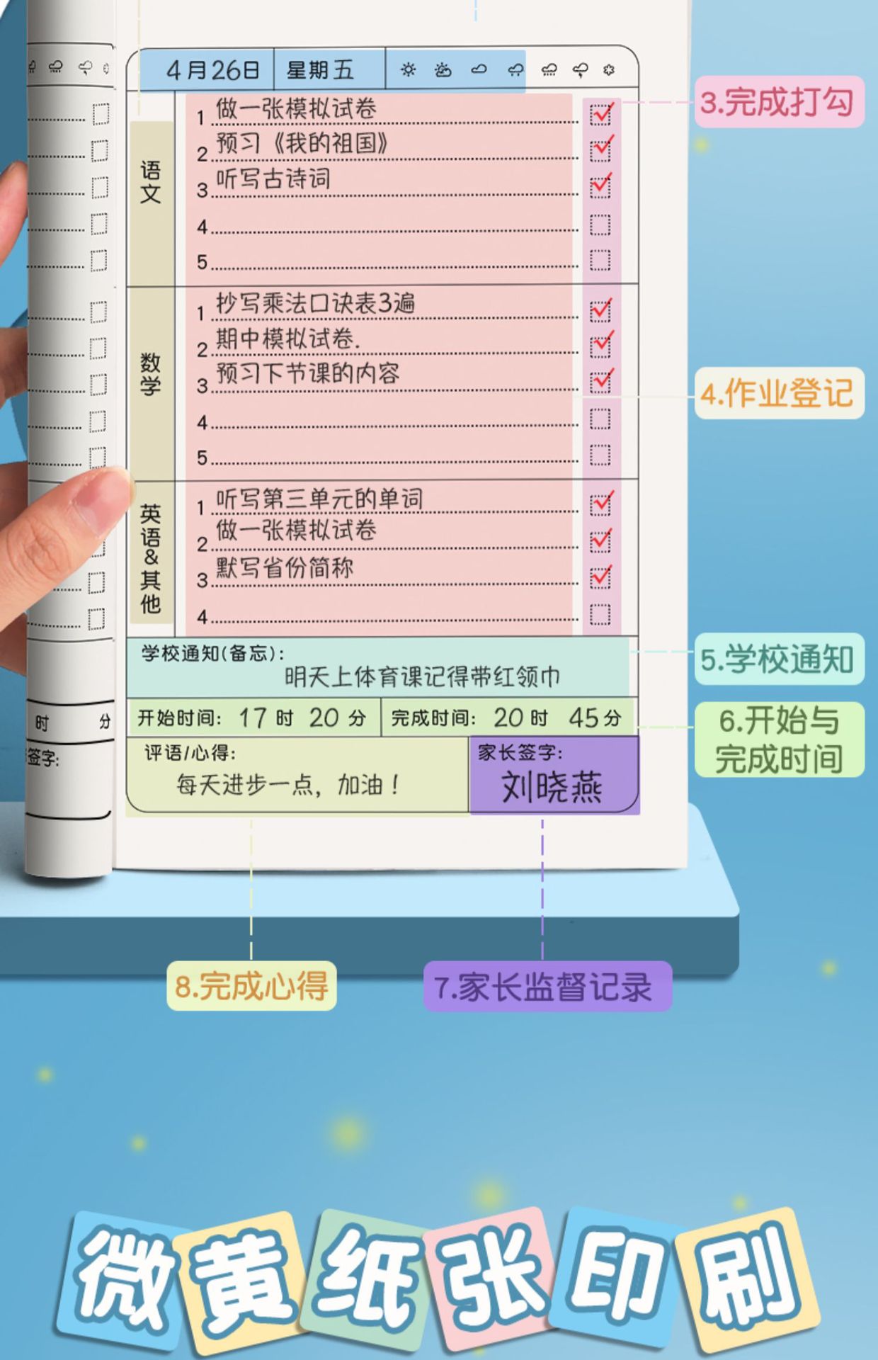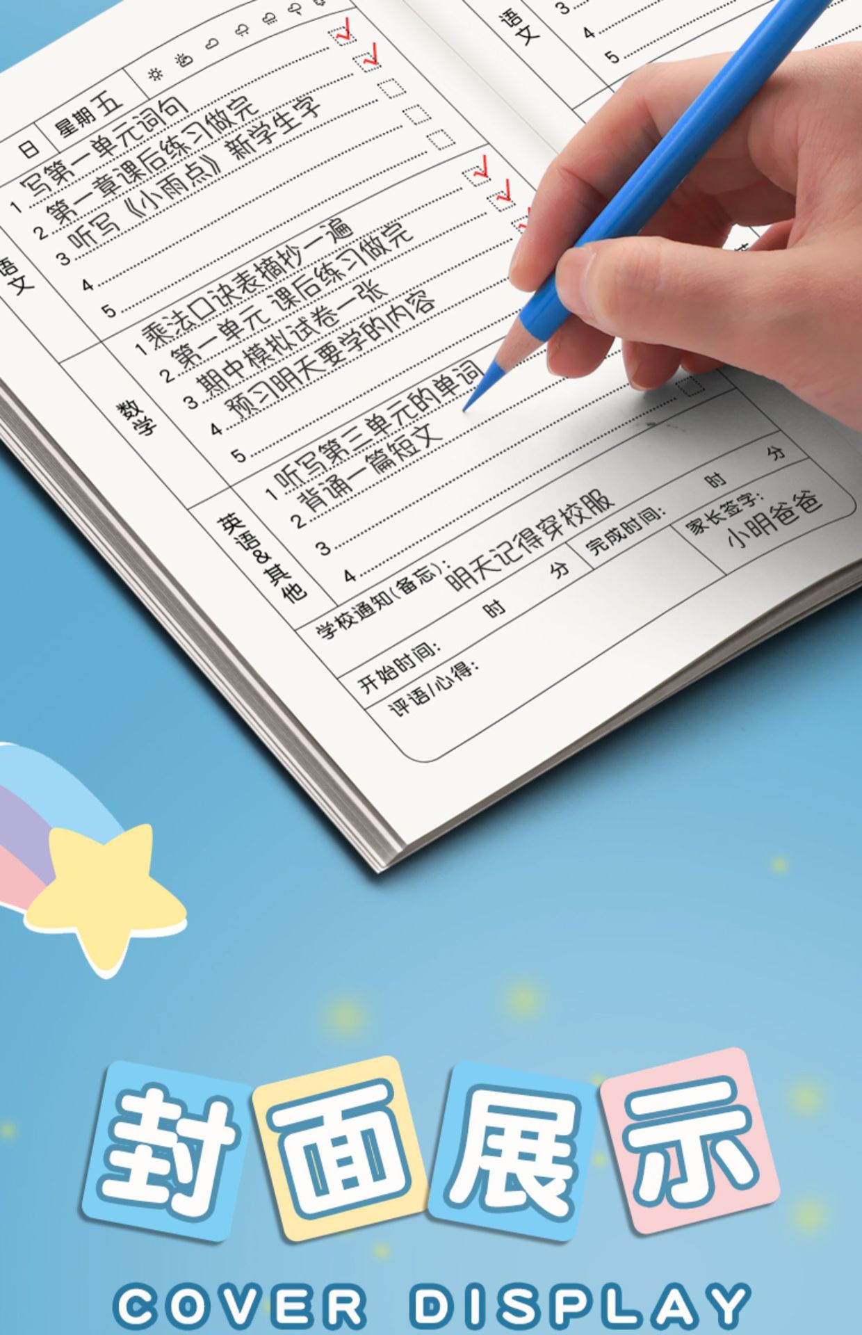 Libro de registro de la tarea Copia de clase libro de ejercicios Linda copia del hogar libro de contacto de la escuela del hogar