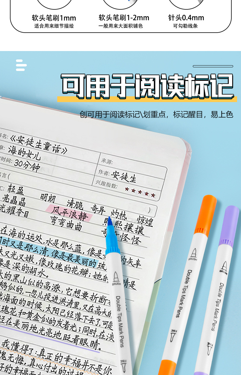 Doble cabeza de pincel de línea de gancho para estudiantes impermeable rápido secado acuarela pincel conjunto de pincel de pintura especial de arte pincel de lectura al por mayor