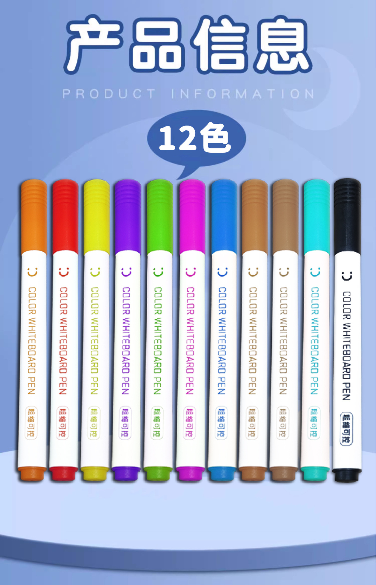 Bolígrafo de pizarra de color al por mayor fácil de borrar marcador acuoso para niños graffiti 12 colores marcador de oficina de reunión