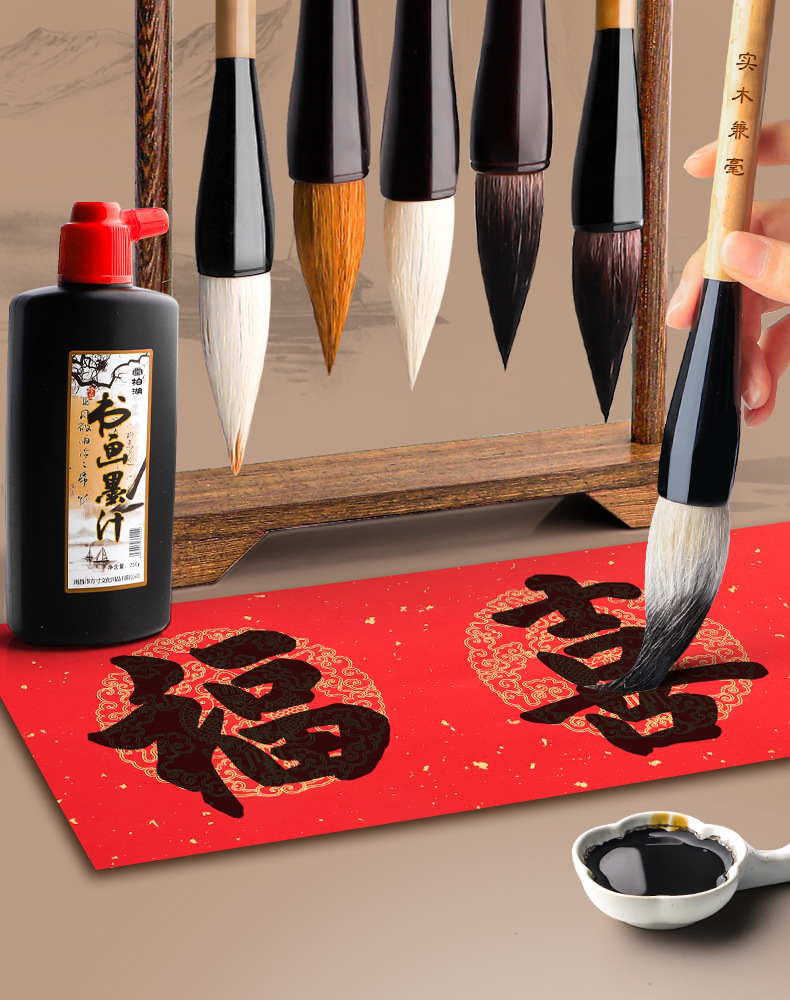 Cepillo de escritura grande cubo pluma de pelo comadreja pelo mezclado copla escritura copla especial extra grande de la primavera cuplete de elevación cubo grueso gran guión regular principiante conjunto