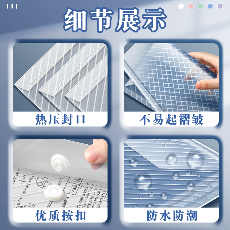 A4 bolsa de archivo bolsa de almacenamiento de papel de papel de prueba impermeable de gran capacidad engrosada de plástico transparente archivo de escuela primaria