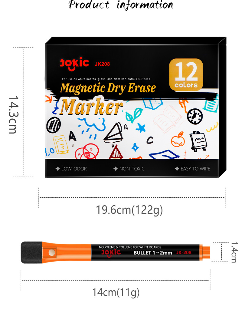 | Color de la pluma | Juego de bolígrafos de pizarra magnética de 12 colores |