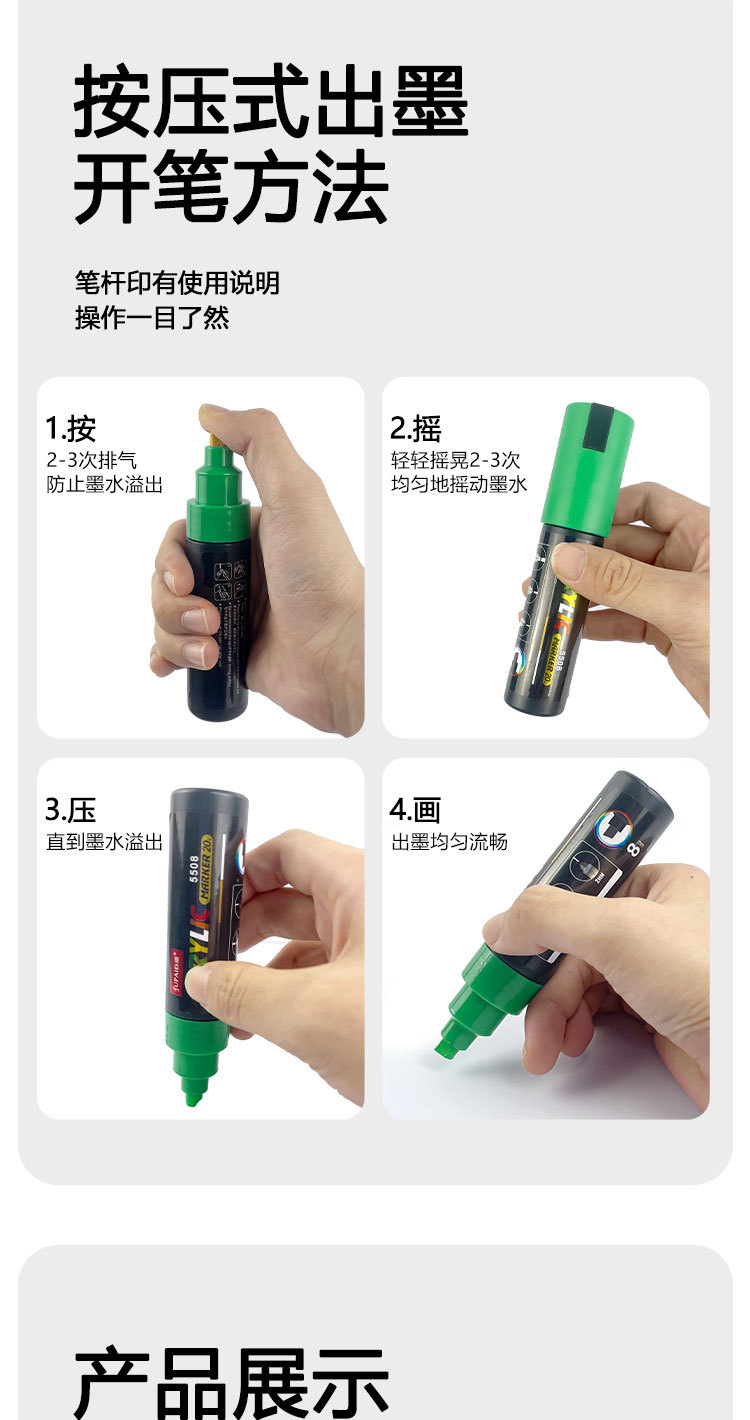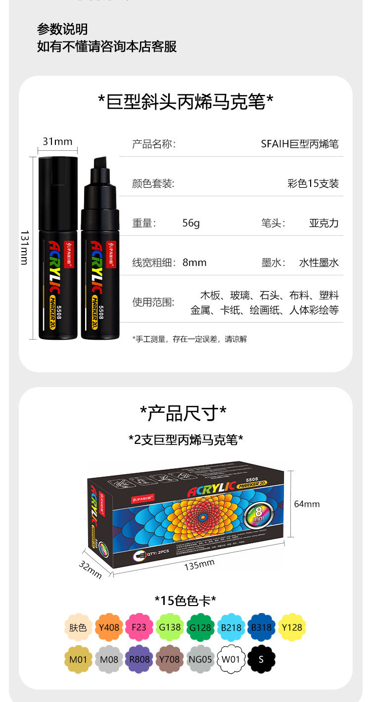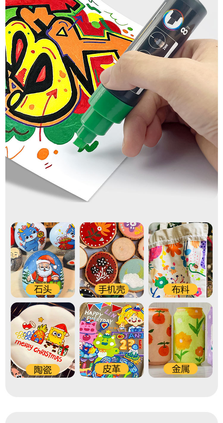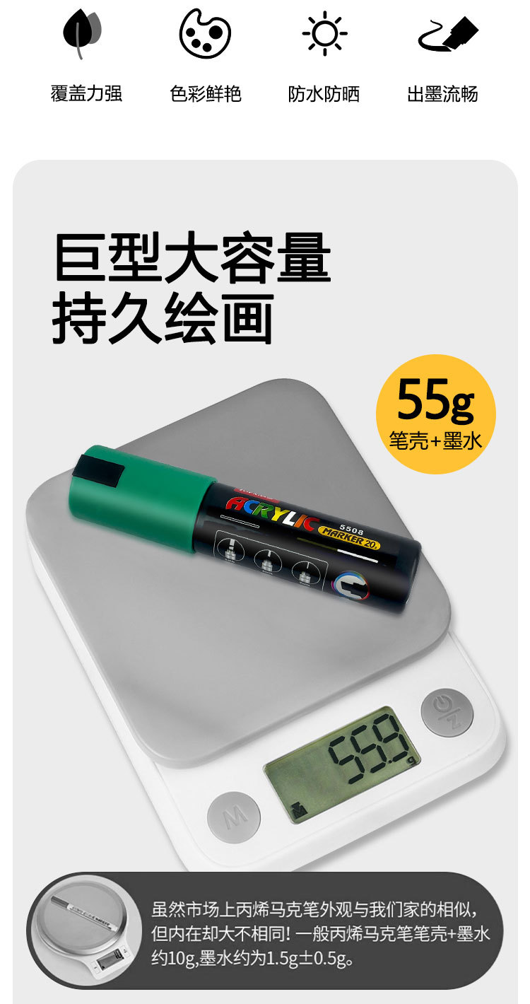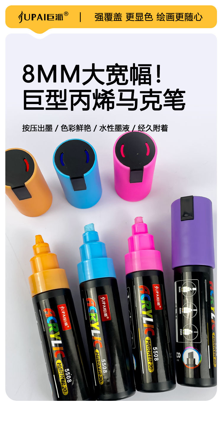 Marcador acrílico de gran capacidad de 65g, bolígrafo de graffiti impermeable de secado rápido, marcador gigante ancho de 8mm, material de pintura al por mayor