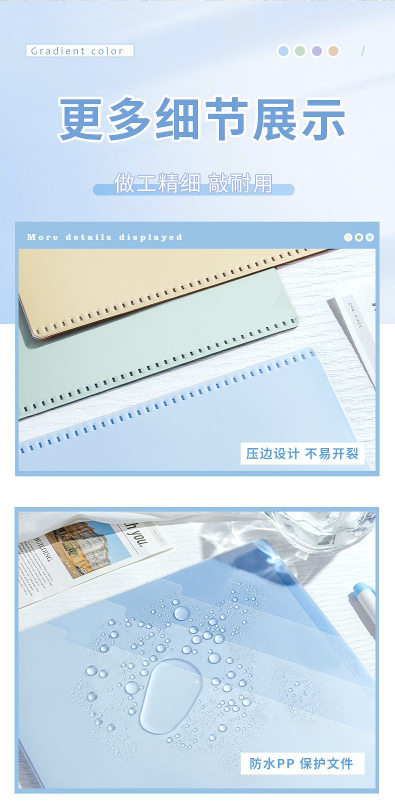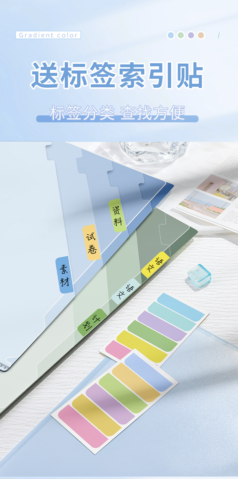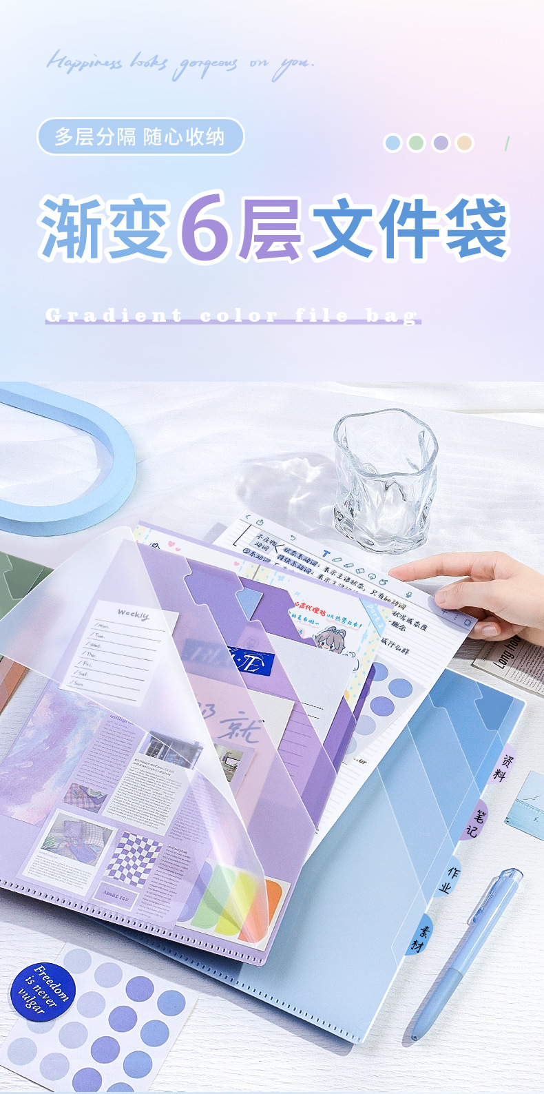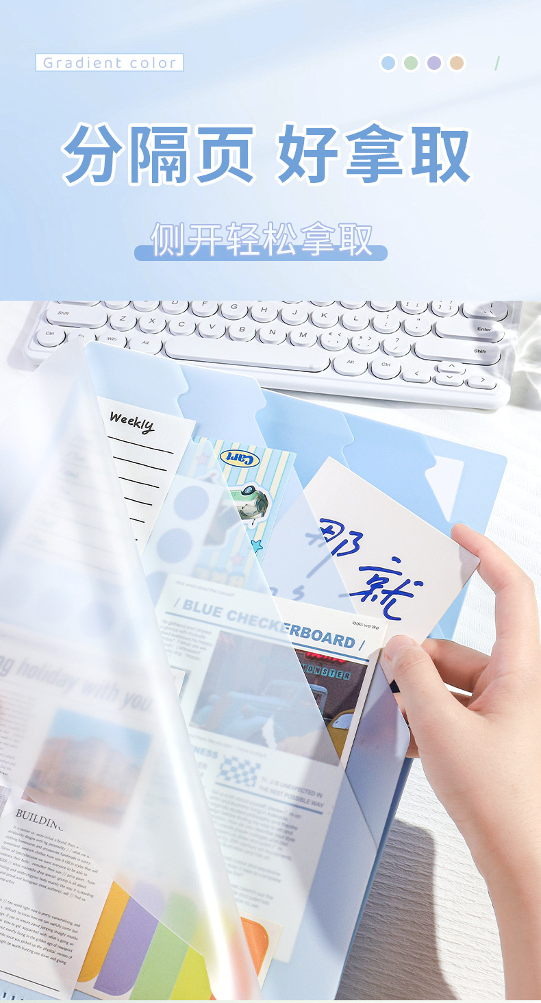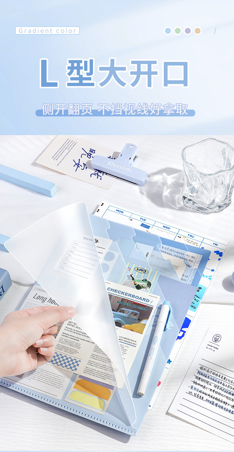 Carpeta multicapa de color gradiente A4 bolsas de sujeción de papel de prueba transparentes 6 capas de carpeta en forma de L folleto de información multifuncional