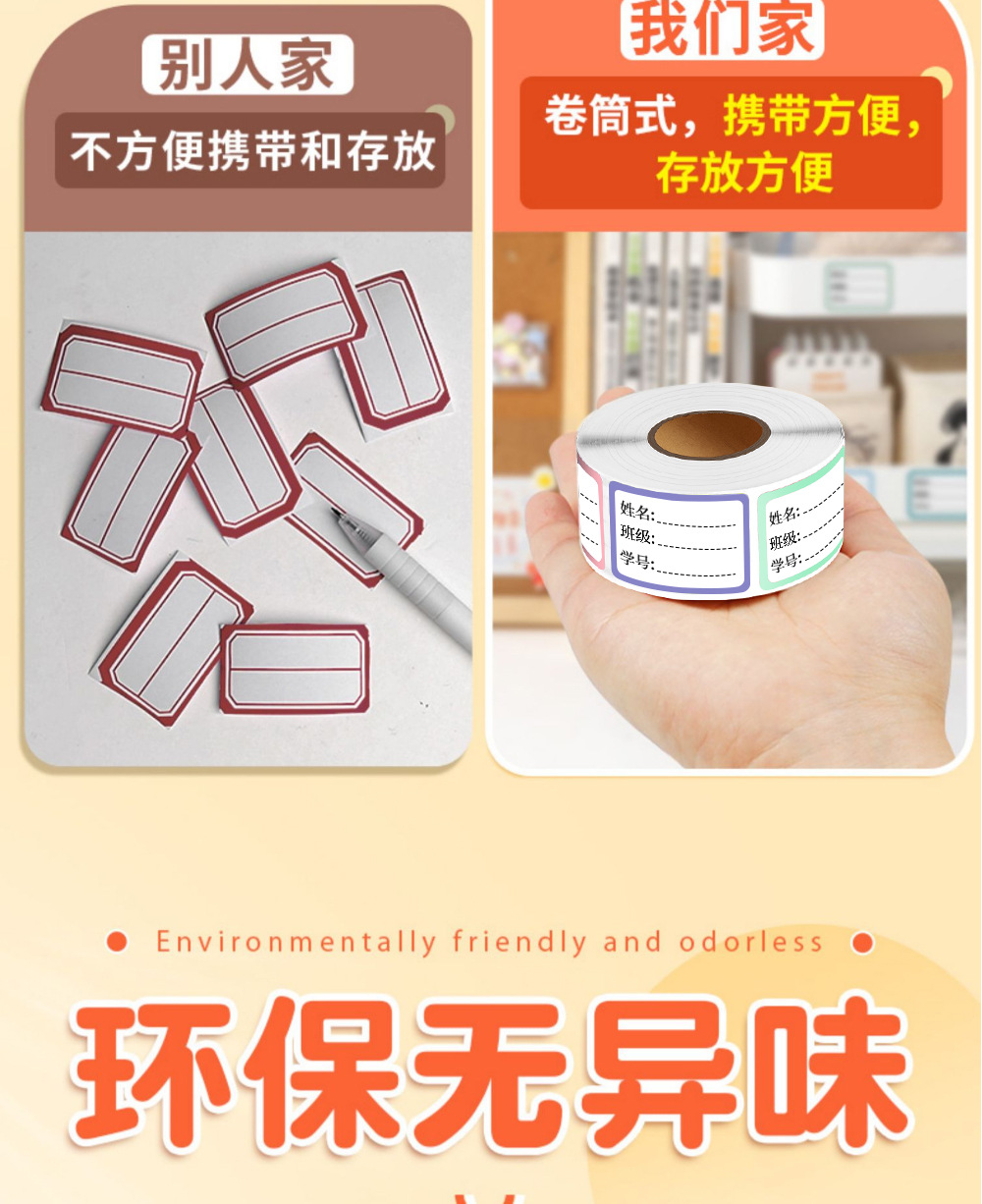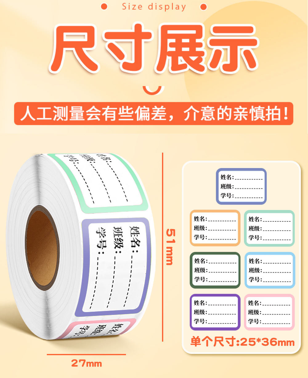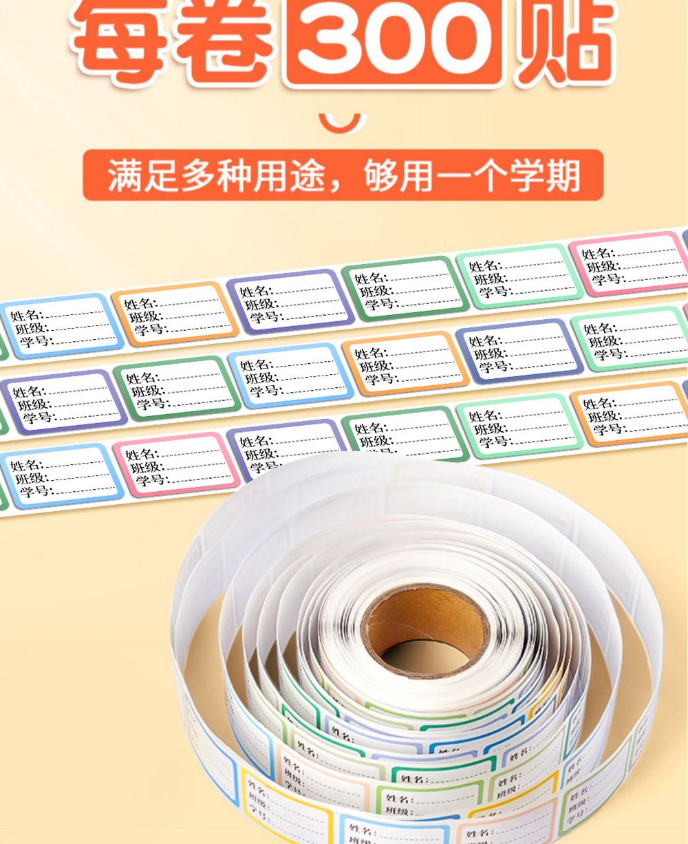 | Especificaciones | Nombre pegado 300 pegatinas un rollo |