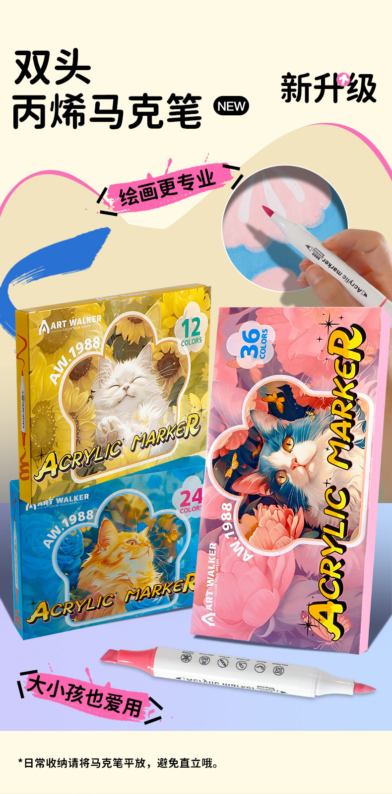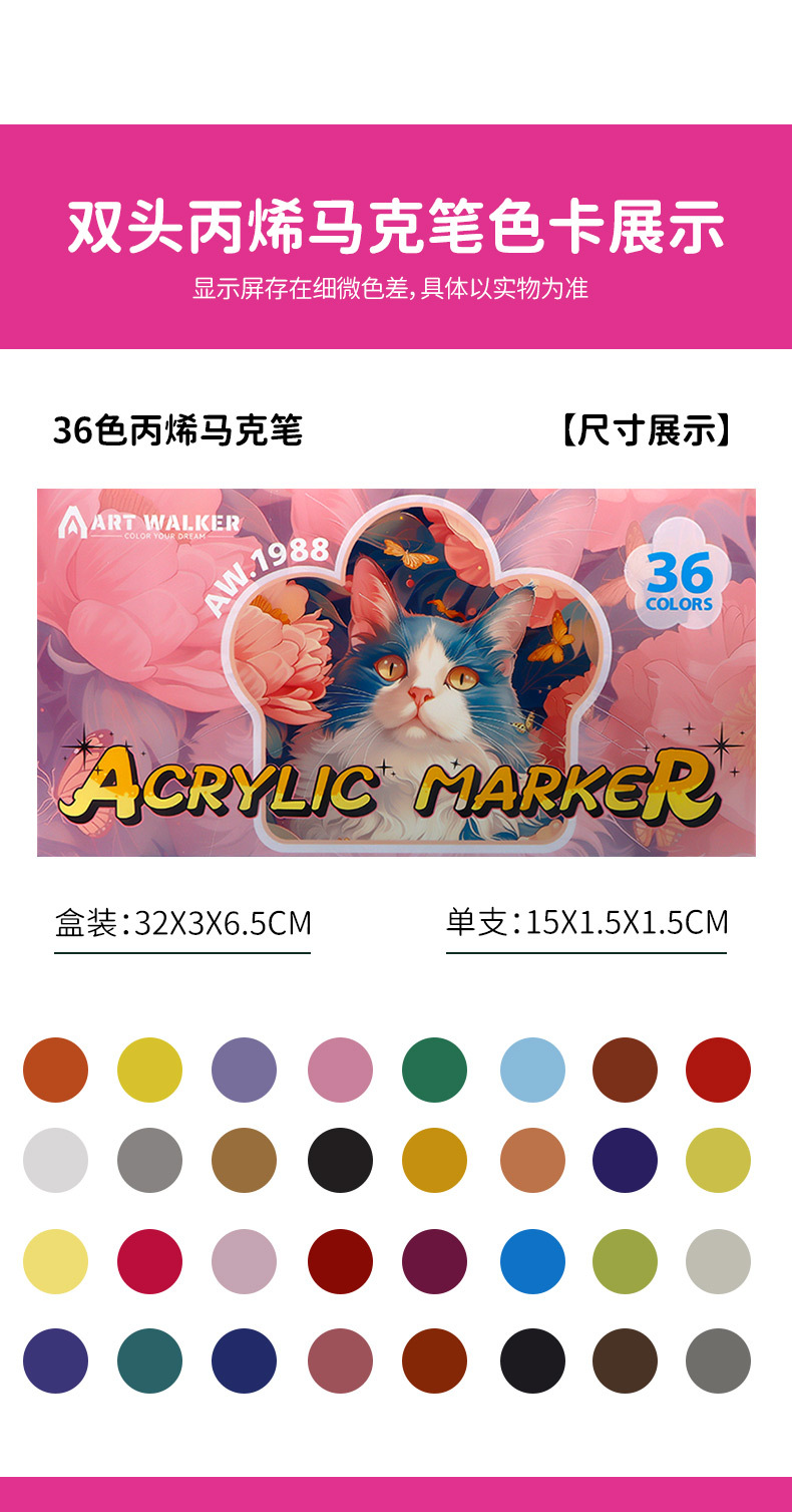 ARTWALKER acrílico marcador bolígrafo de cabeza suave doble conjunto de 36 colores impermeable DIY estudiantes pintores de color bolígrafo graffiti