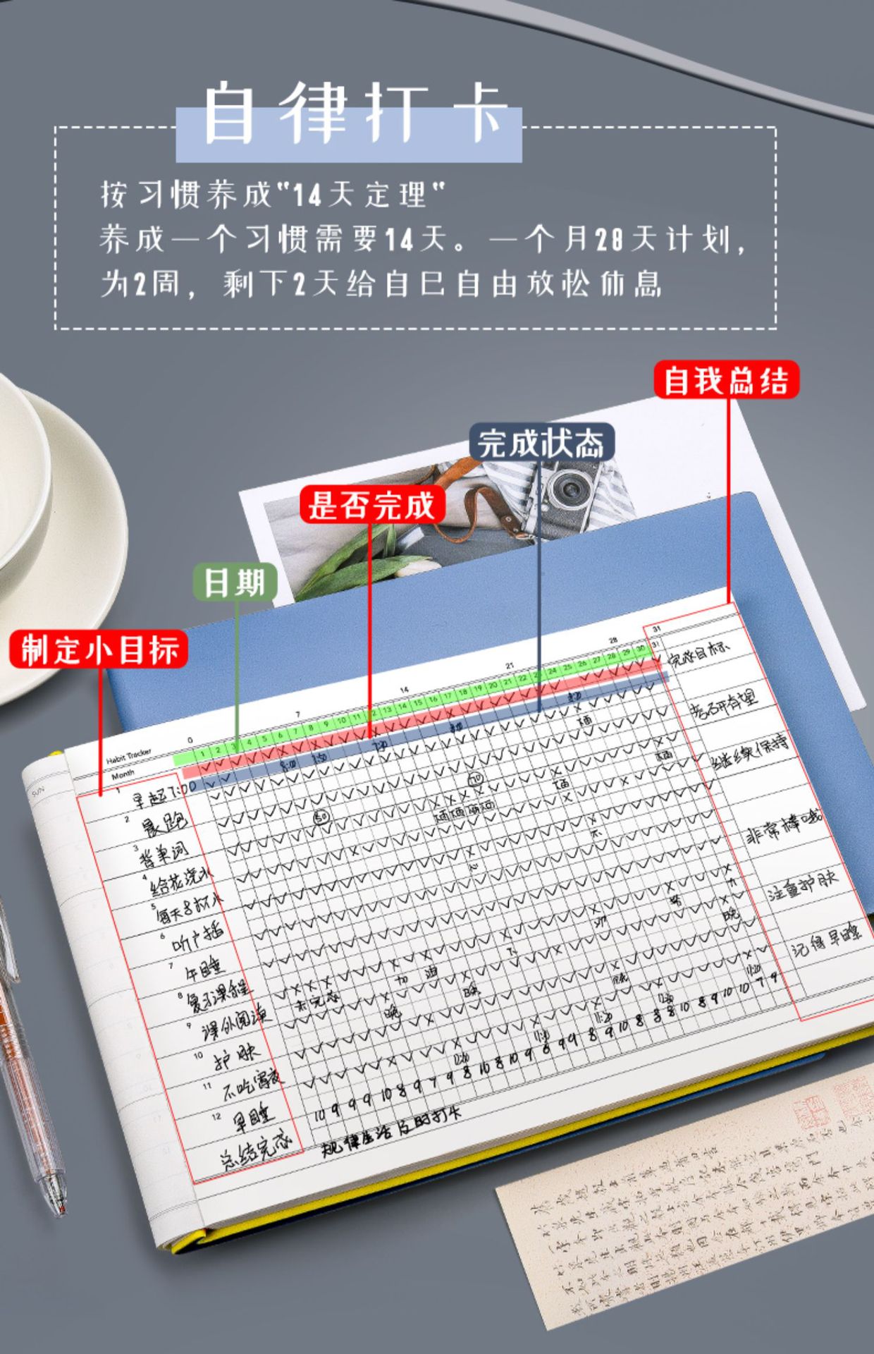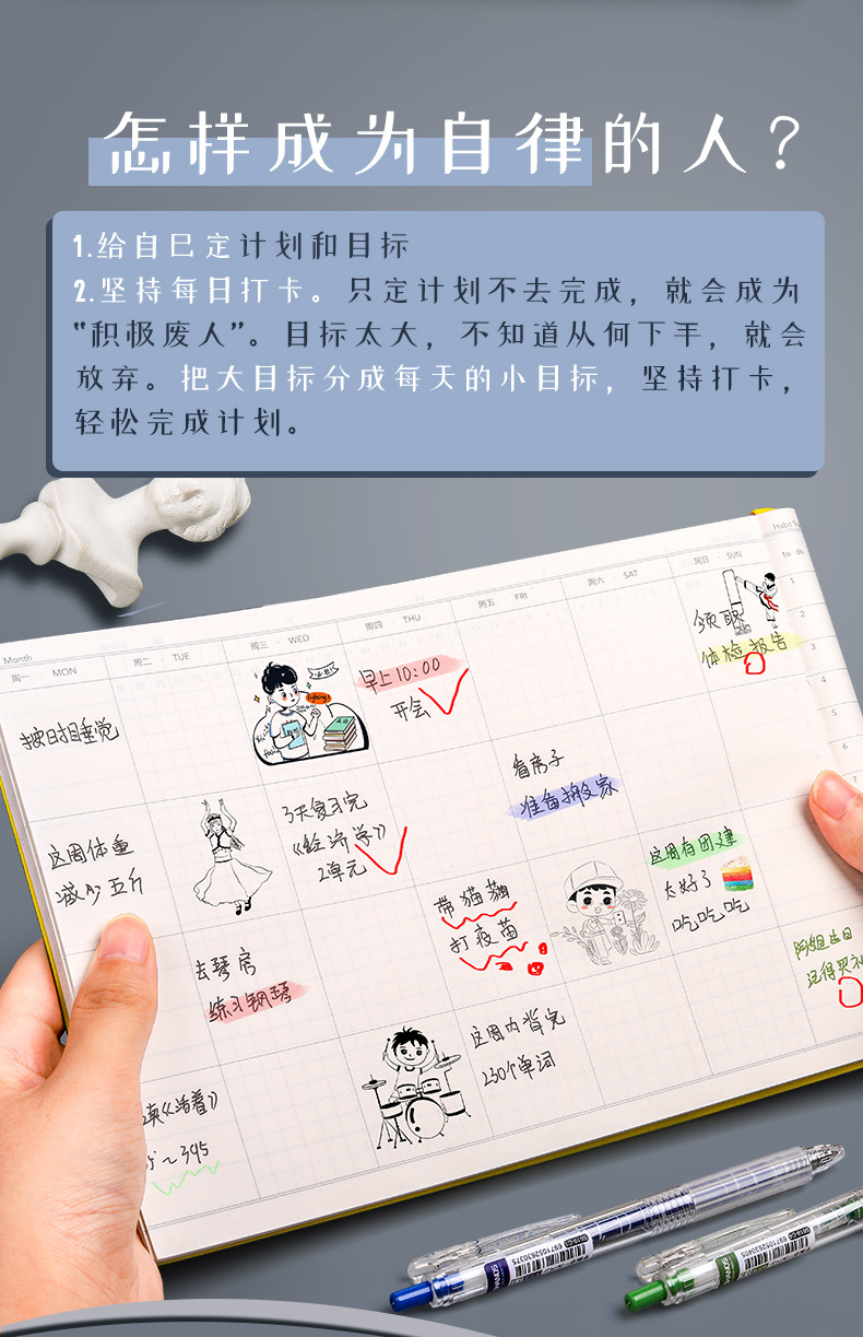 Plan de tareas de libro de tarjeta de autodisciplina este hábito desarrollar la gestión del tiempo planificación semanal diaria pensamiento de horario de estudiante de escuela primaria